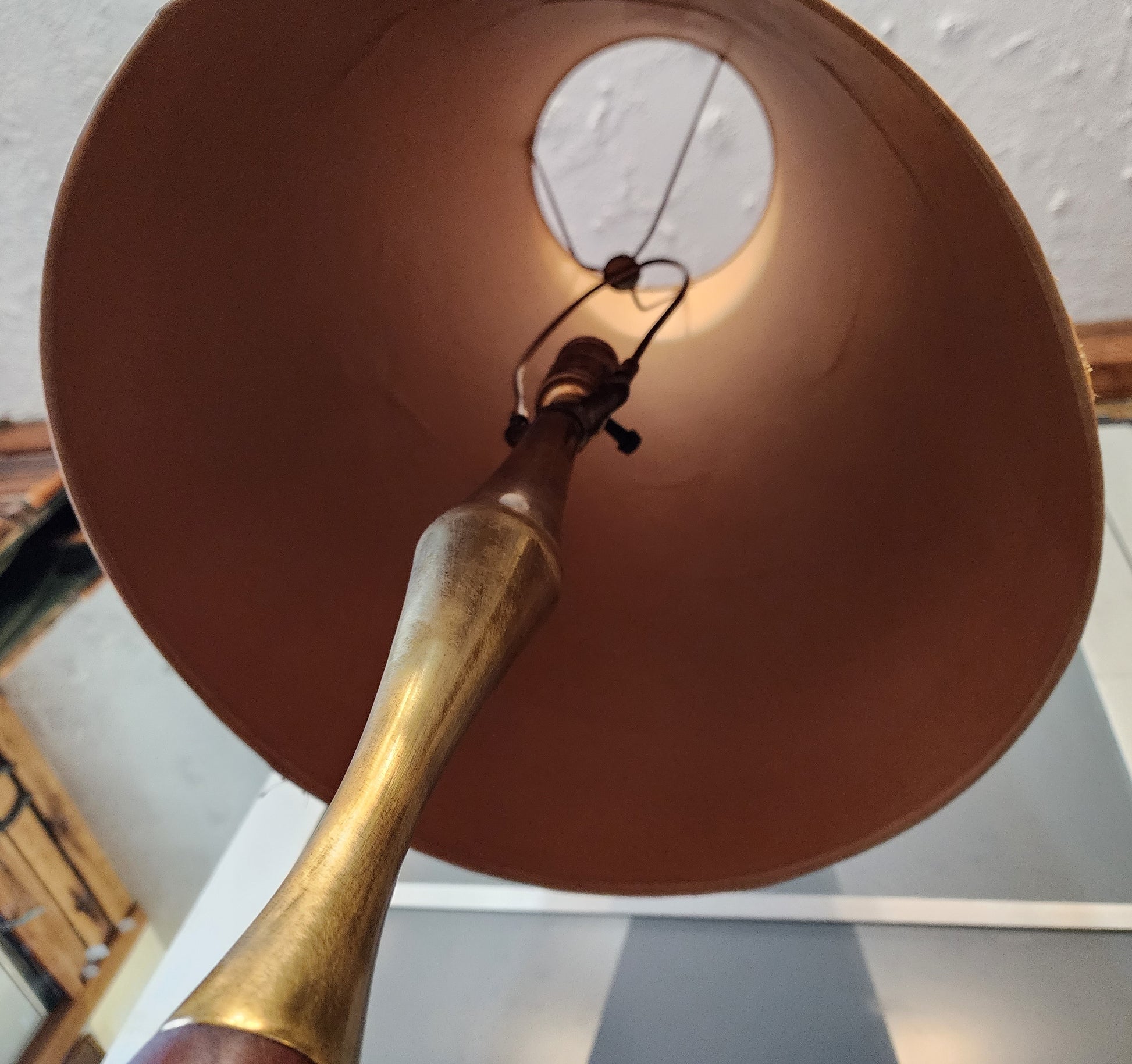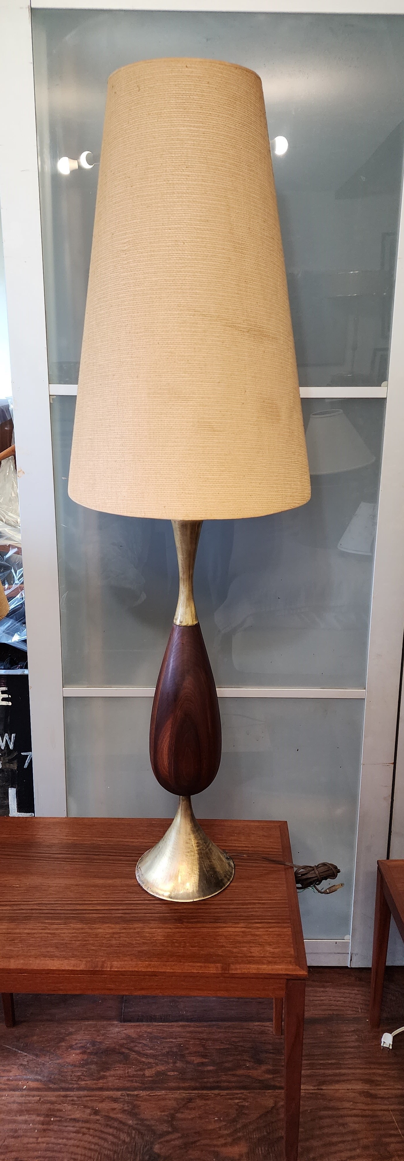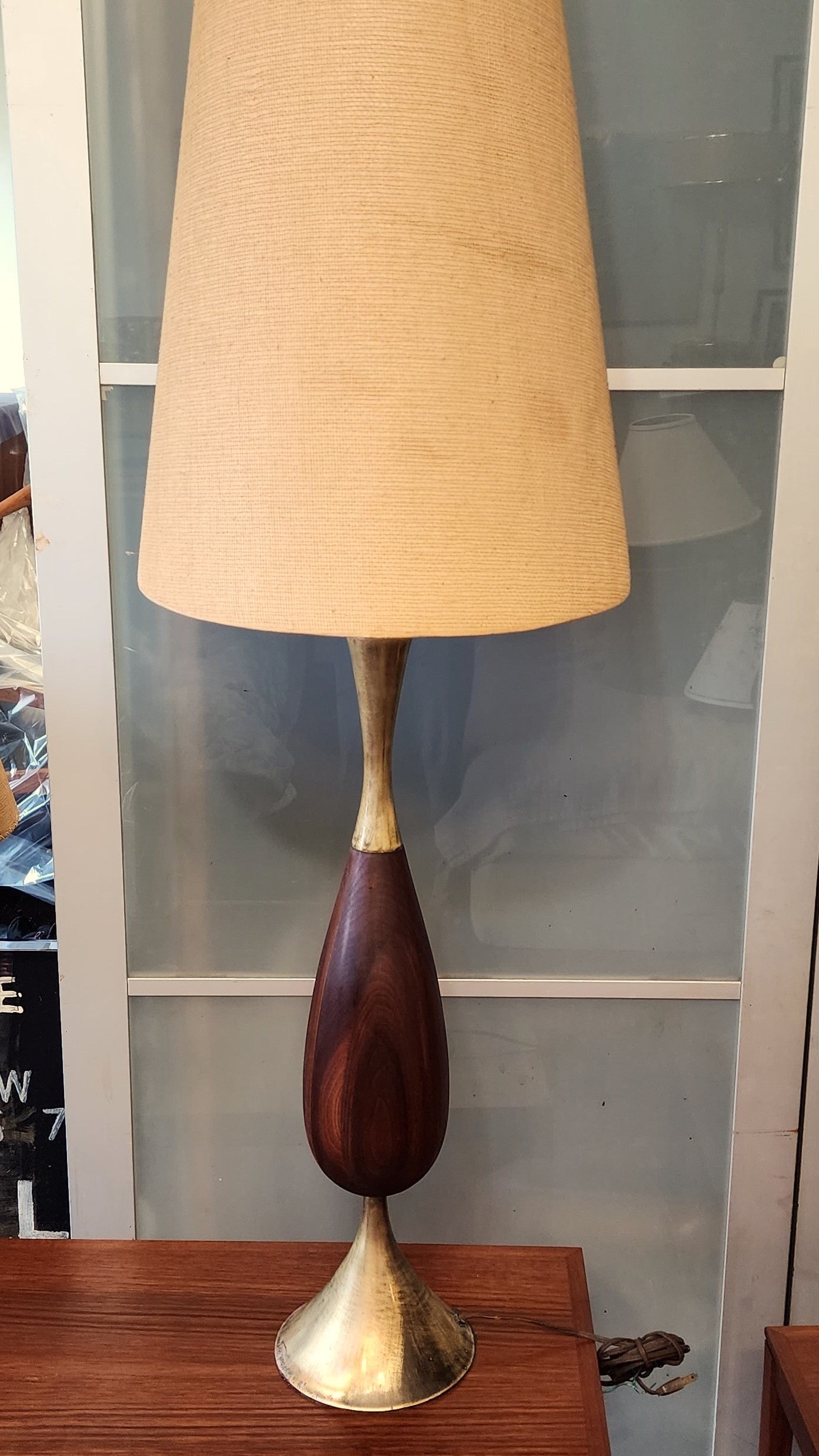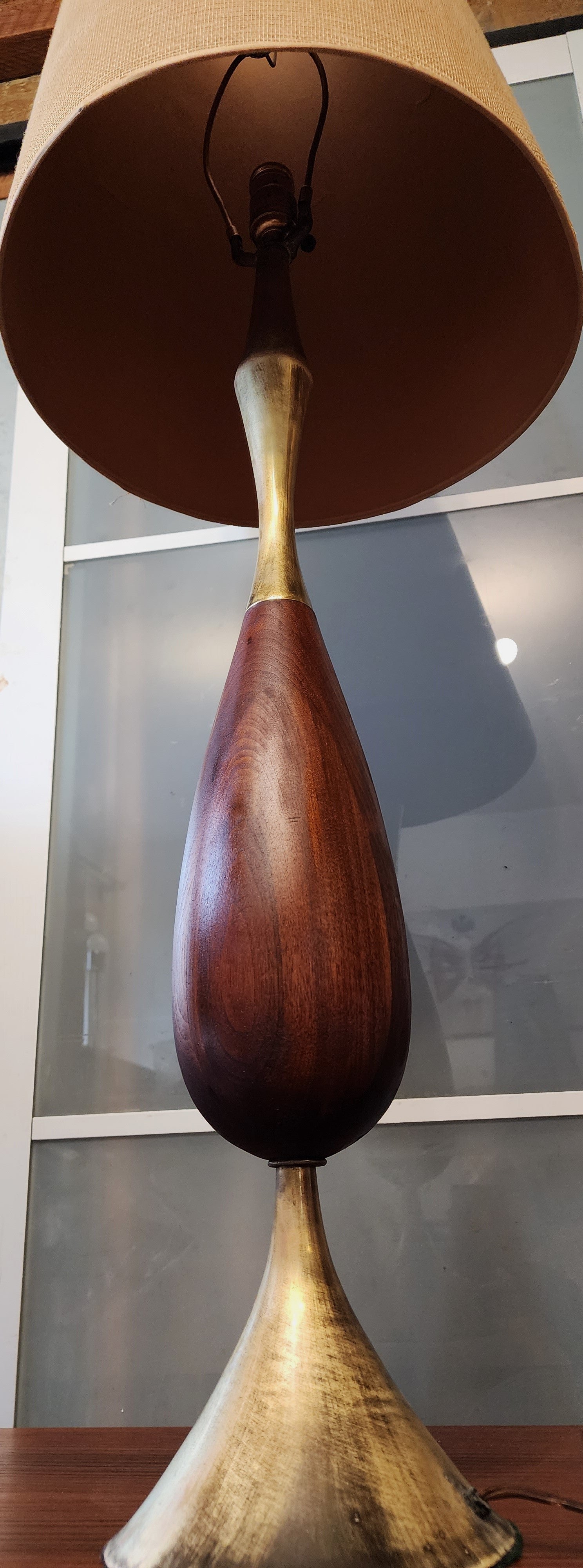 Mid Century Modern Tall Walnut & Brass Lamp by Tony Paul for Westwood 49"