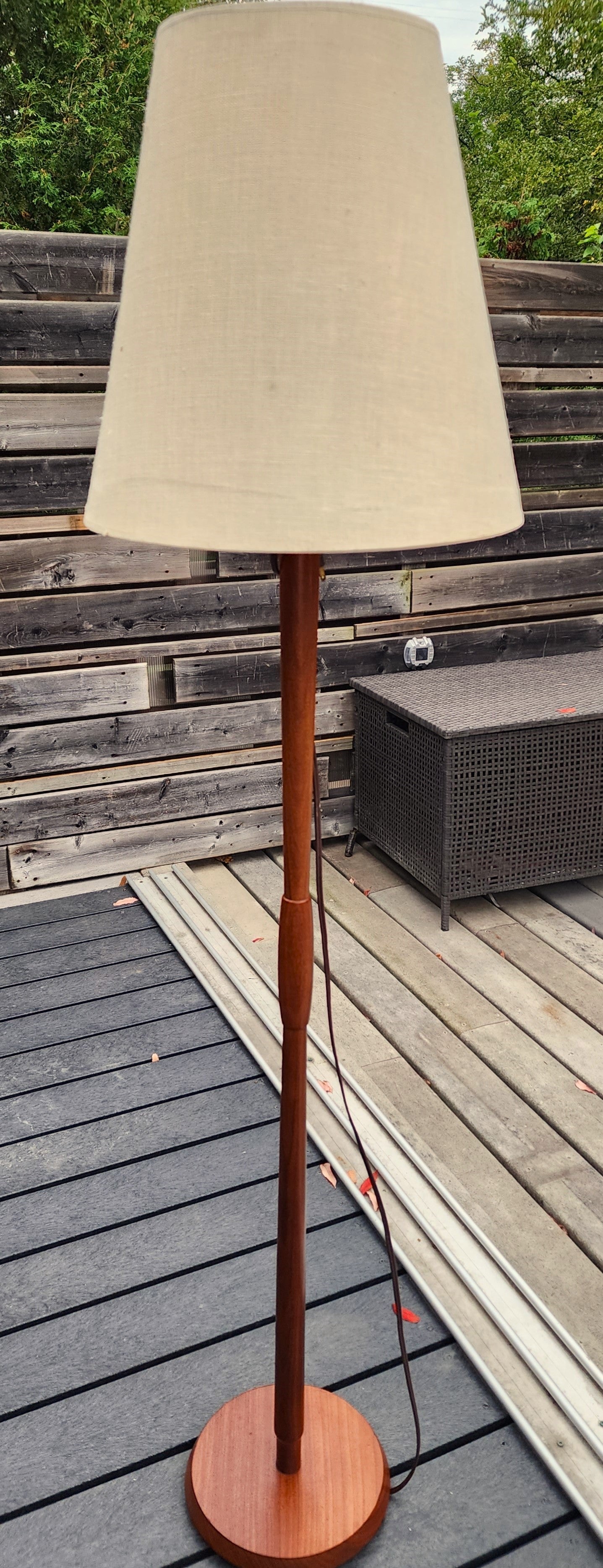 Mid Century Modern Solid Teak Floor Lamp, H 63.5" (including shade)