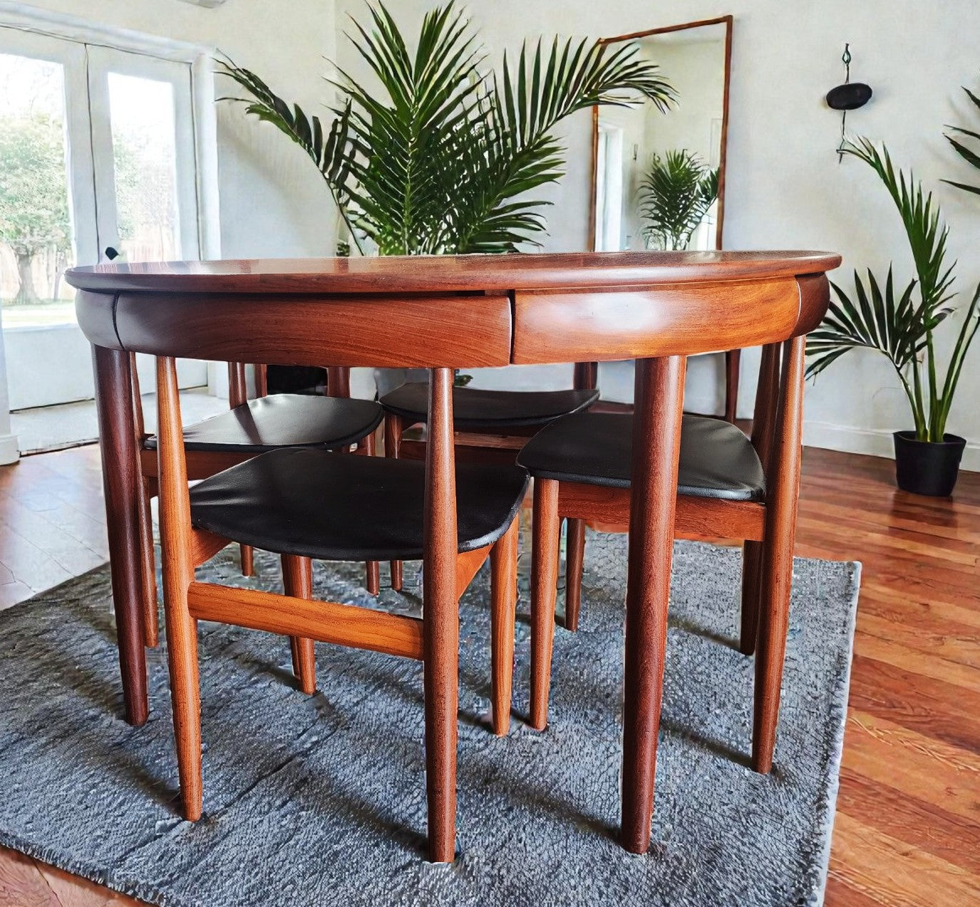 REFINISHED Danish MCM ROUNDETTE Teak Table & 4 Chairs (4-legged) by Hans Olsen