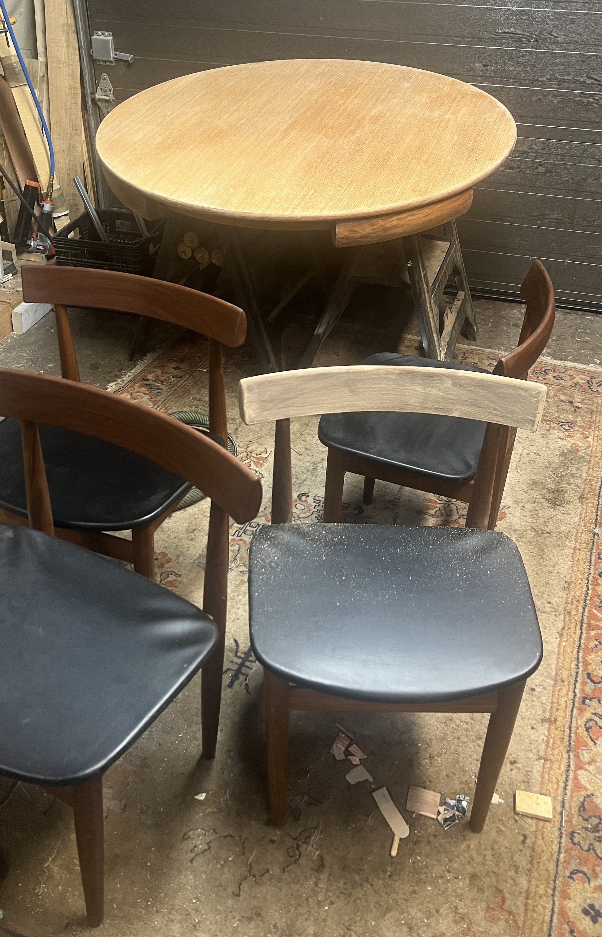 Coming***REFINISHED Danish MCM ROUNDETTE Teak Table & 4 Chairs (four-legged) by Hans Olsen