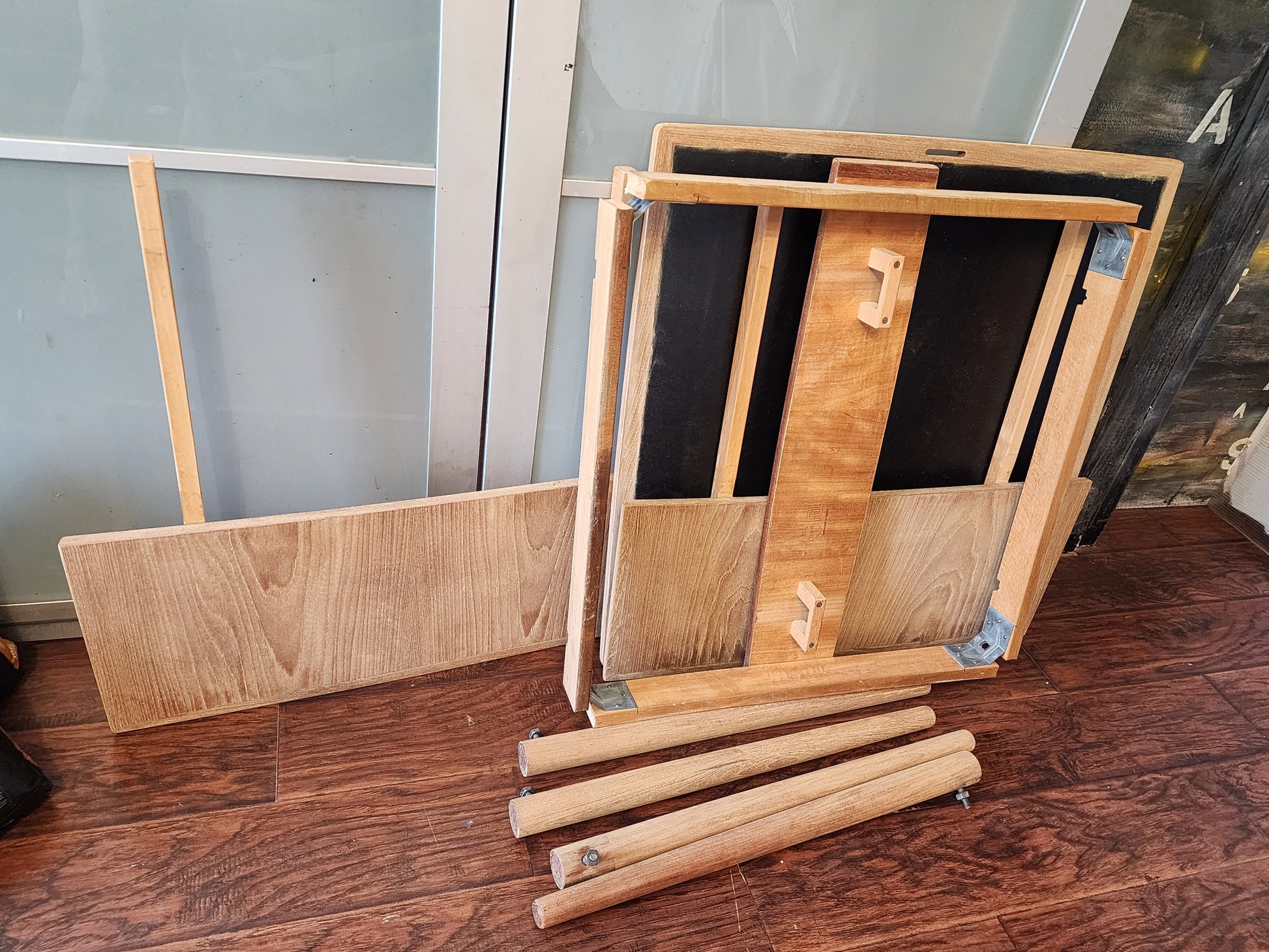 The table has been stripped, sanded, and refinished with Danish oil to almost new condition.