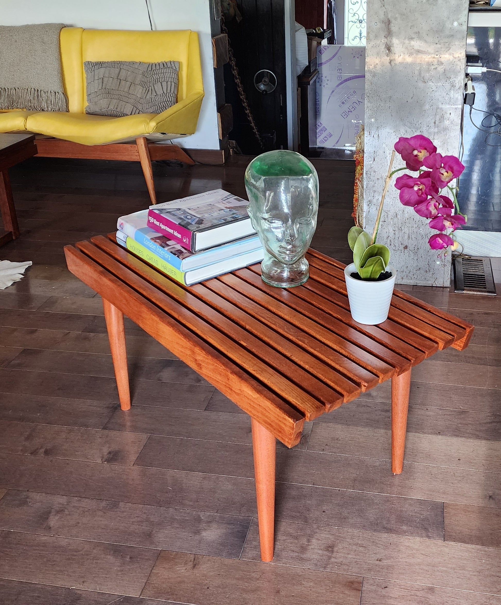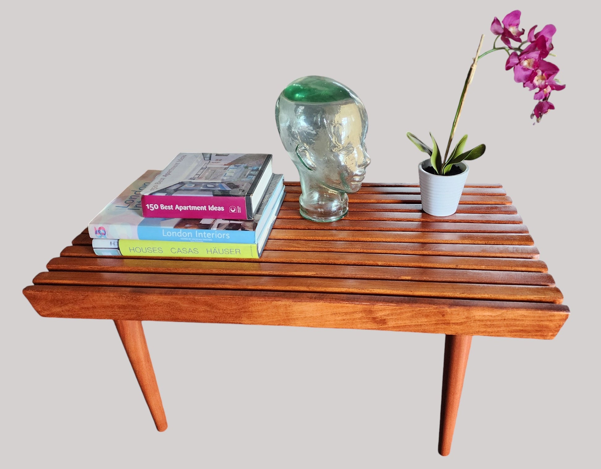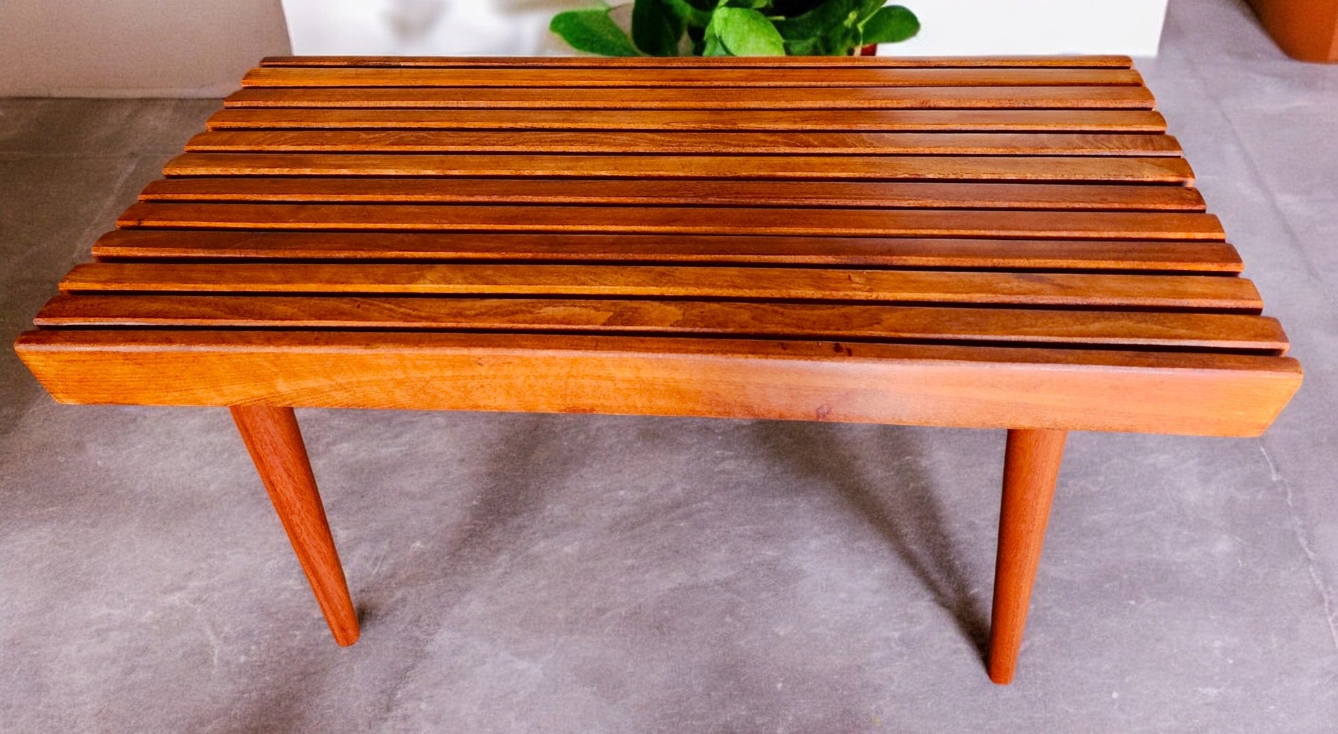 REFINISHED Mid Century Modern Teak Slatted Bench or Coffee Table 3 ft