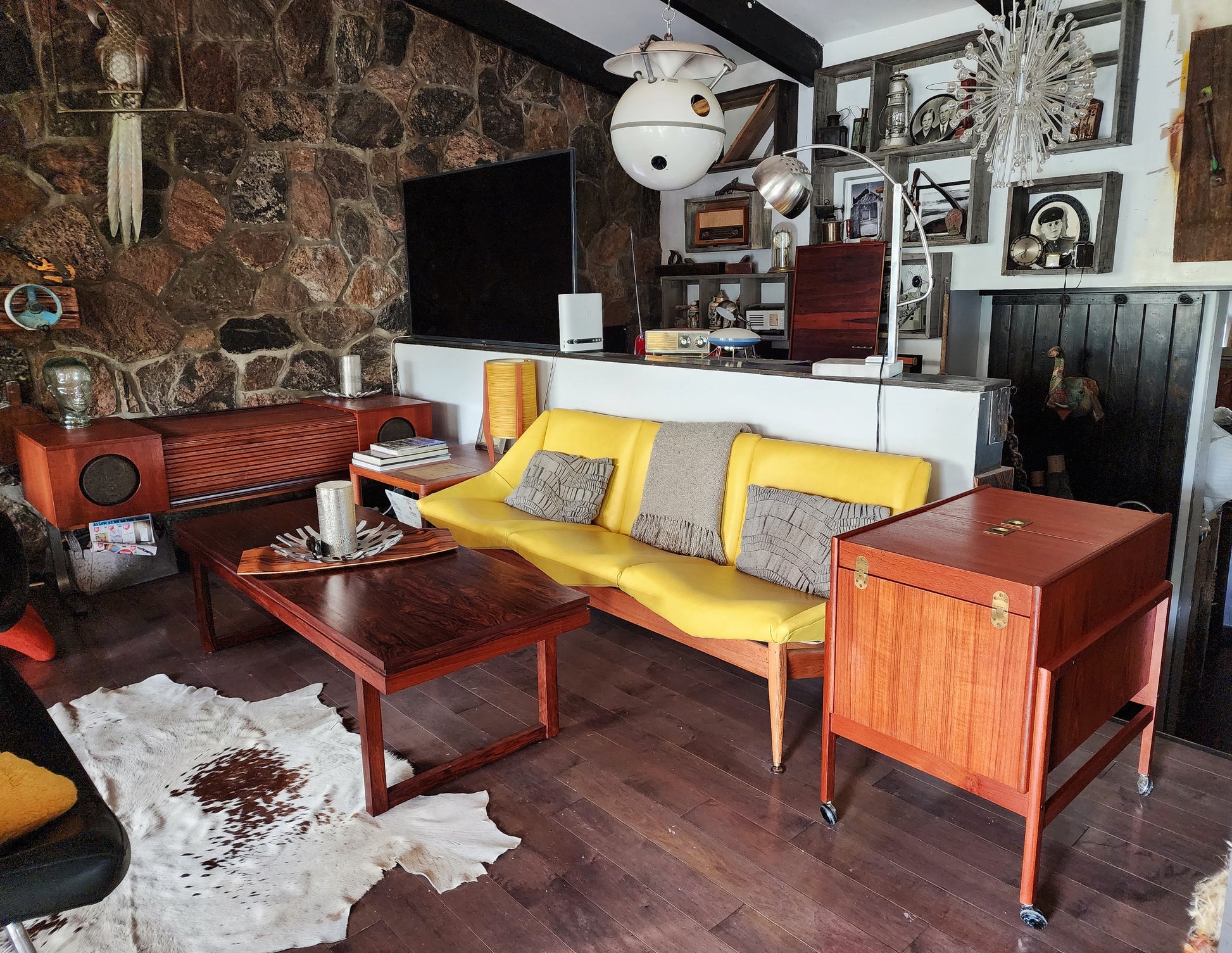The cabinet has been stripped, sanded and refinished with Danish oil to great condition with very minimal blemishes that could be seen on close inspection.