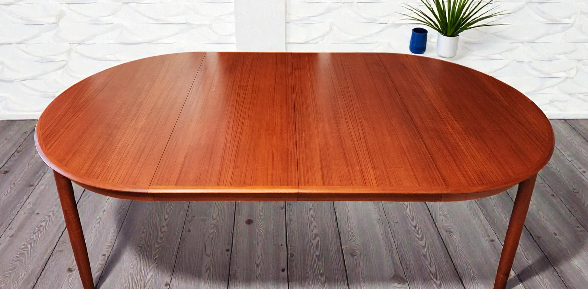 REFINISHED Danish MCM Teak Table Round w 2 Leaves by C.J. Rosengaarden 47"-86.5"