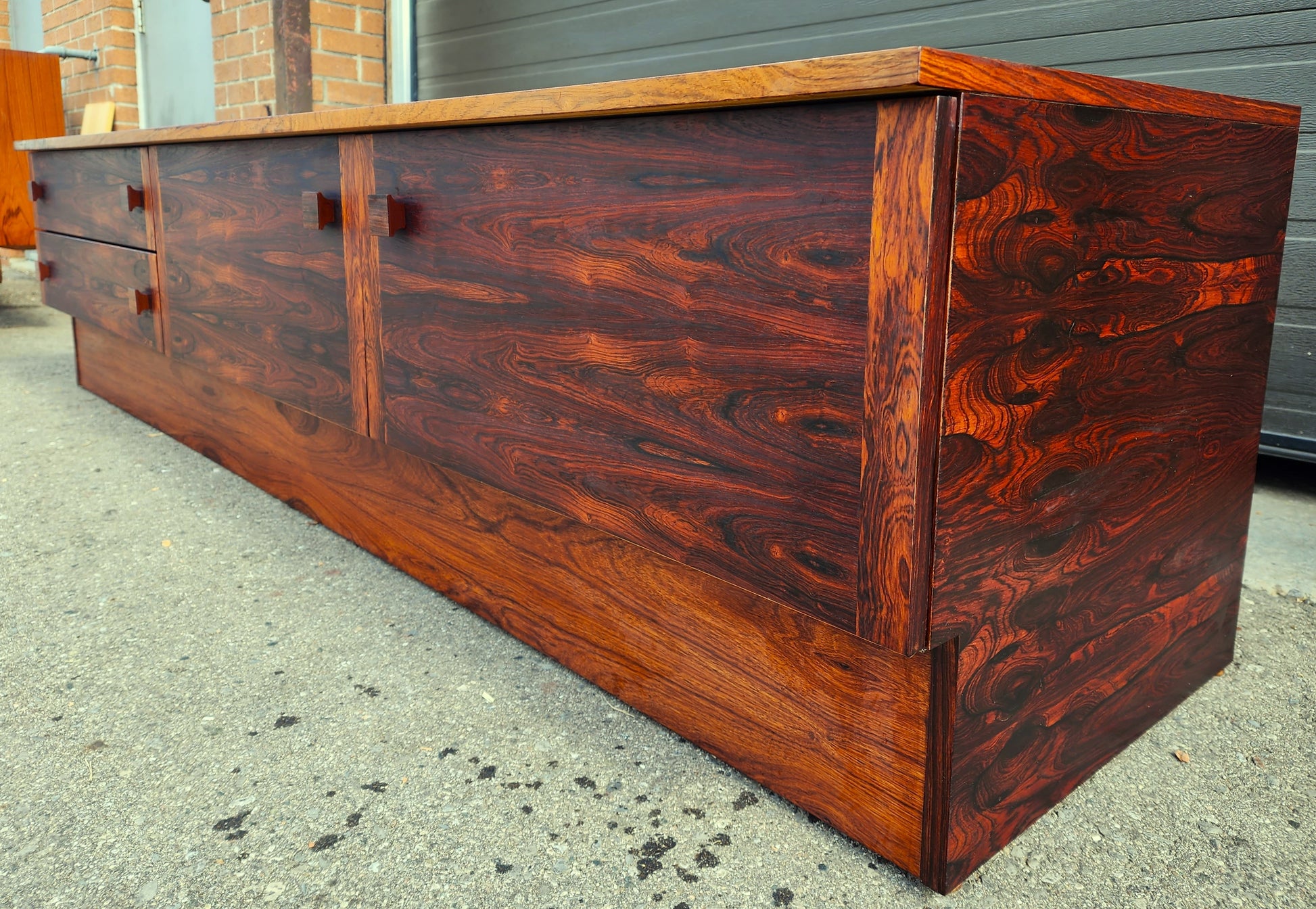 REFINISHED Danish Mid Century Modern Rosewood Console 87" wide & low