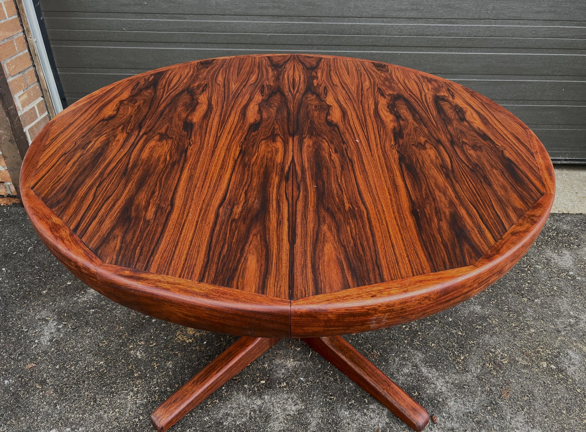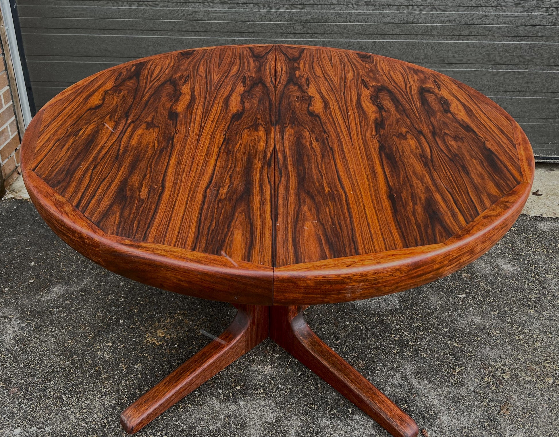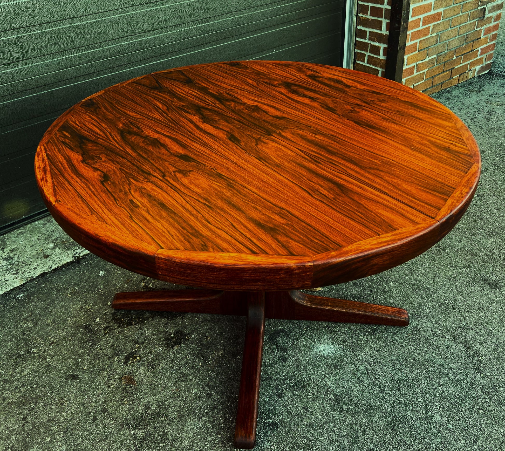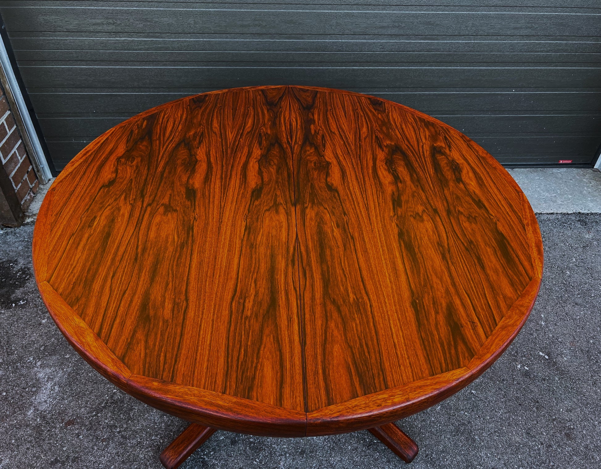 REFINISHED Danish Mid Century Modern Rosewood Table Round w 1 Leaf, 47"-66.5"