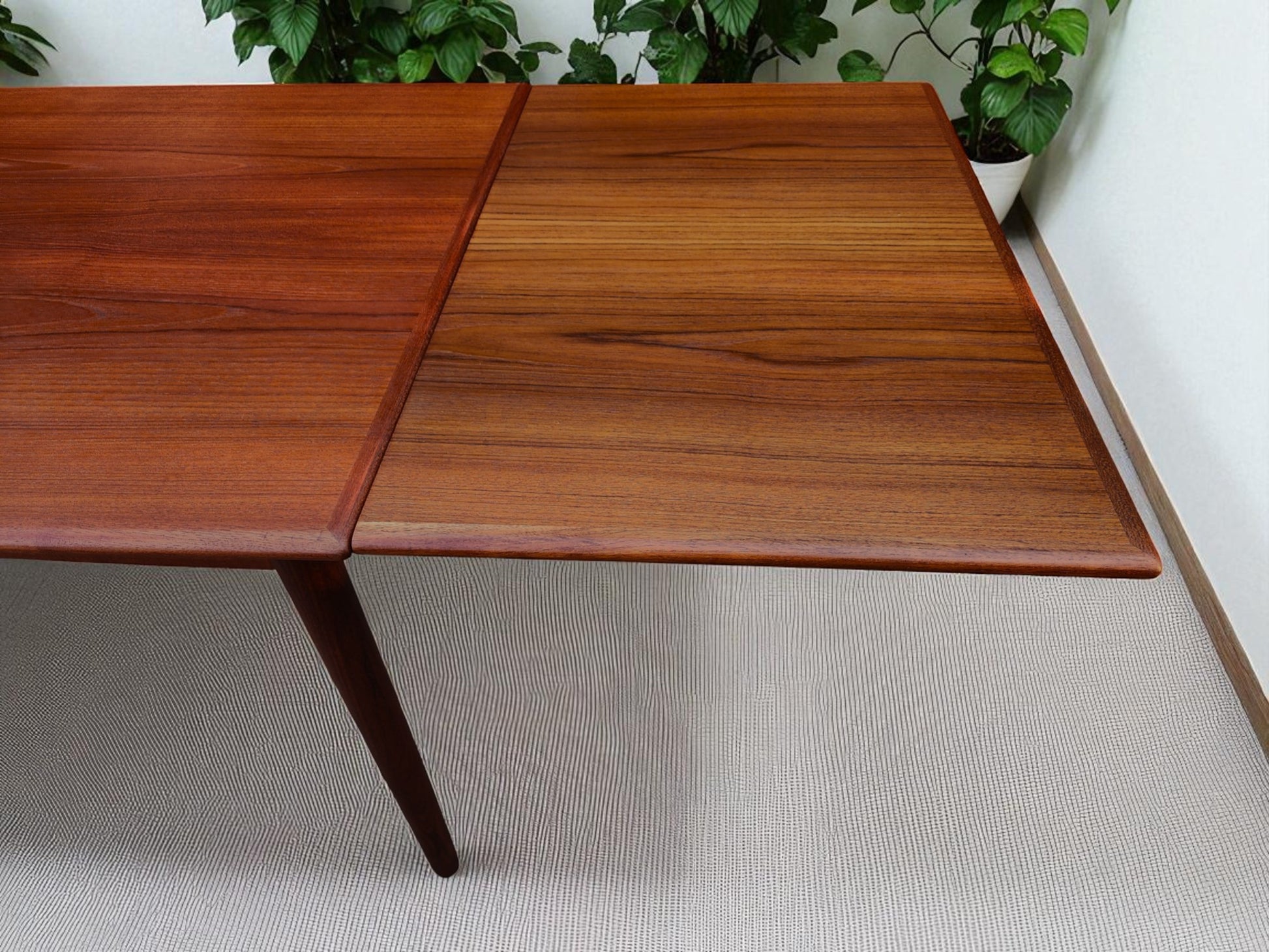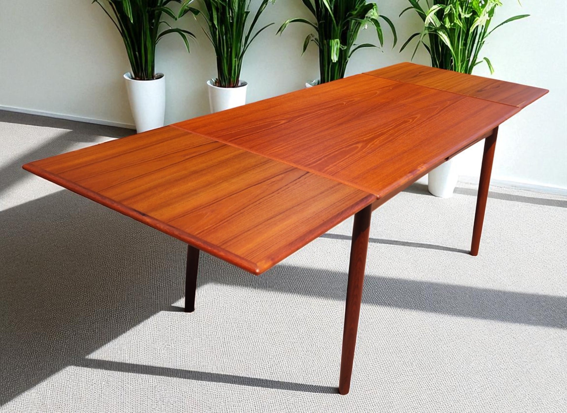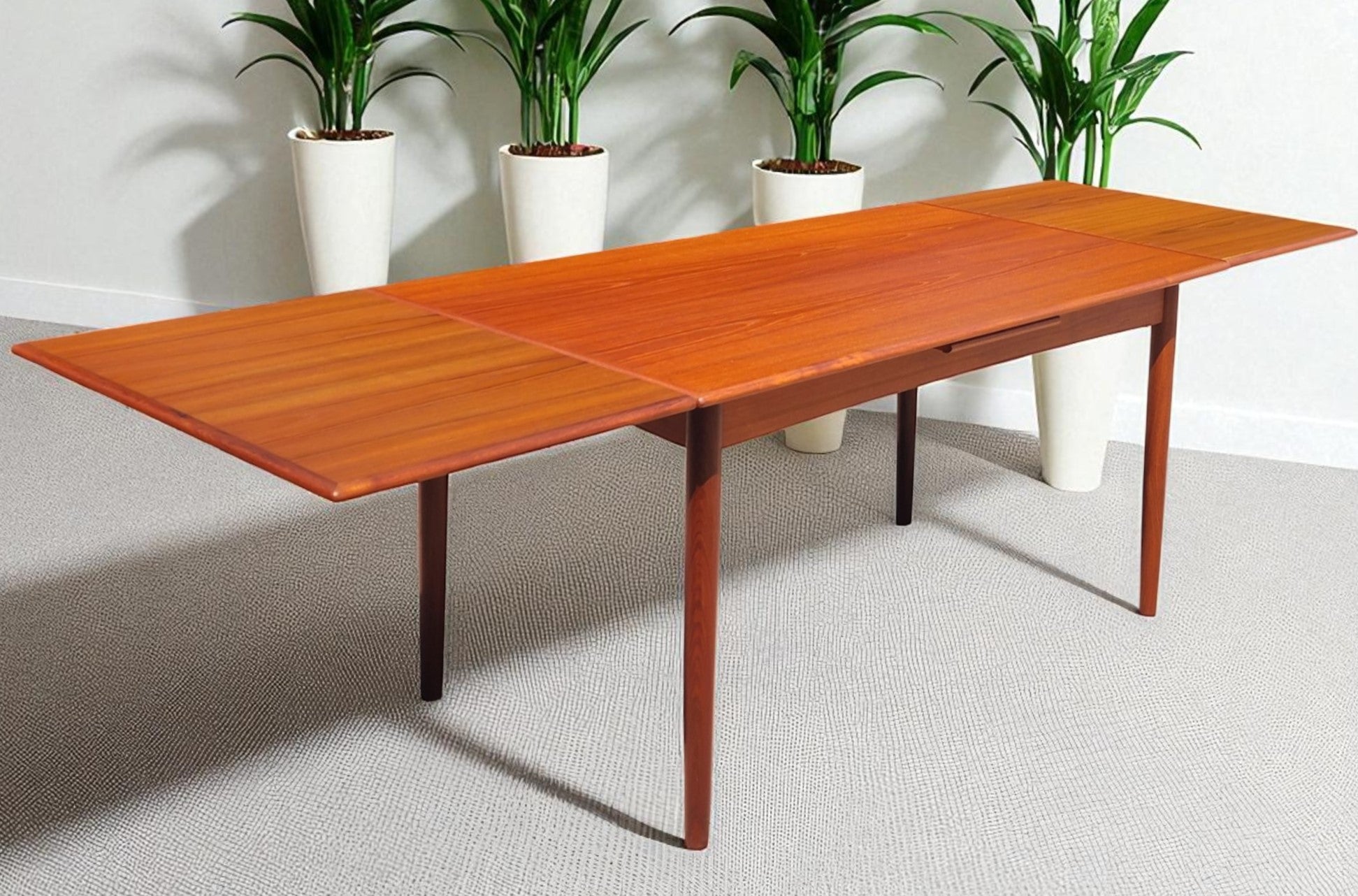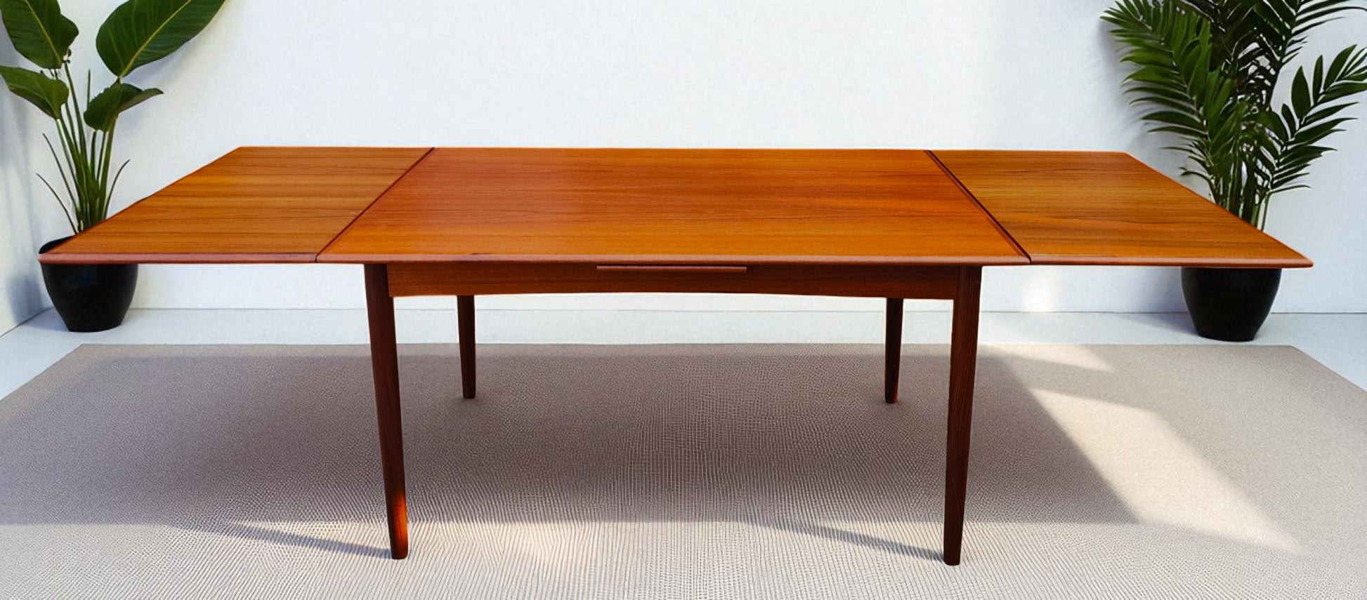 REFINISHED Danish Mid Century Modern Teak Draw Leaf Table 55"-98"