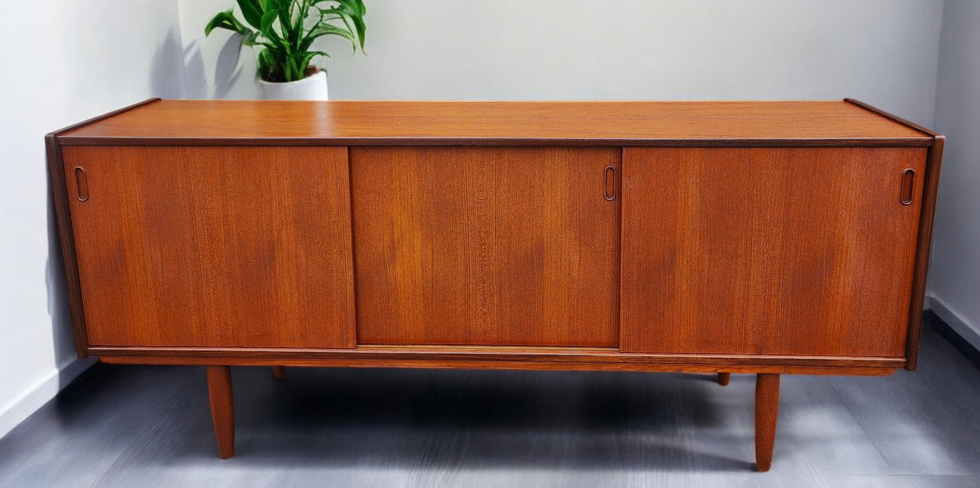 REFINISHED Danish Mid Century Modern Teak Sideboard by Dyrlund 71.25" Narrow