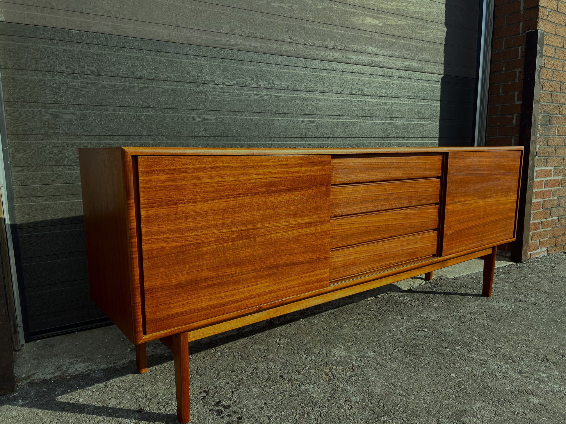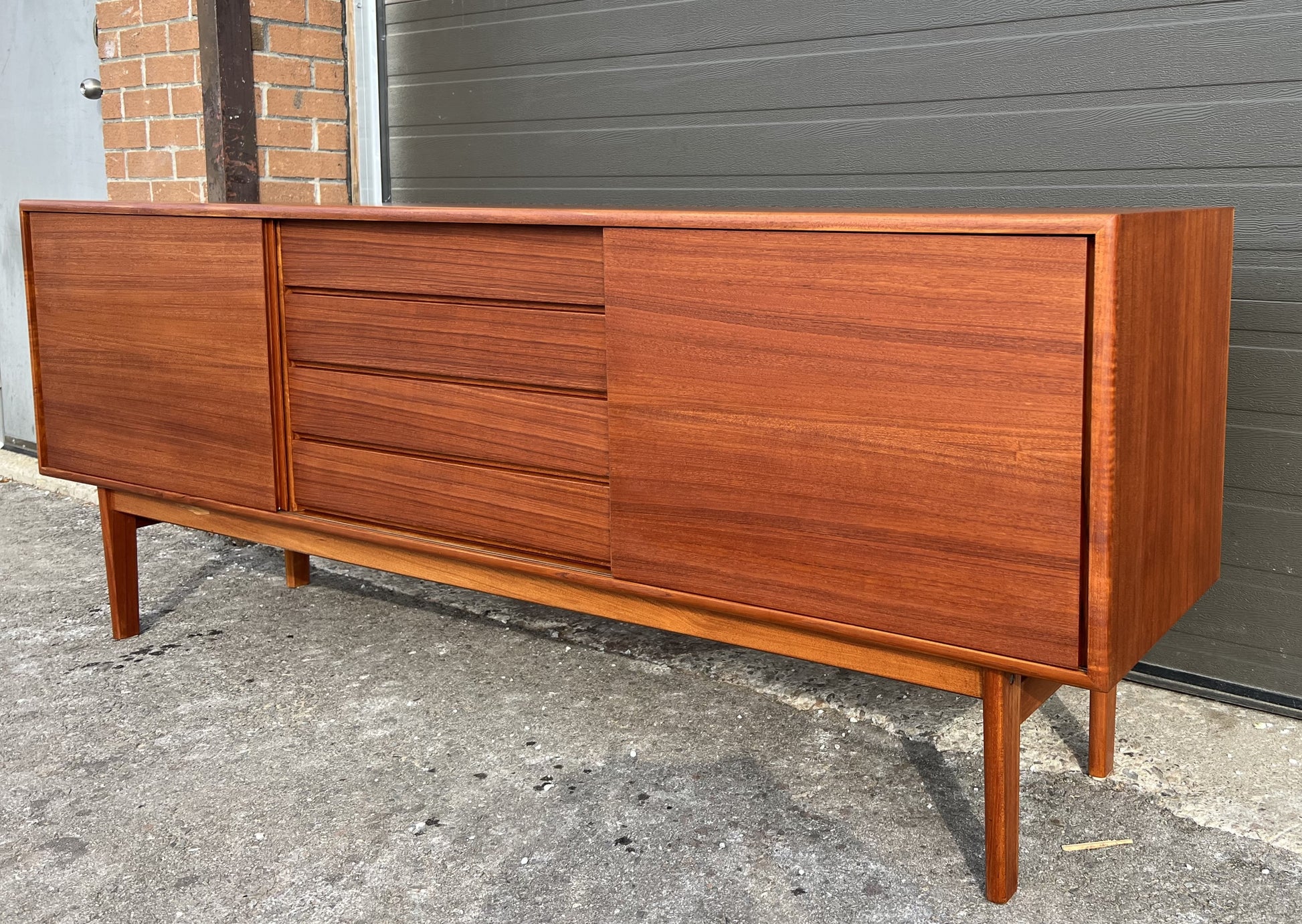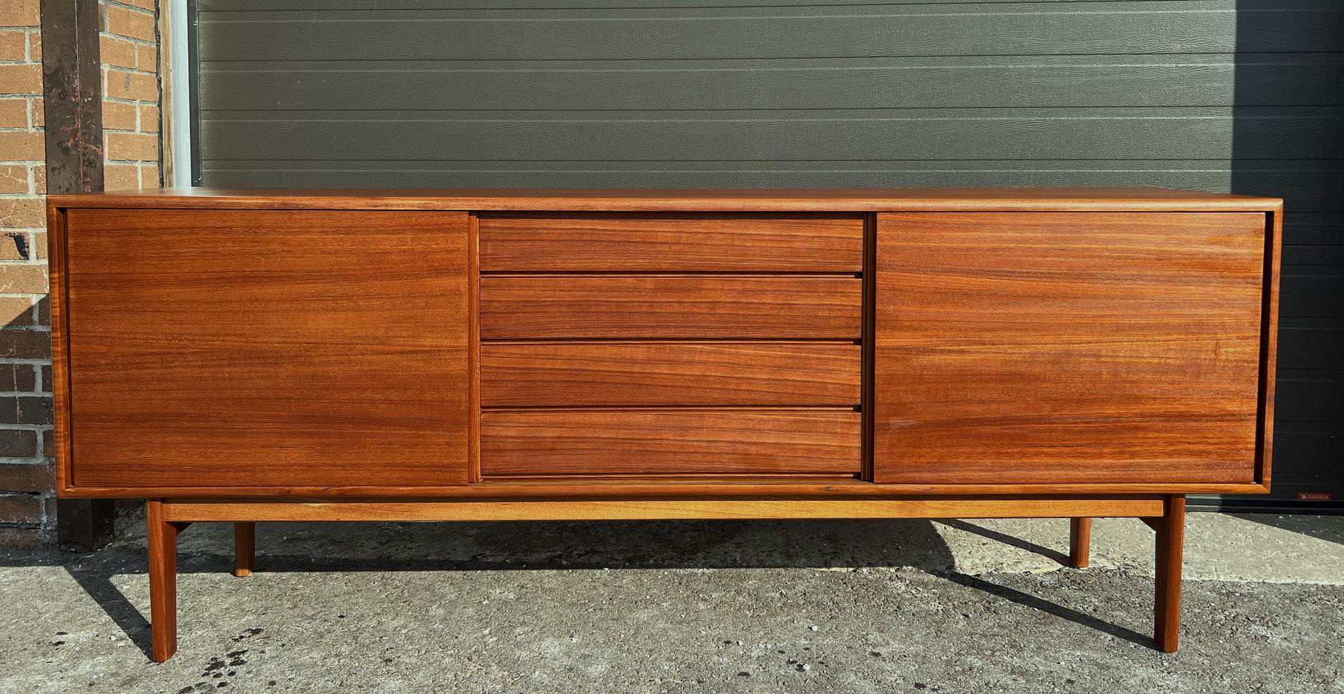 REFINISHED Danish Mid Century Modern Teak Sideboard w Finished Back 79"