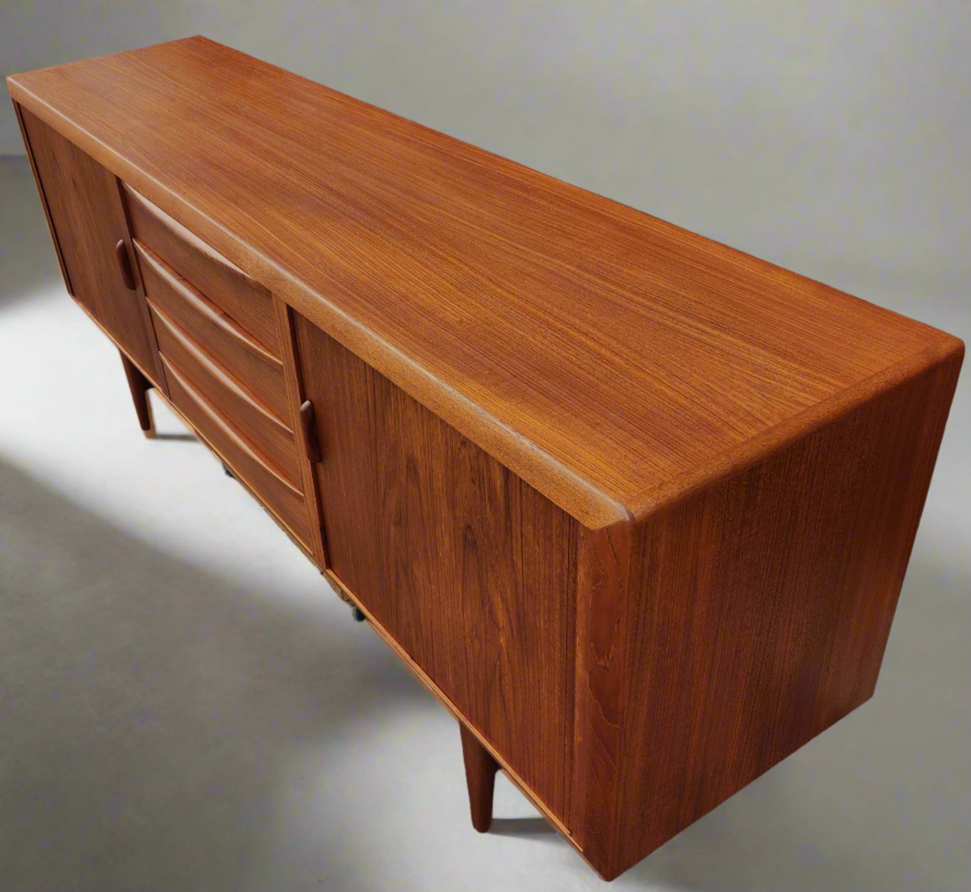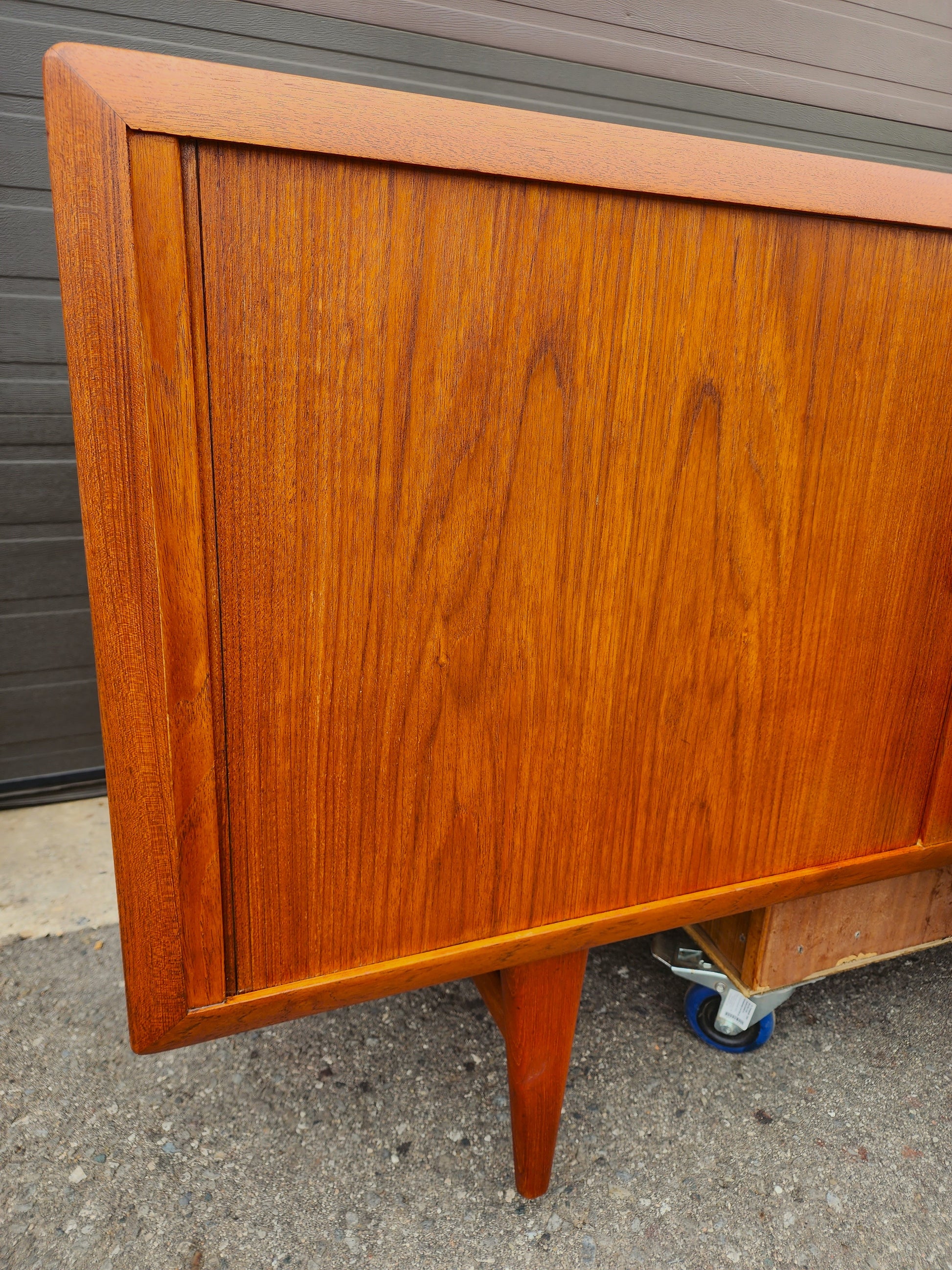 REFINISHED Danish Mid Century Modern Teak Tambour Credenza by Kofod Larsen 83"