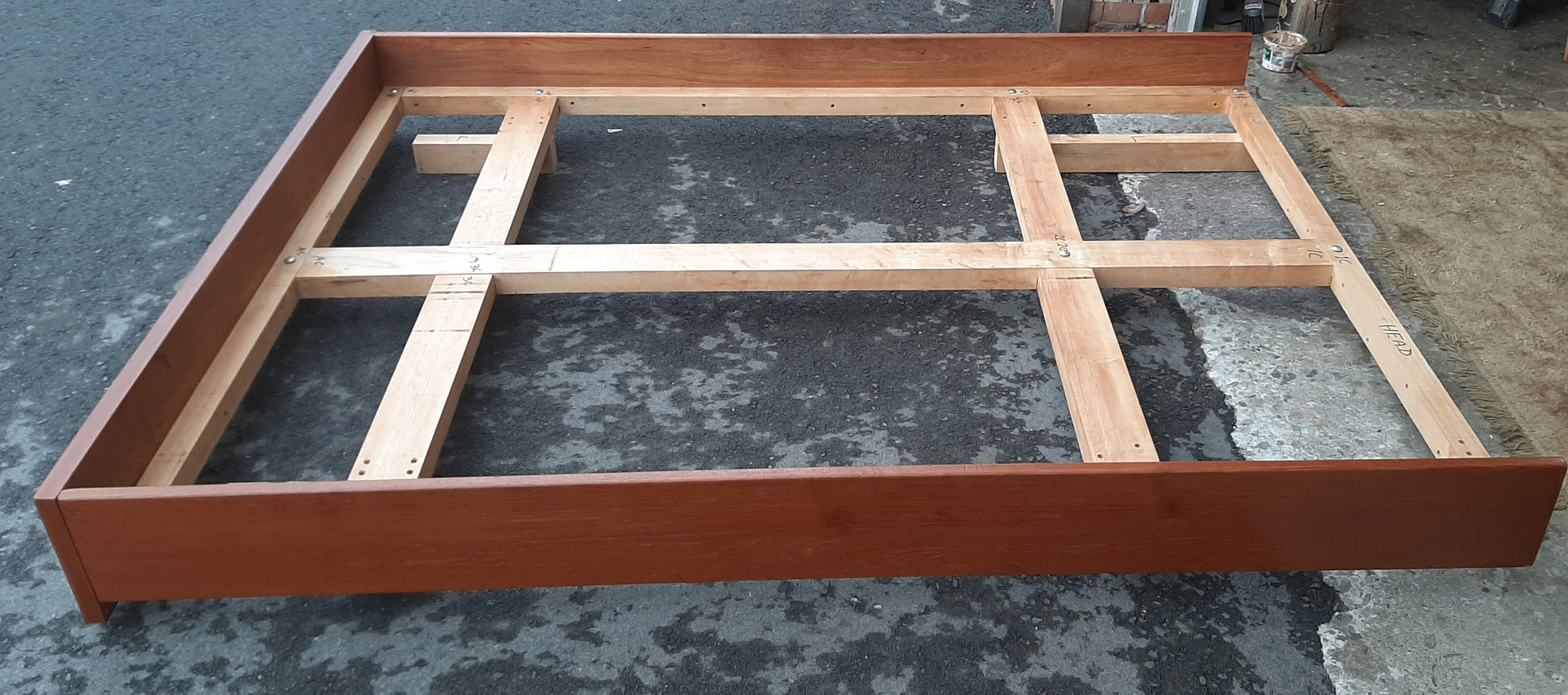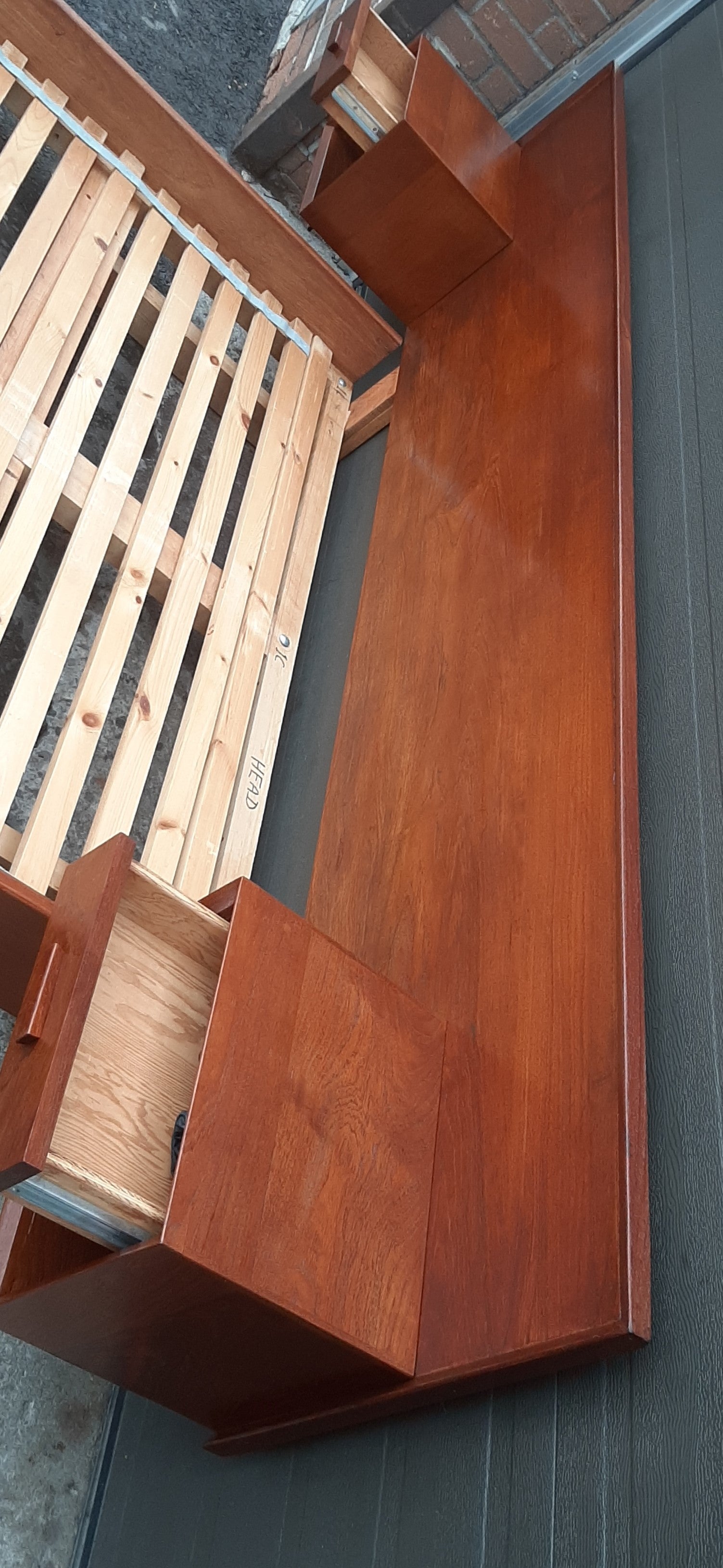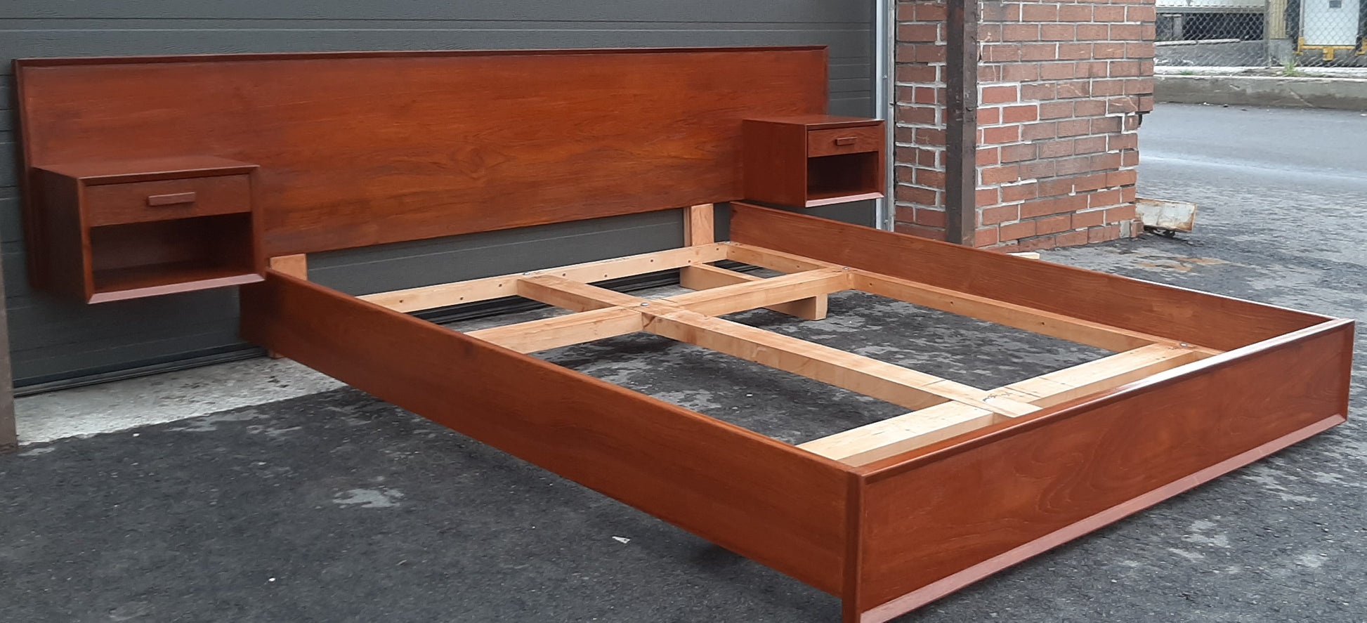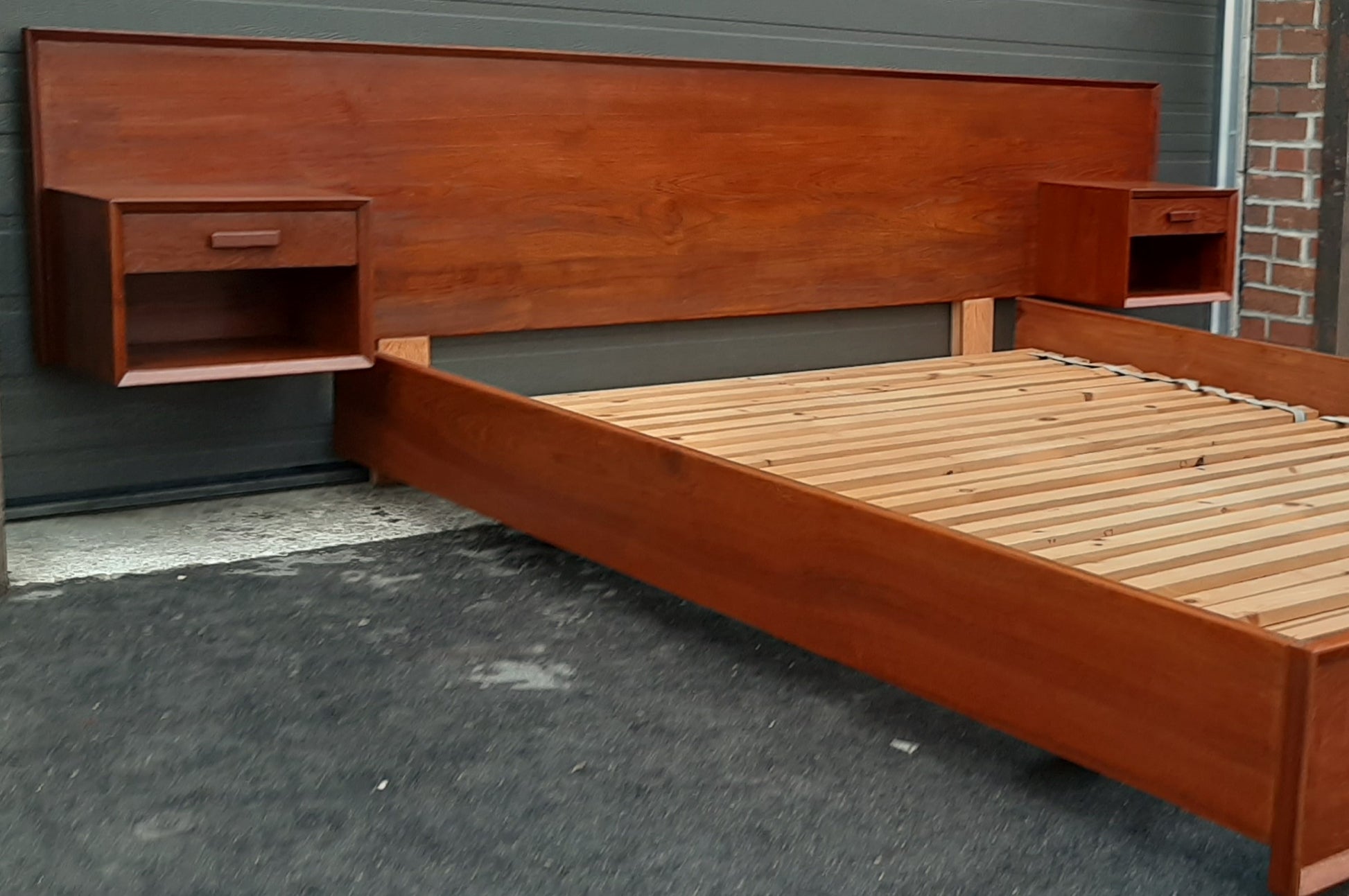 REFINISHED MCM SOLID Teak Platform Bed w floating nightstands Queen, PERFECT