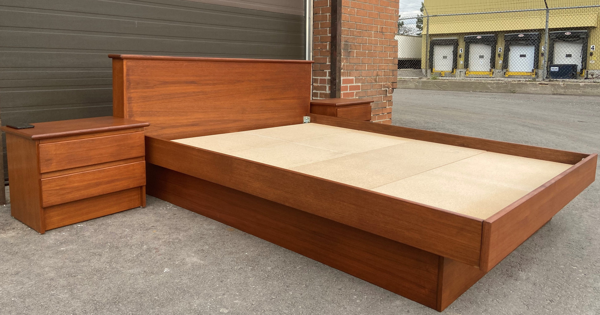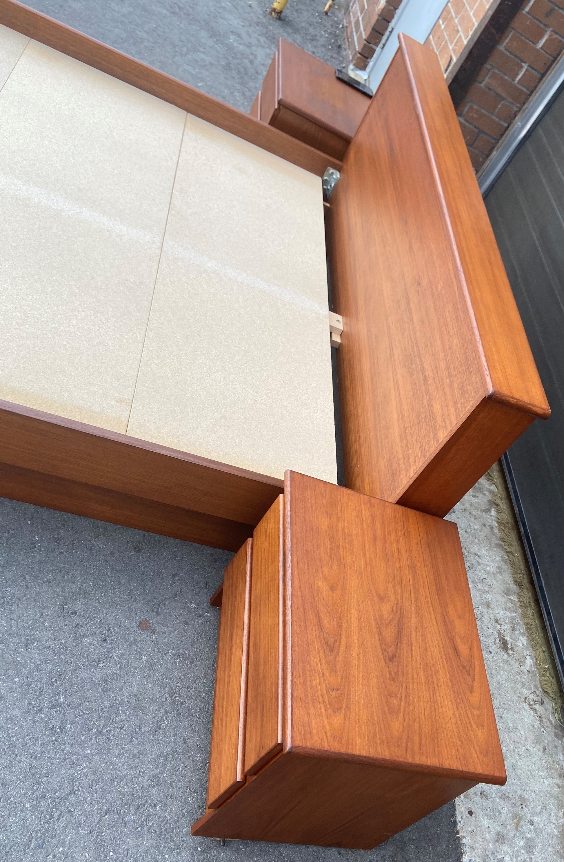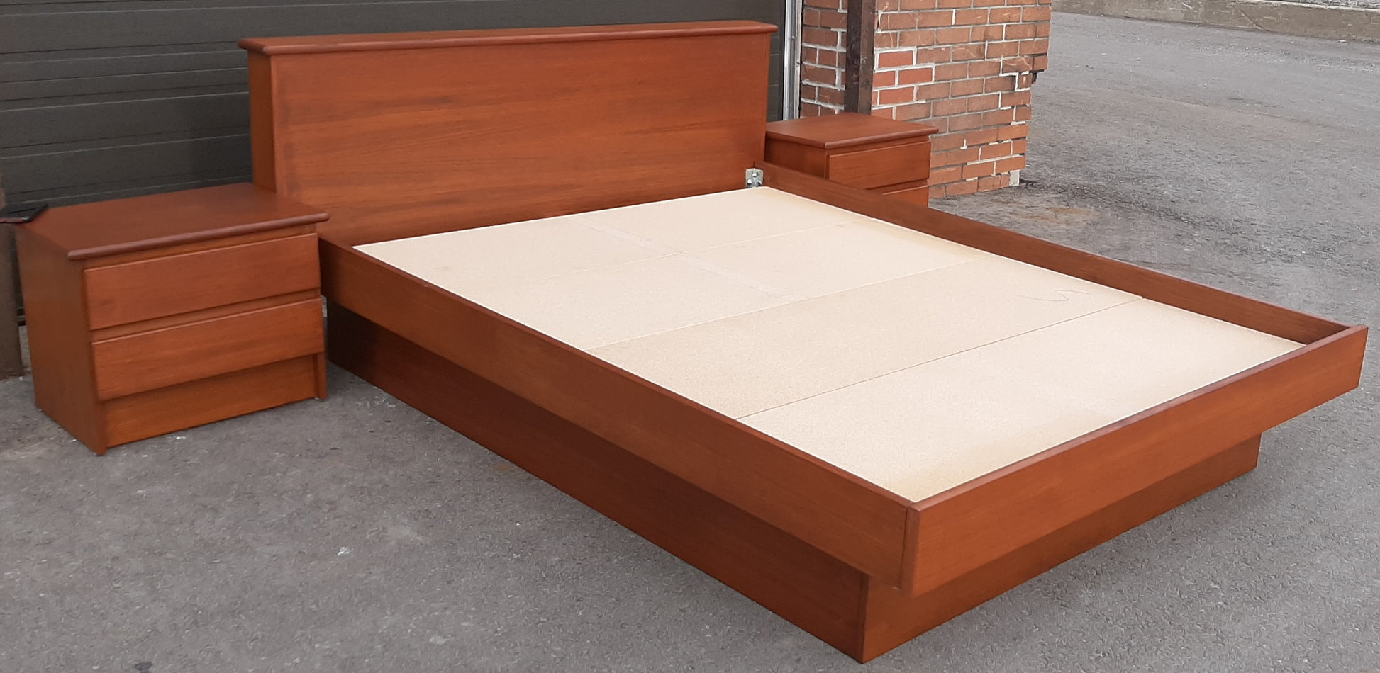 REFINISHED MCM Teak Bed Queen with 2 separate night stands by Mobican, PERFECT