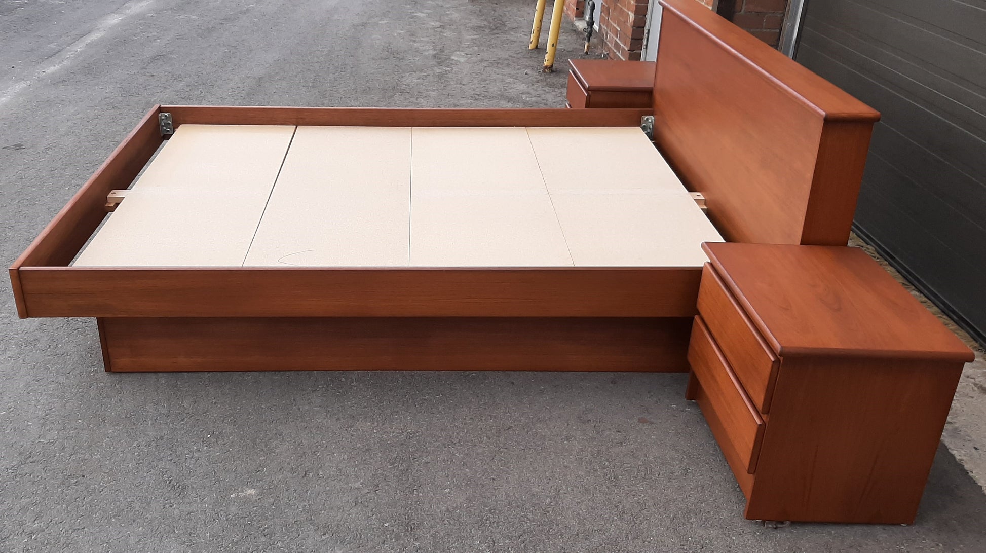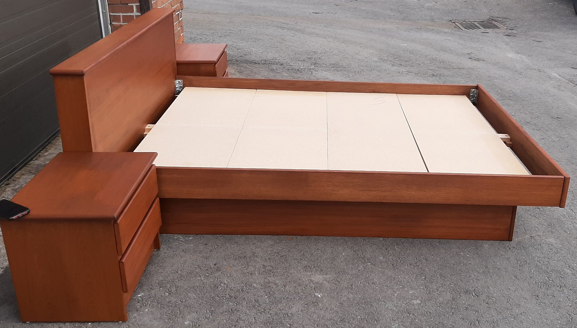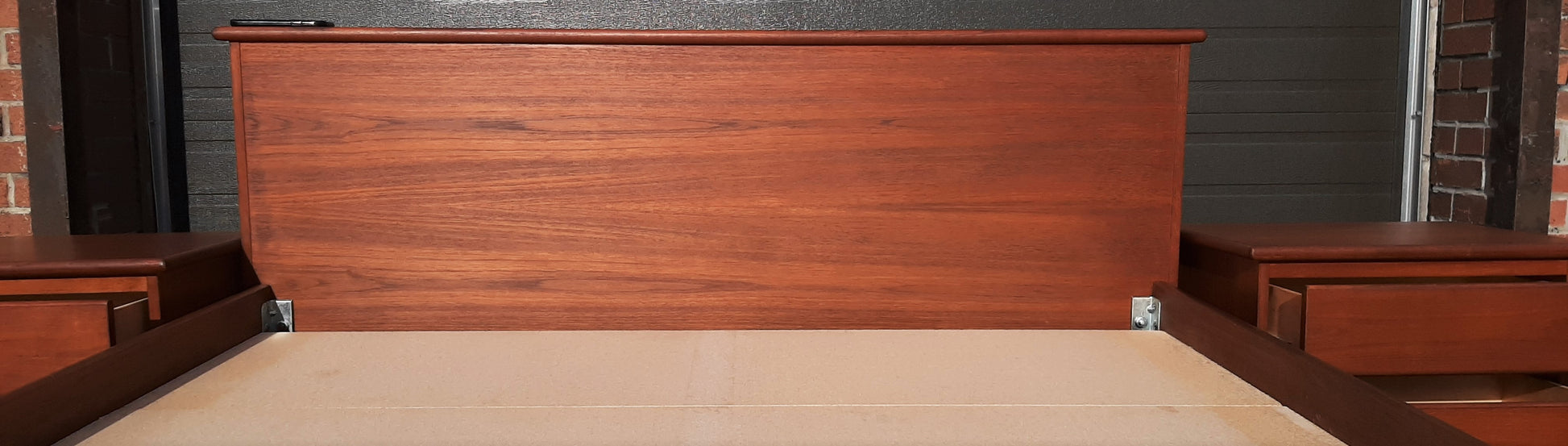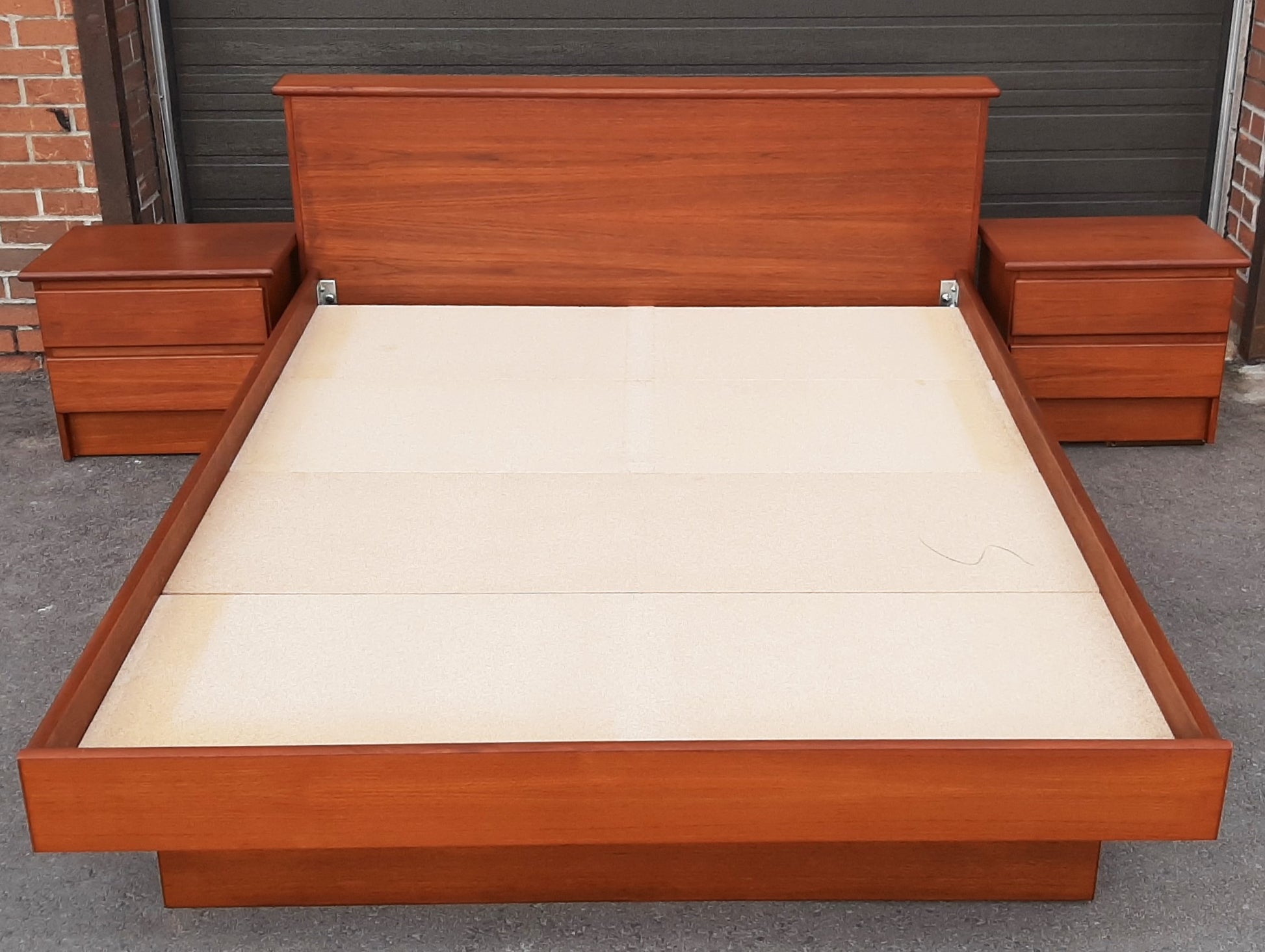 REFINISHED MCM Teak Bed Queen with 2 separate night stands by Mobican, PERFECT