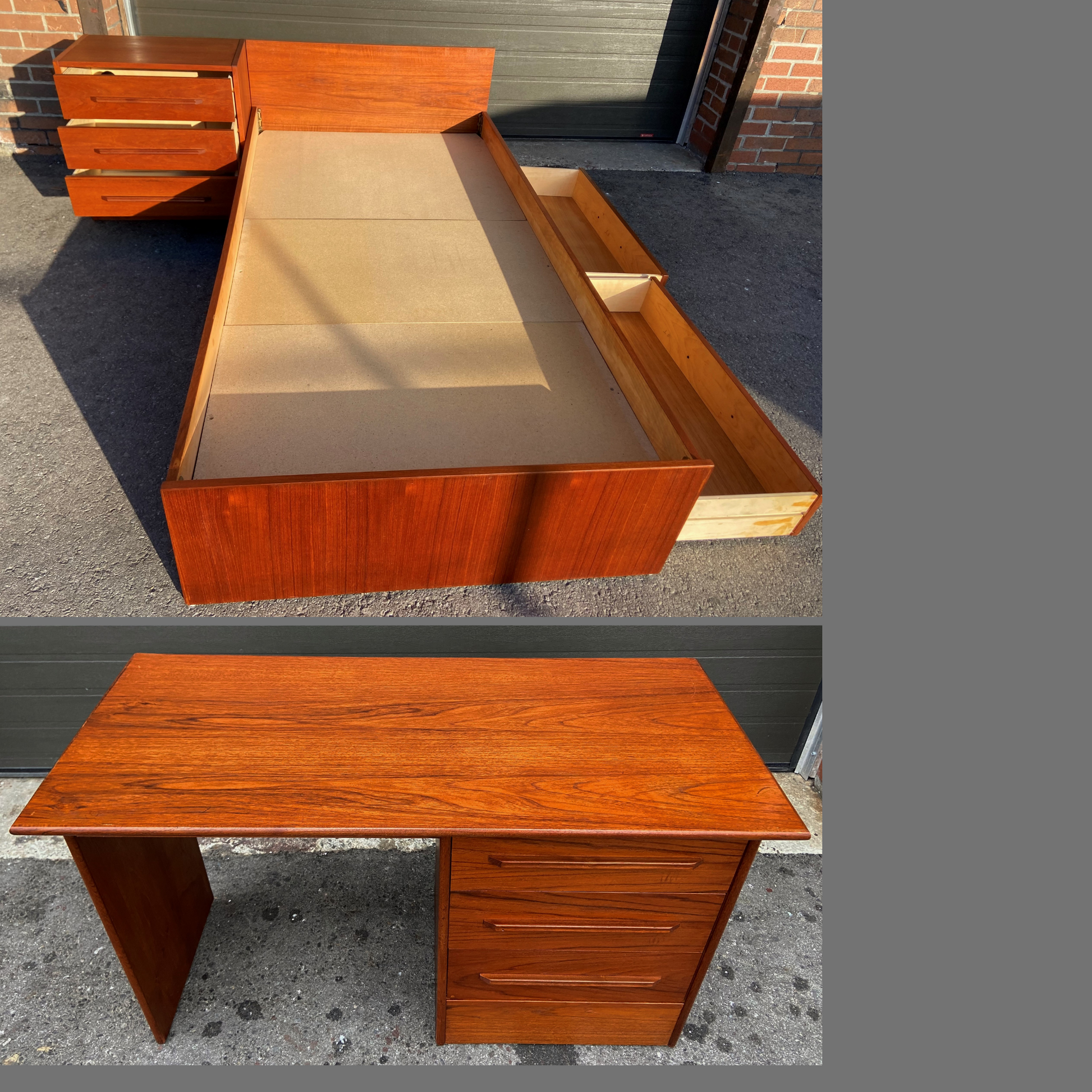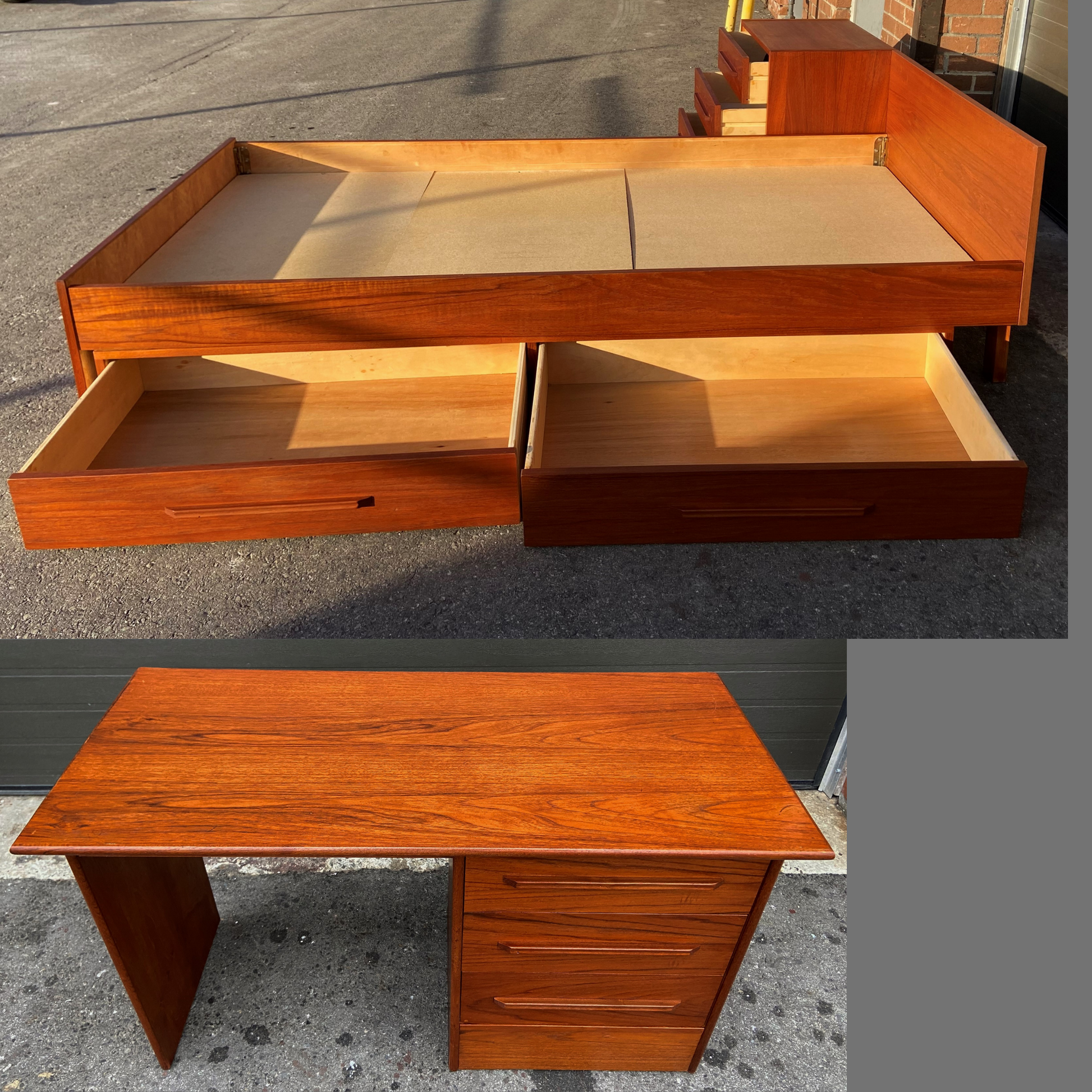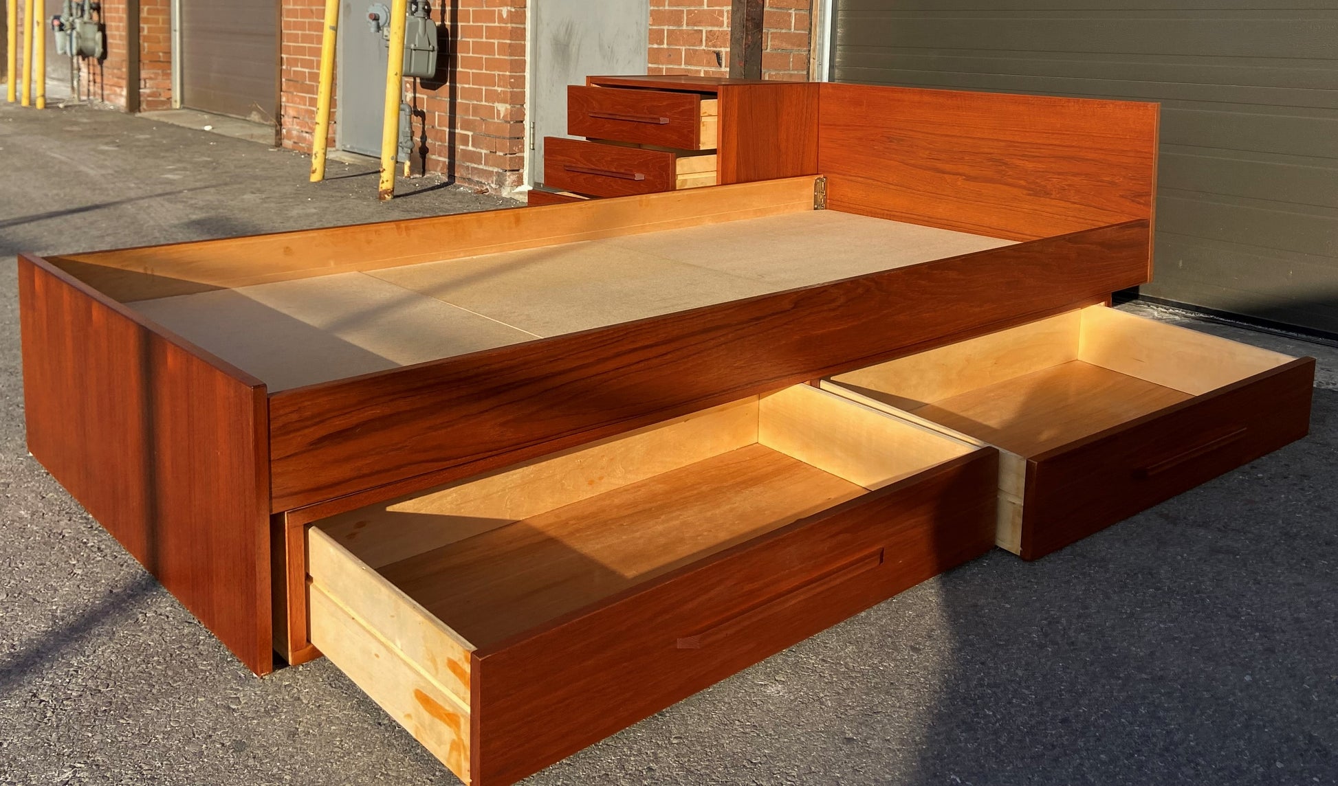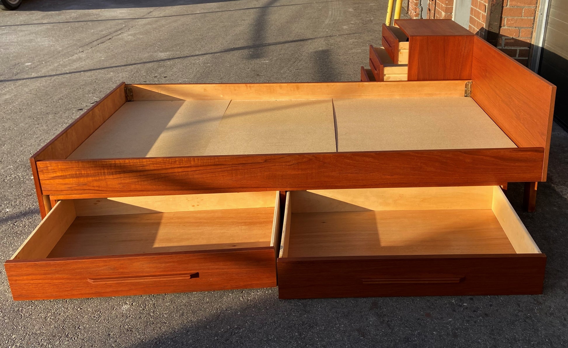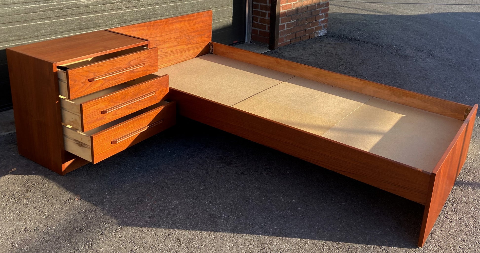 REFINISHED MCM Teak Bed Single XL w 2 Drawers & Nightstand. Matching Desk available