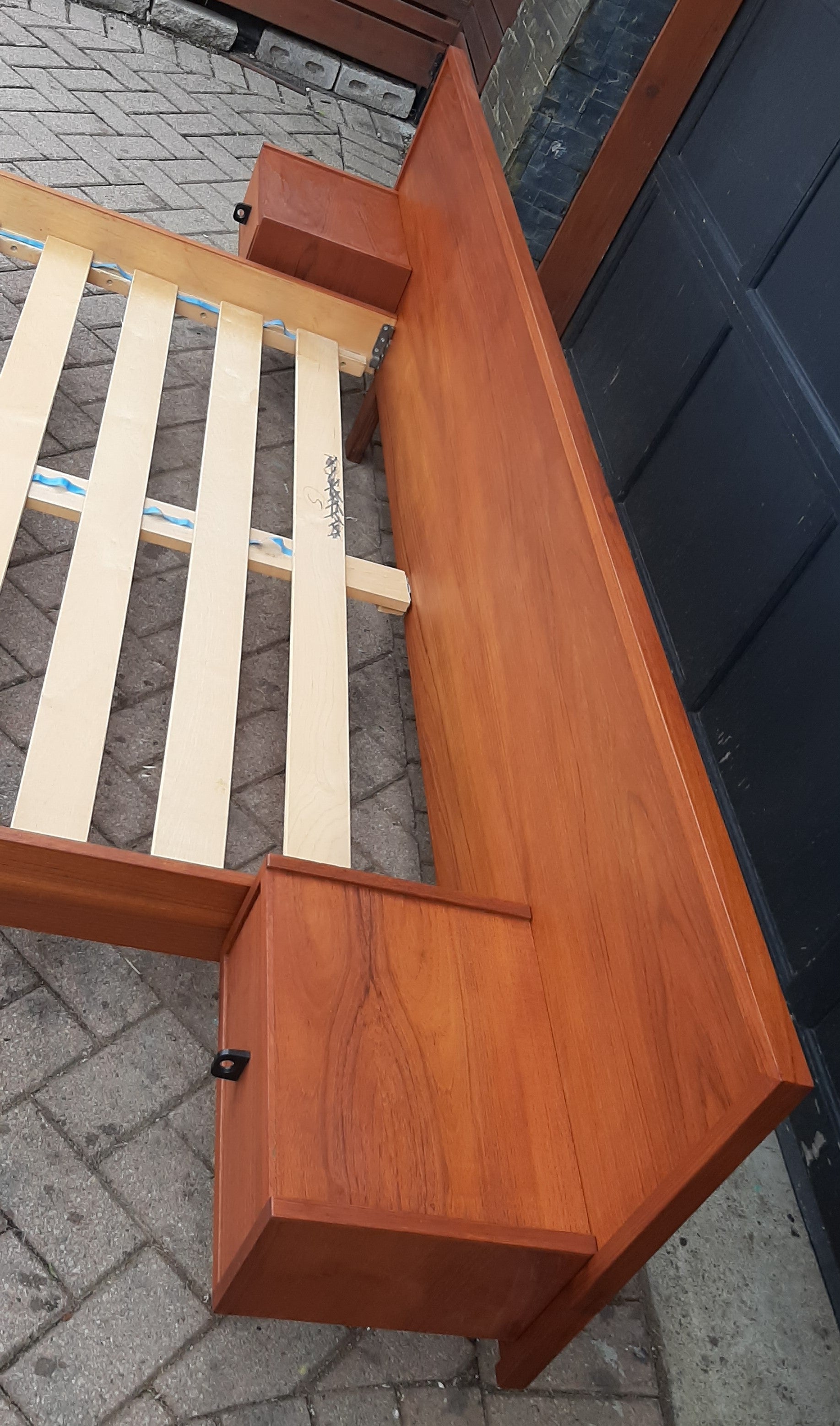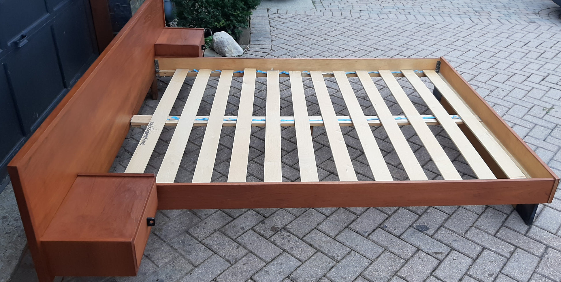 ON HOLD REFINISHED MCM Teak Platform Bed w floating nightstands Queen