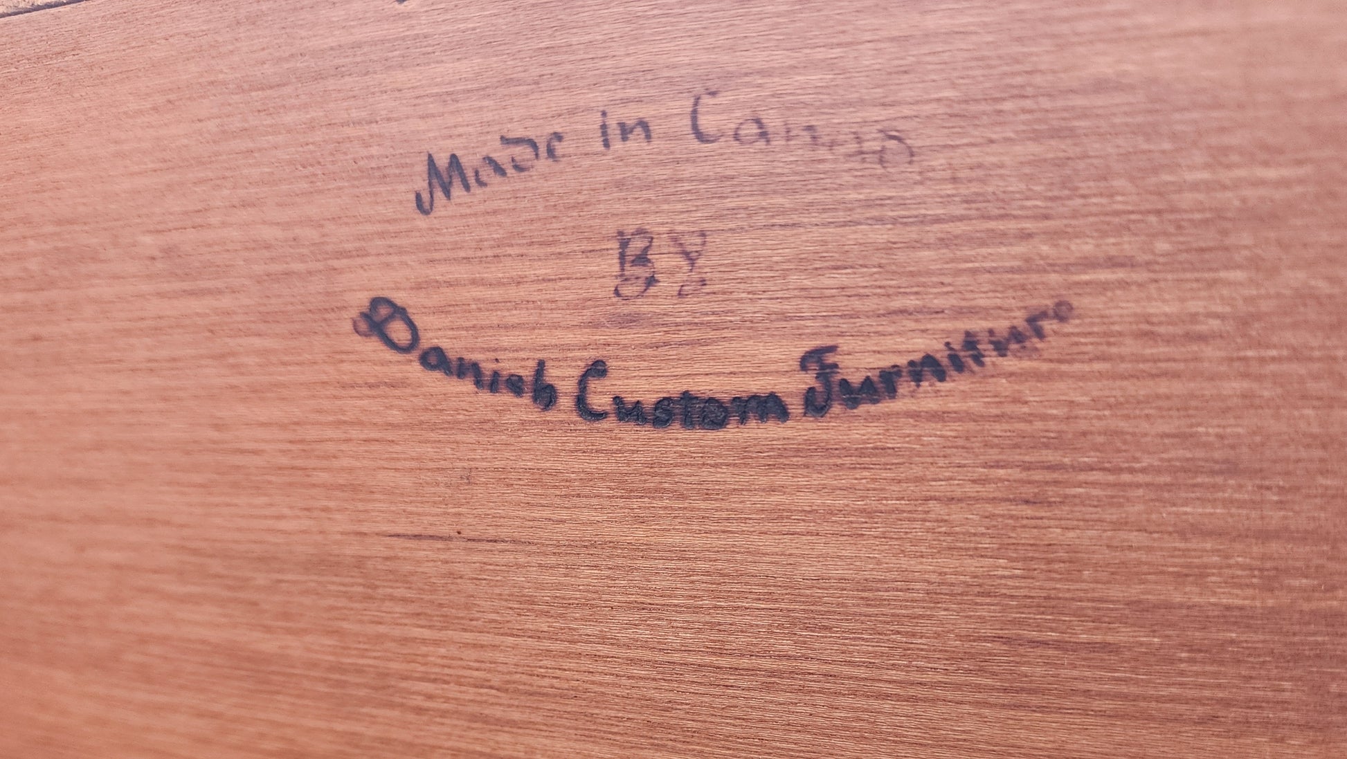 The sideboard has been stripped, sanded, and refinished with Danish oil to a great almost new condition, no scratches remaining, just a few faded lines on top where the hutch stood for a long time.
