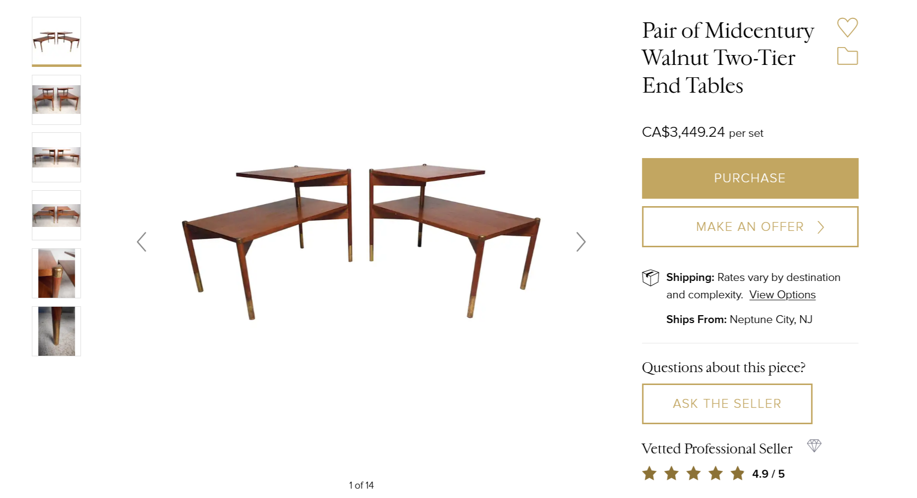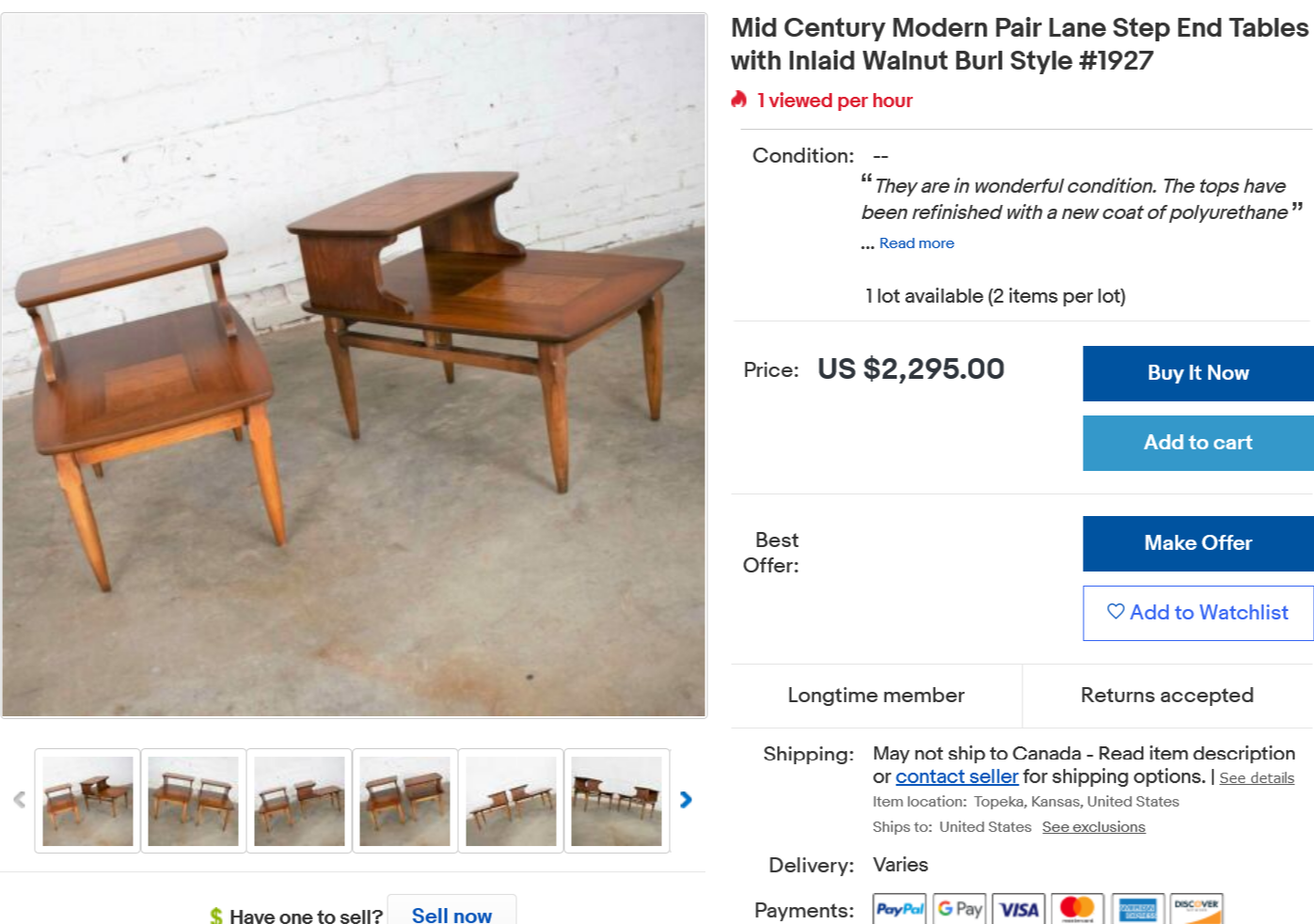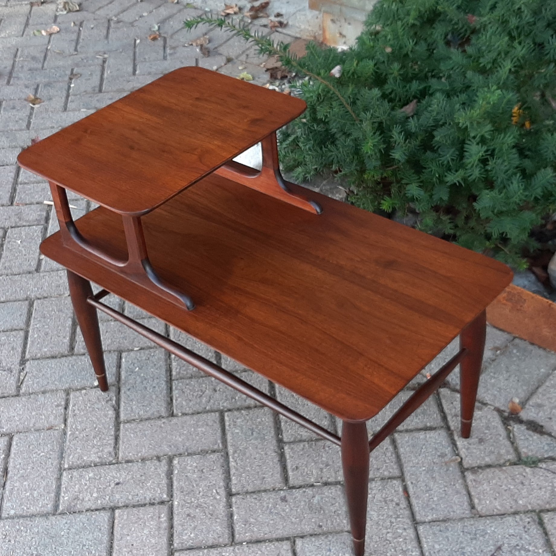 REFINISHED MCM Walnut Two Tier / Step End Table, PERFECT