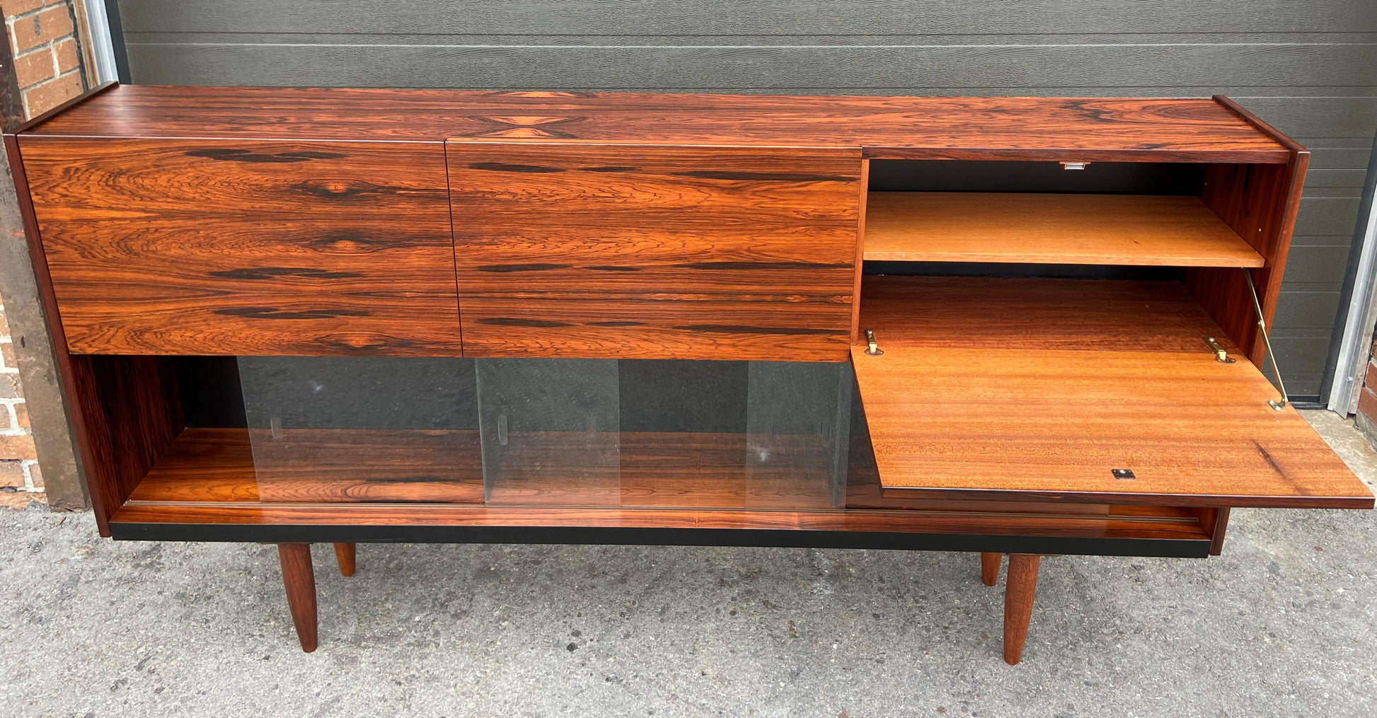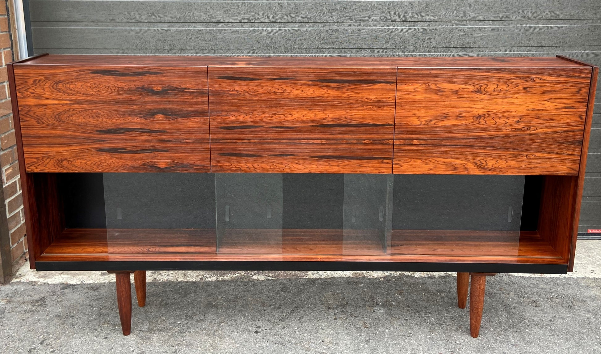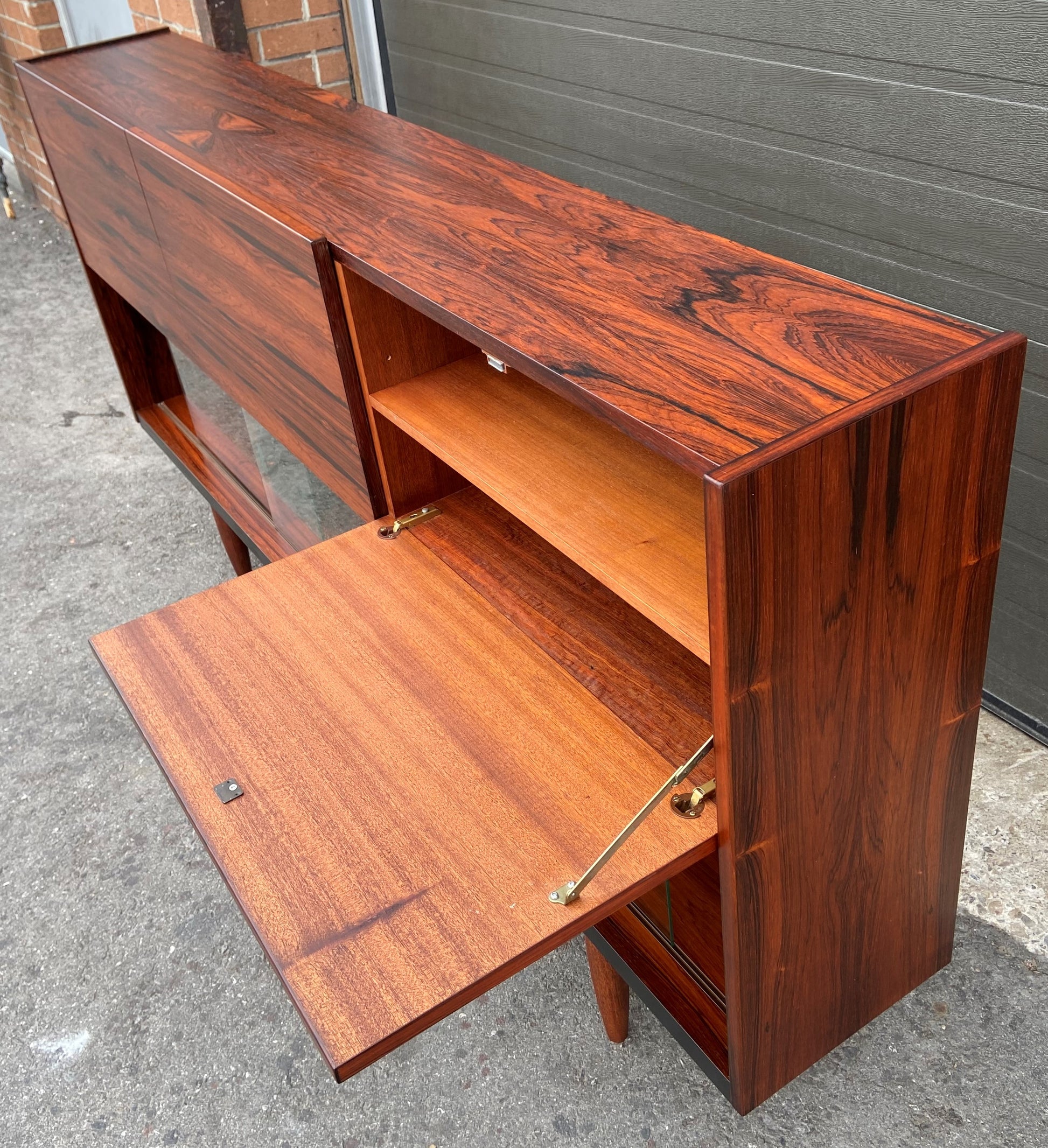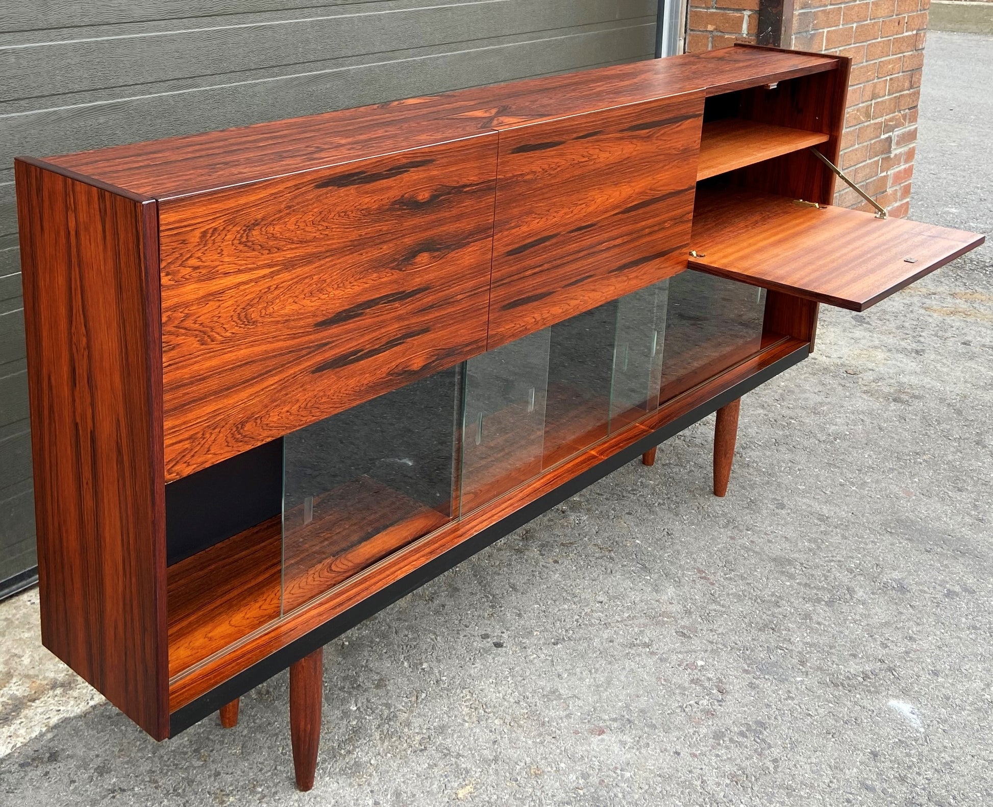 REFINISHED Mid Century Modern Cabinet w Rosewood & Glass Doors Narrow 73.5", Perfect