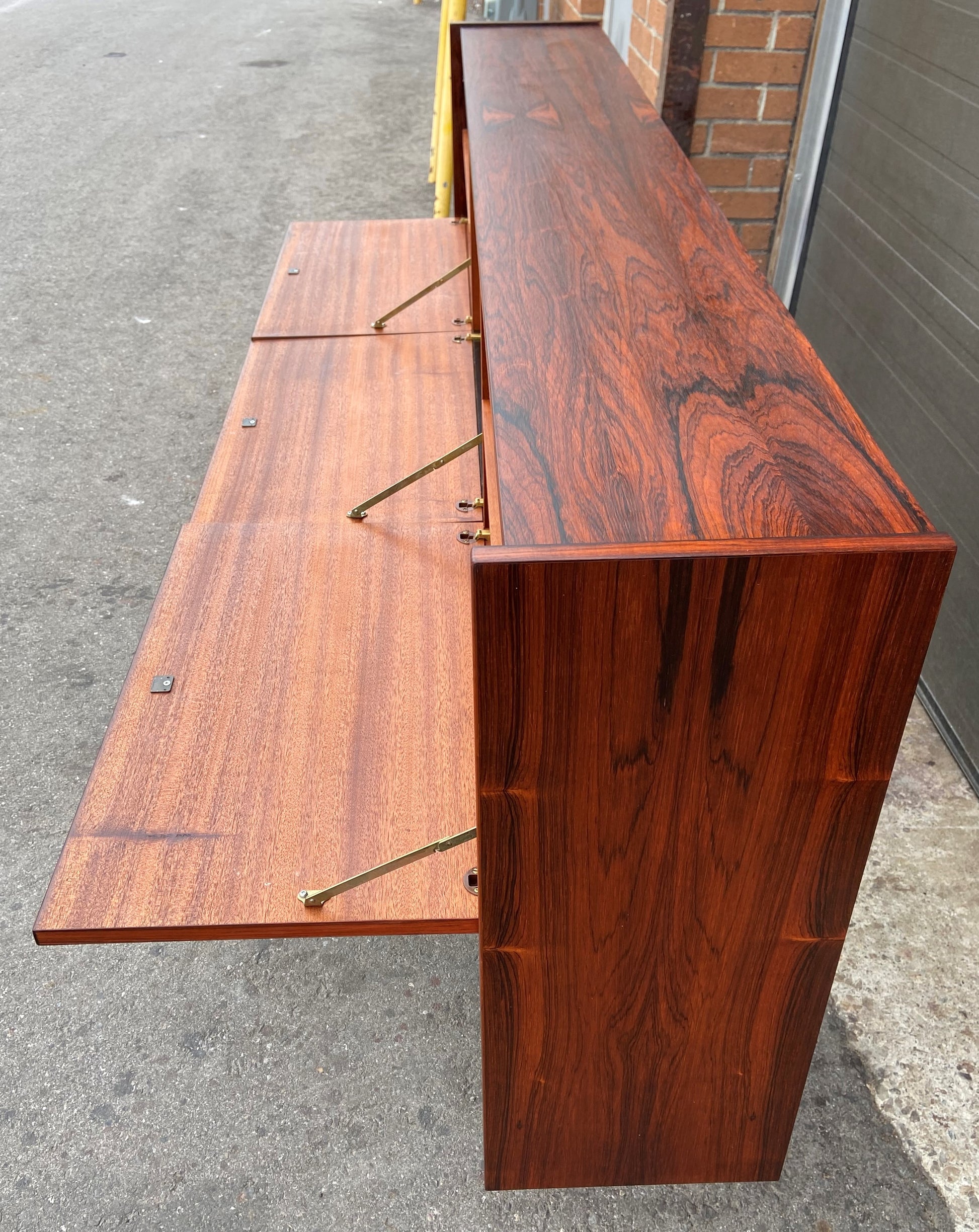 For sale we have a beautifully designed & crafted Mid Century Modern rosewood cabinet with drop down rosewood doors and display area behind the glass doors.