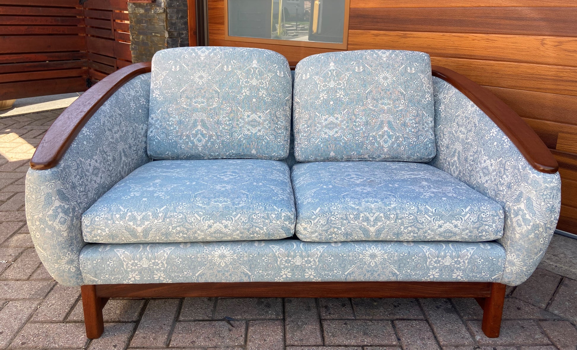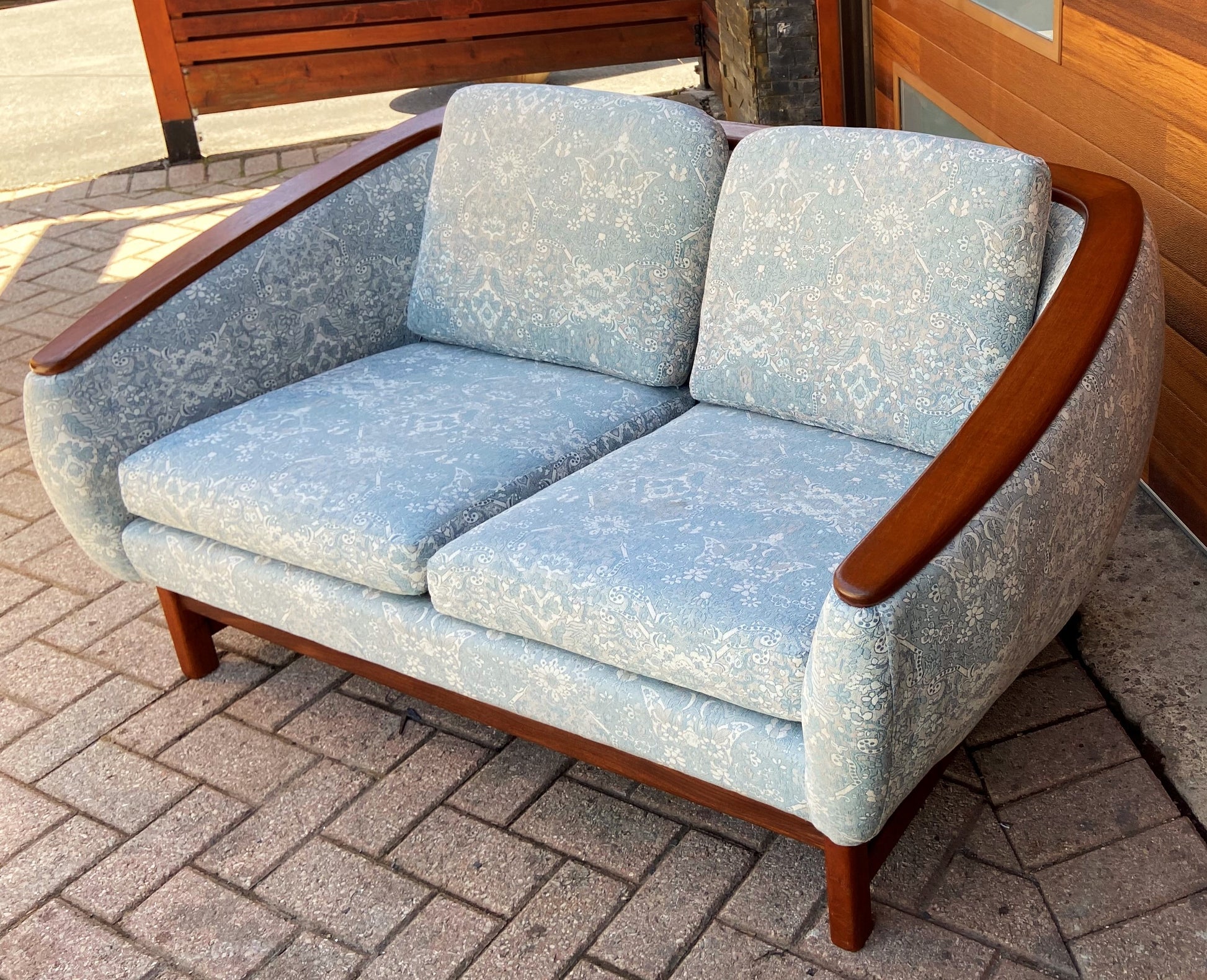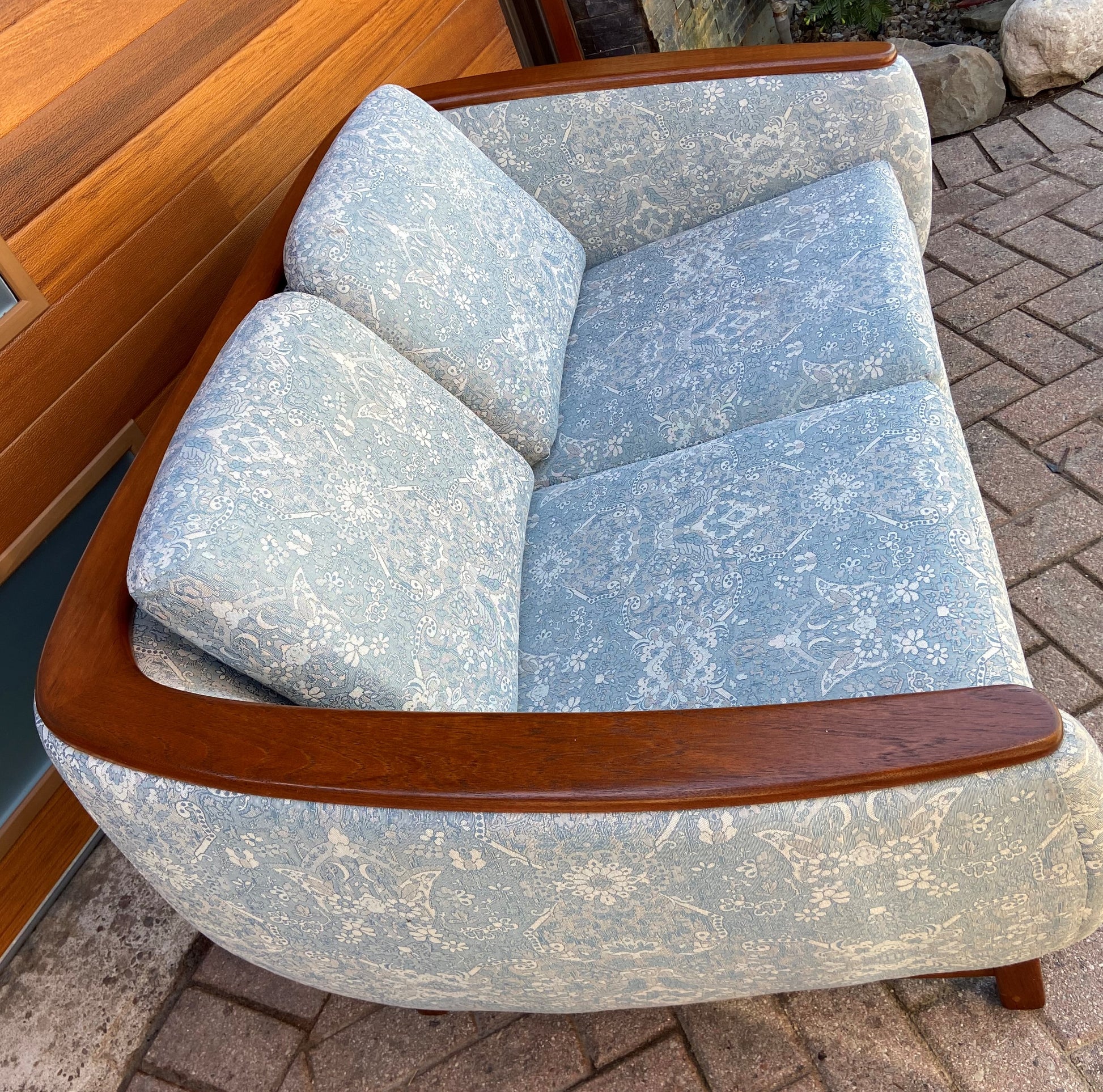 REFINISHED Mid Century Modern Huber Barrel Back Teak Loveseat