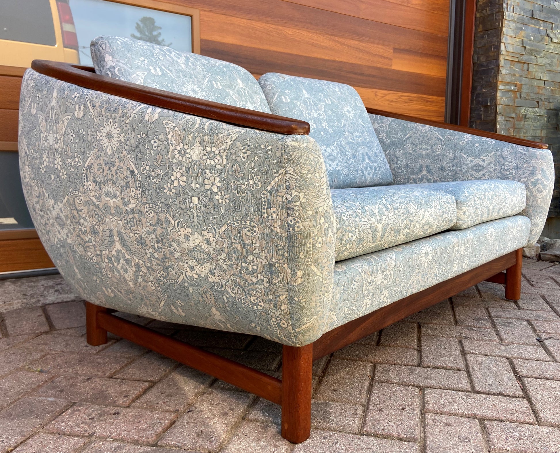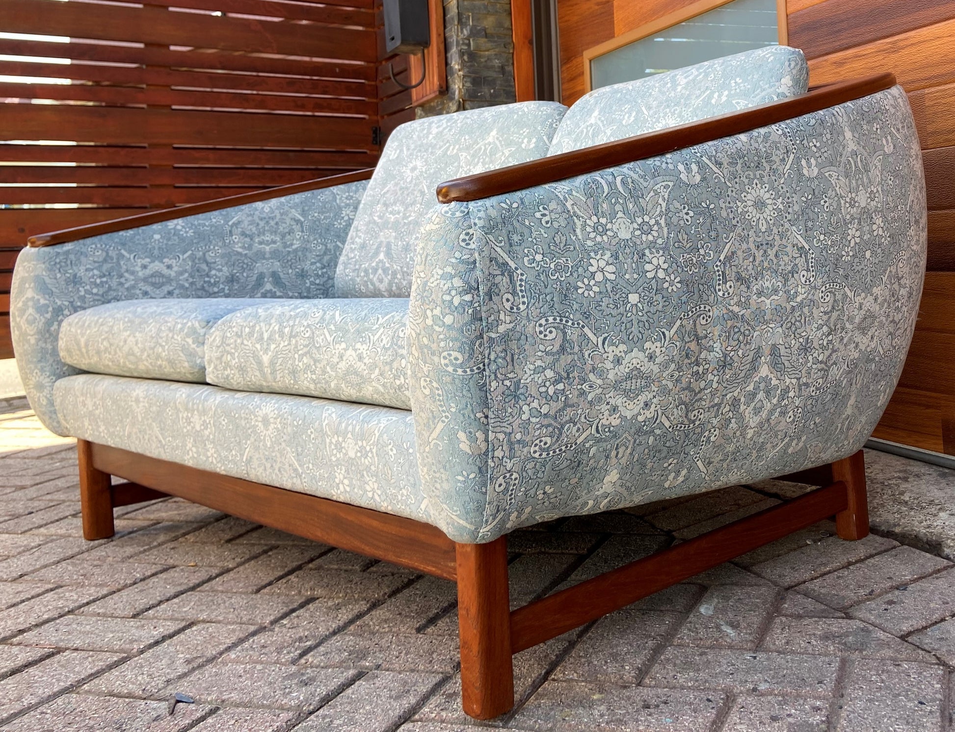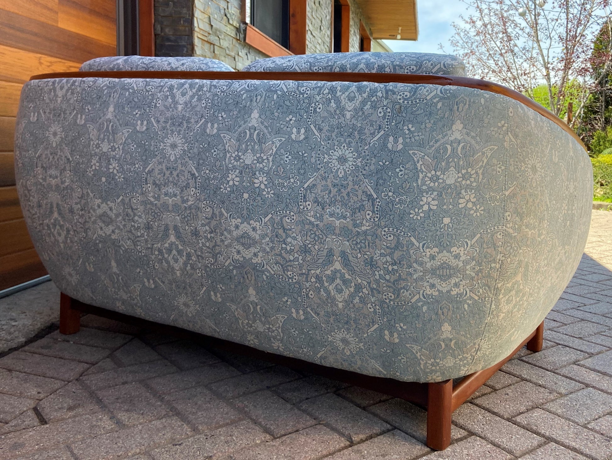 REFINISHED Mid Century Modern Huber Barrel Back Teak Loveseat
