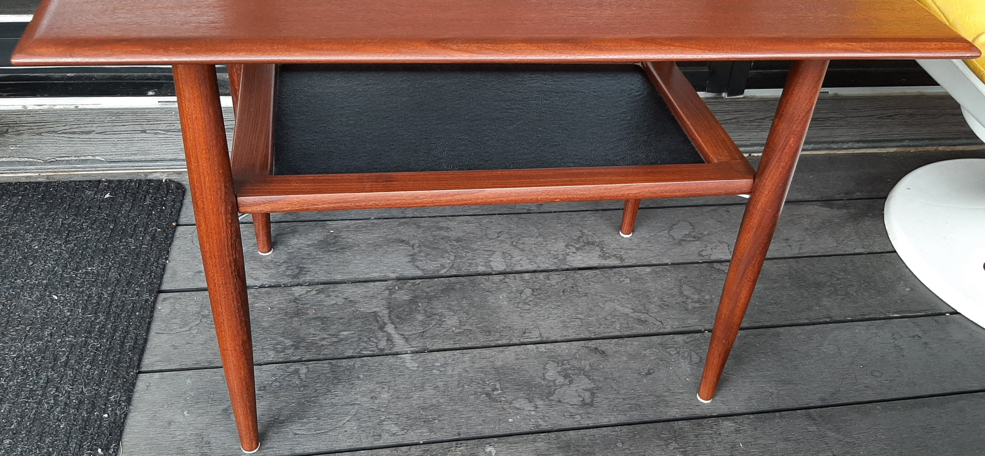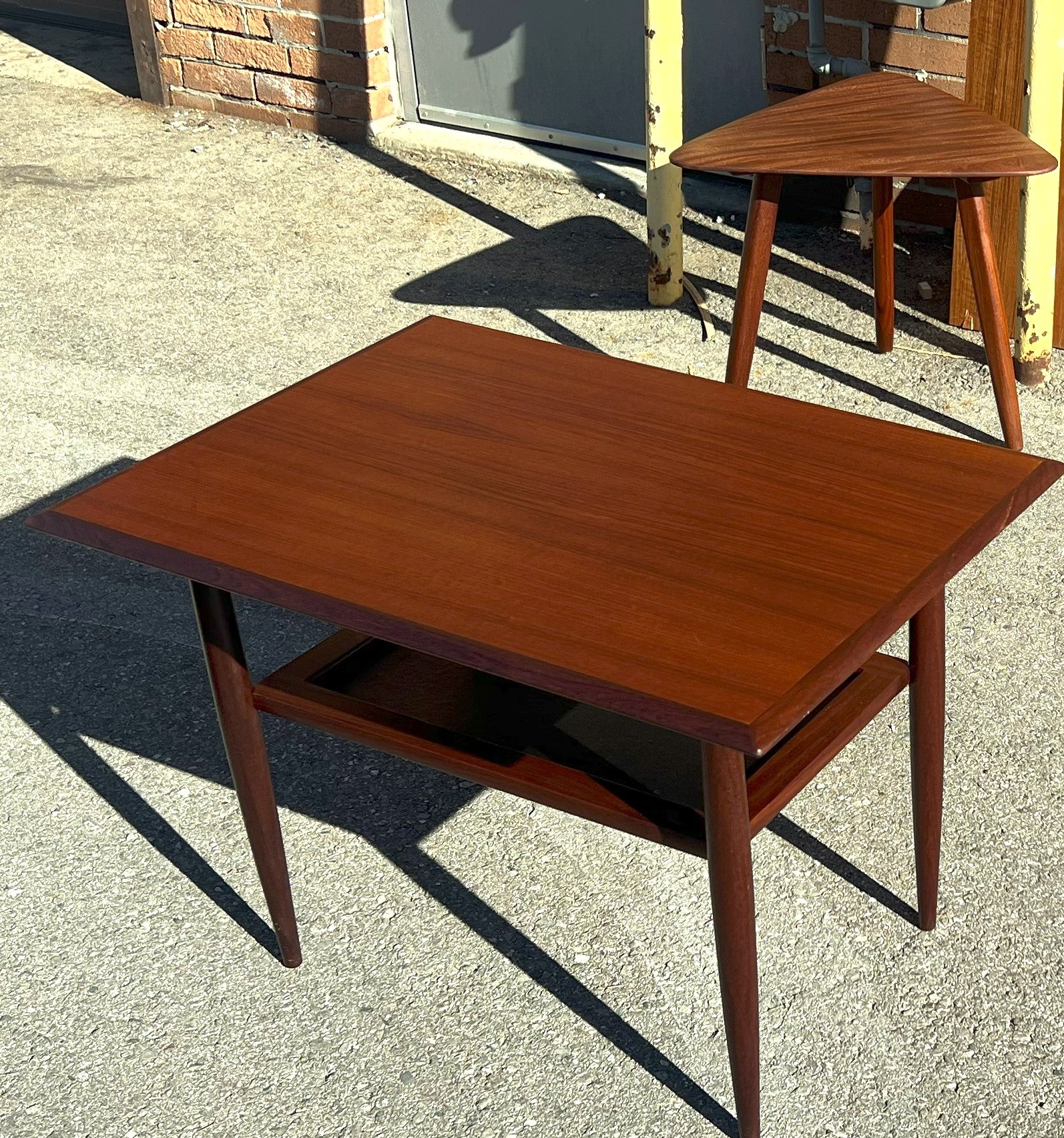 REFINISHED Mid Century Modern Teak Accent Table with Shelf by RS Associates