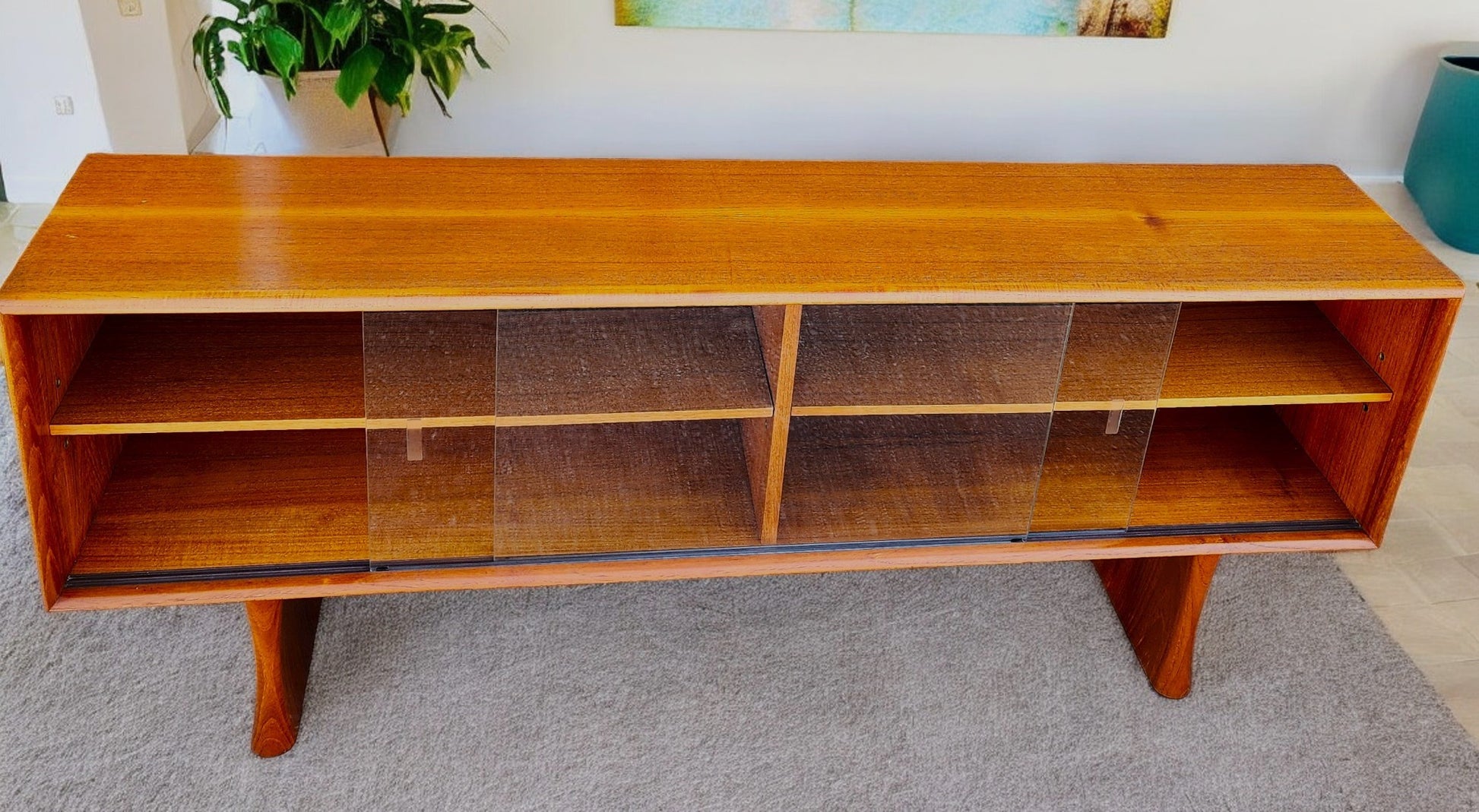 REFINISHED Mid Century Modern Teak Bookcase Display TV Media Console 5 ft
