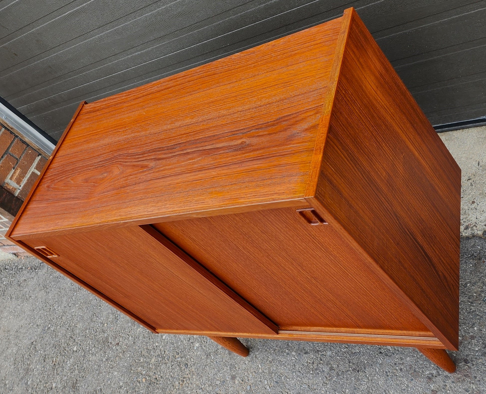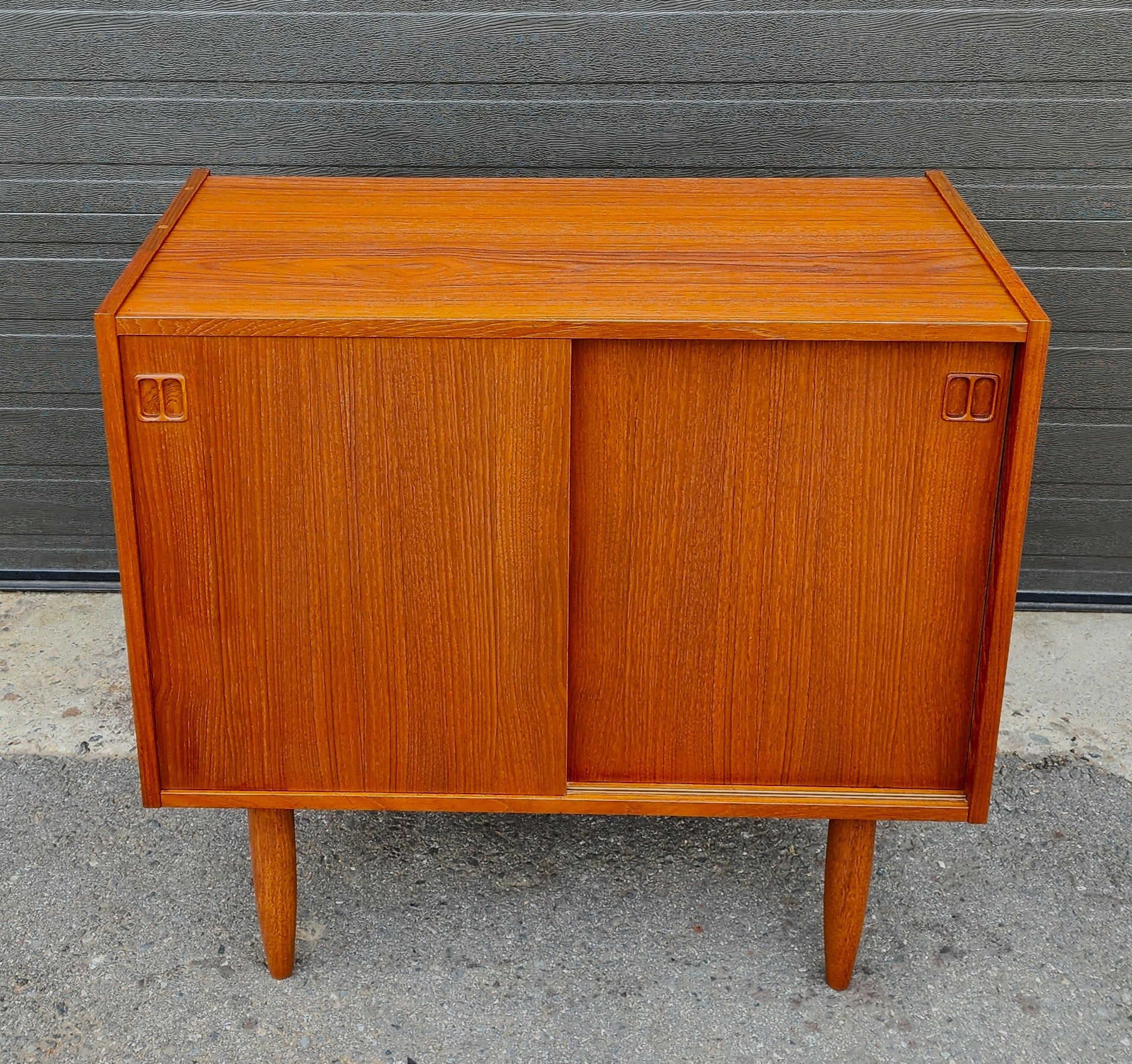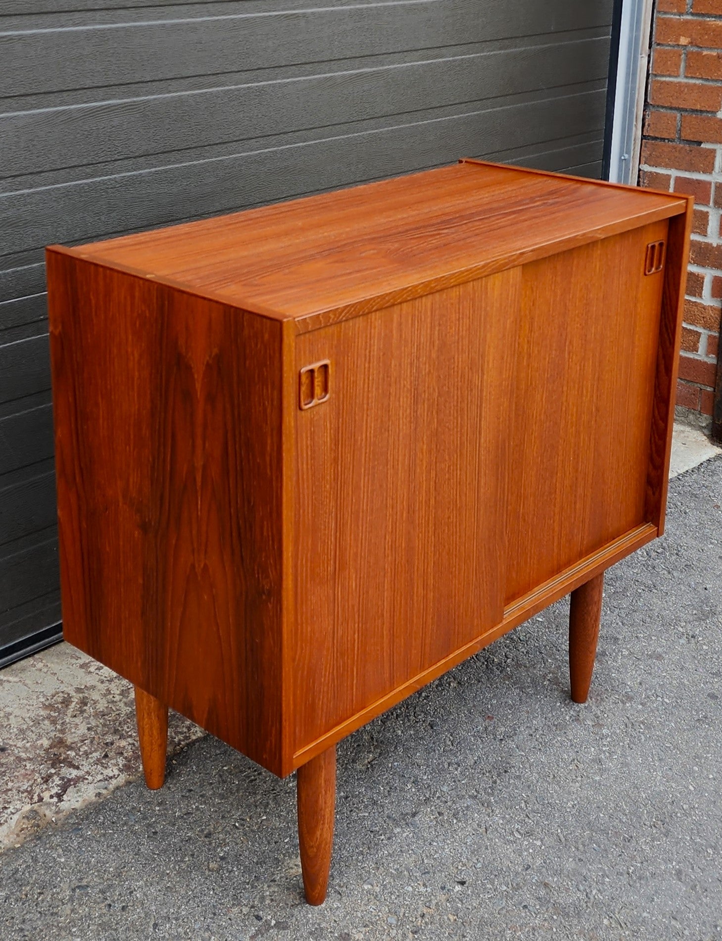 REFINISHED Danish Mid Century Modern Teak Cabinet w Sliding Doors 34"