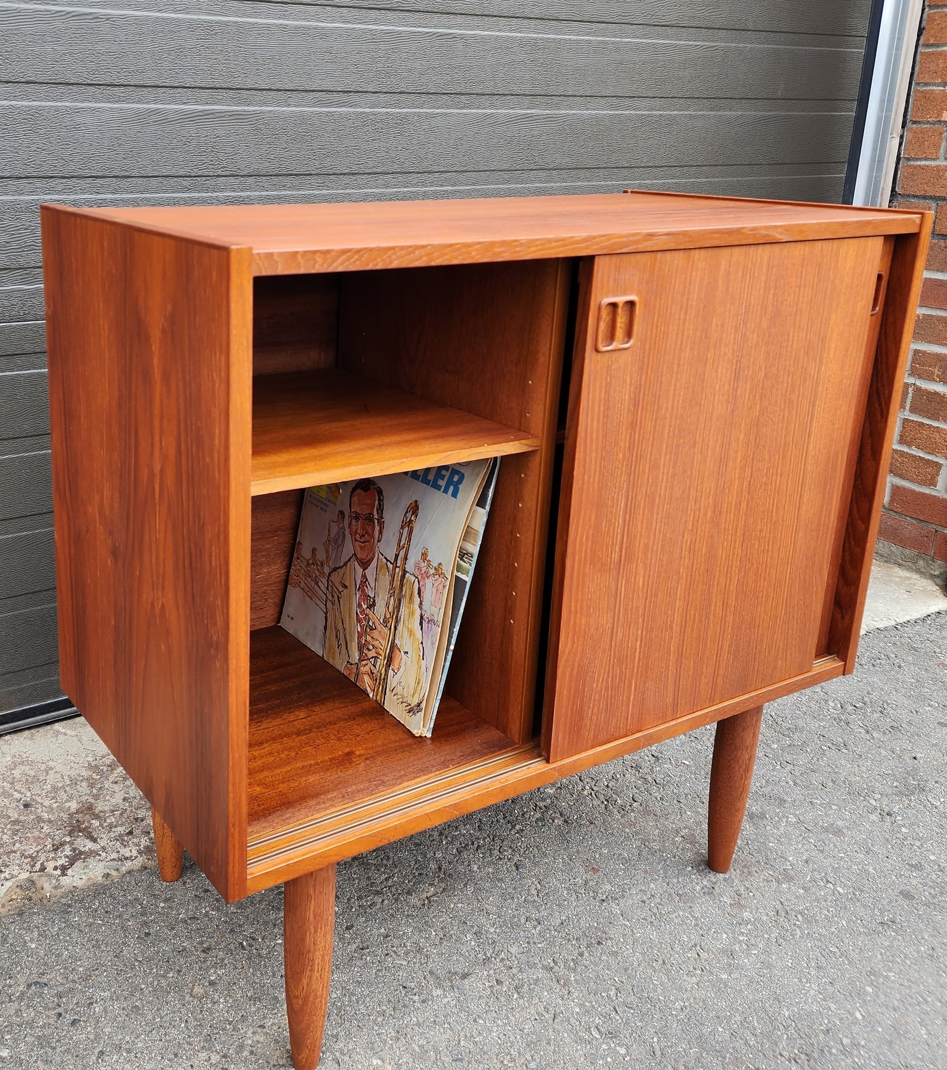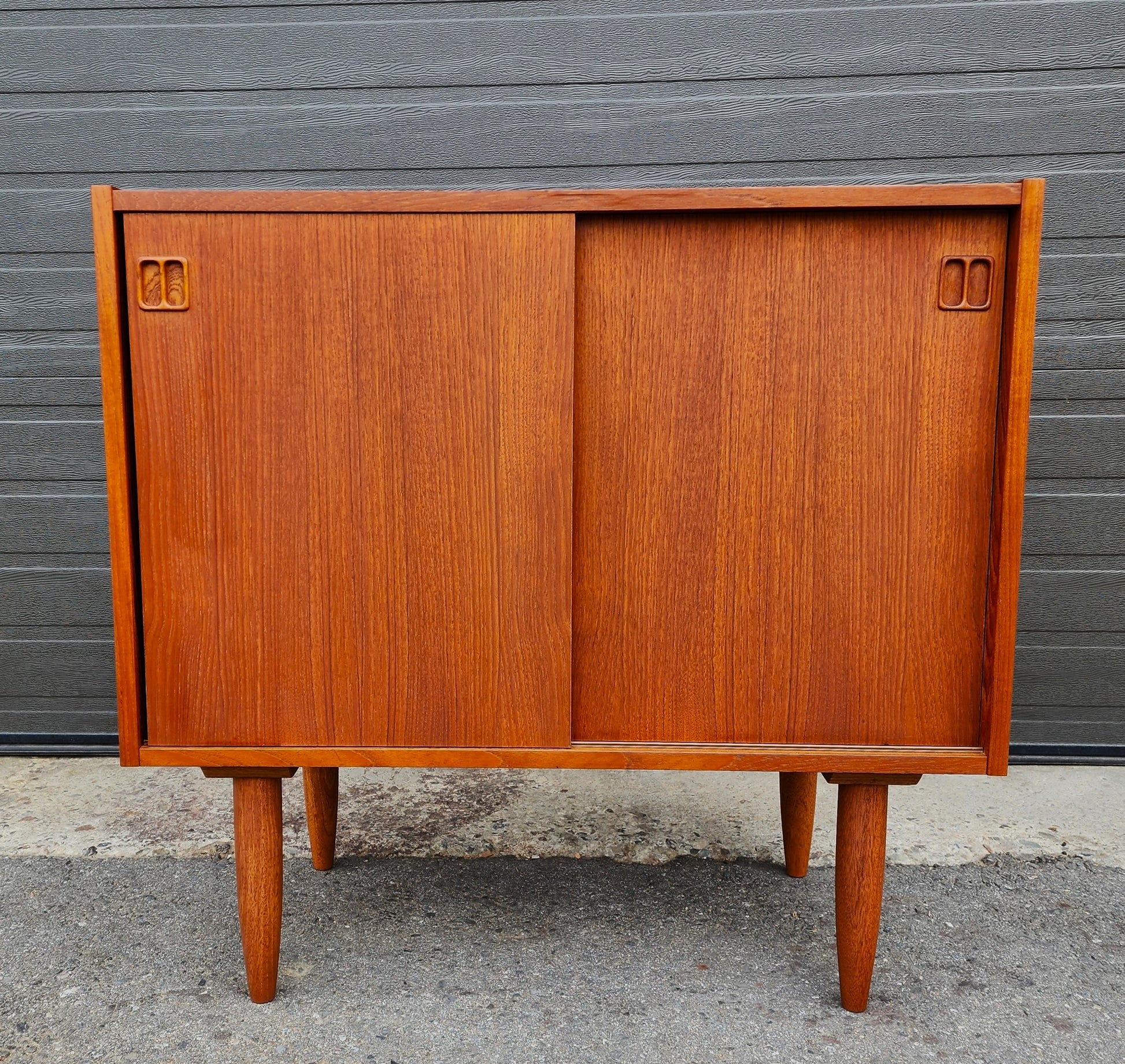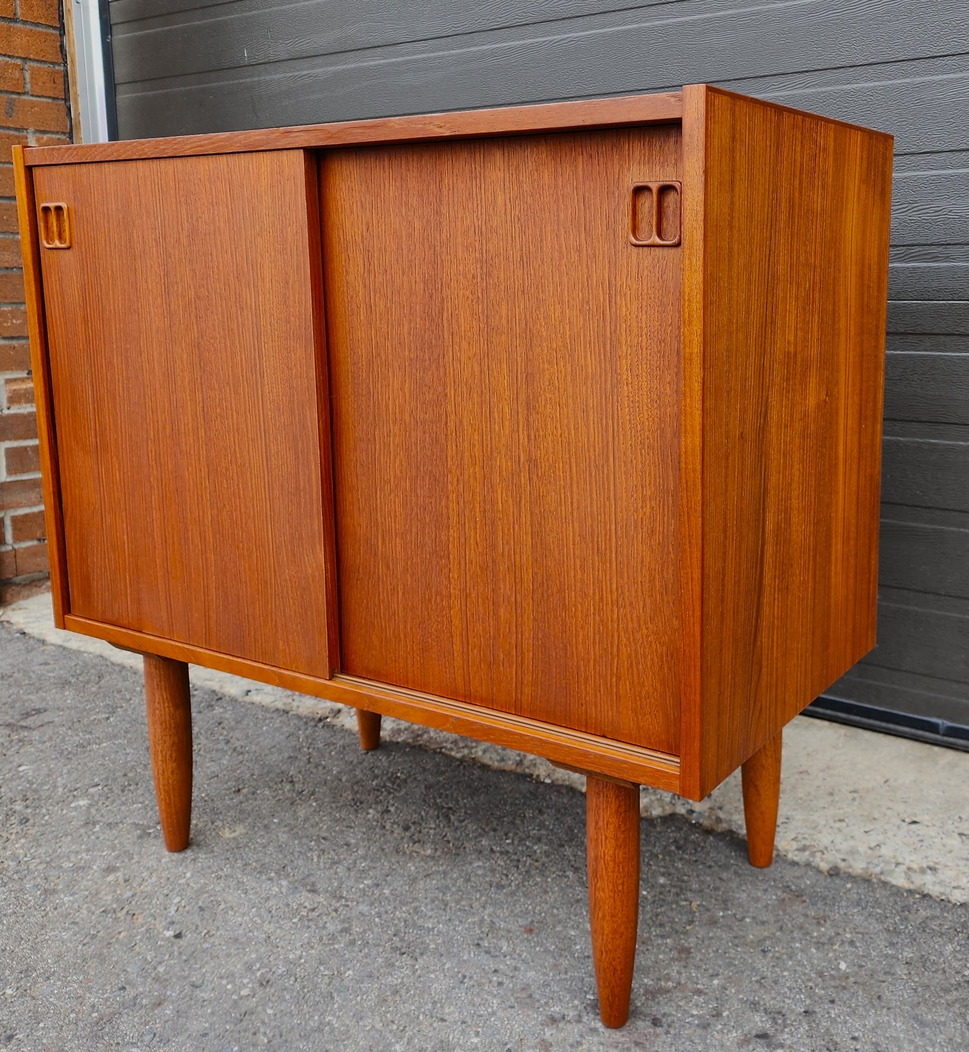 REFINISHED Danish Mid Century Modern Teak Cabinet w Sliding Doors 34"