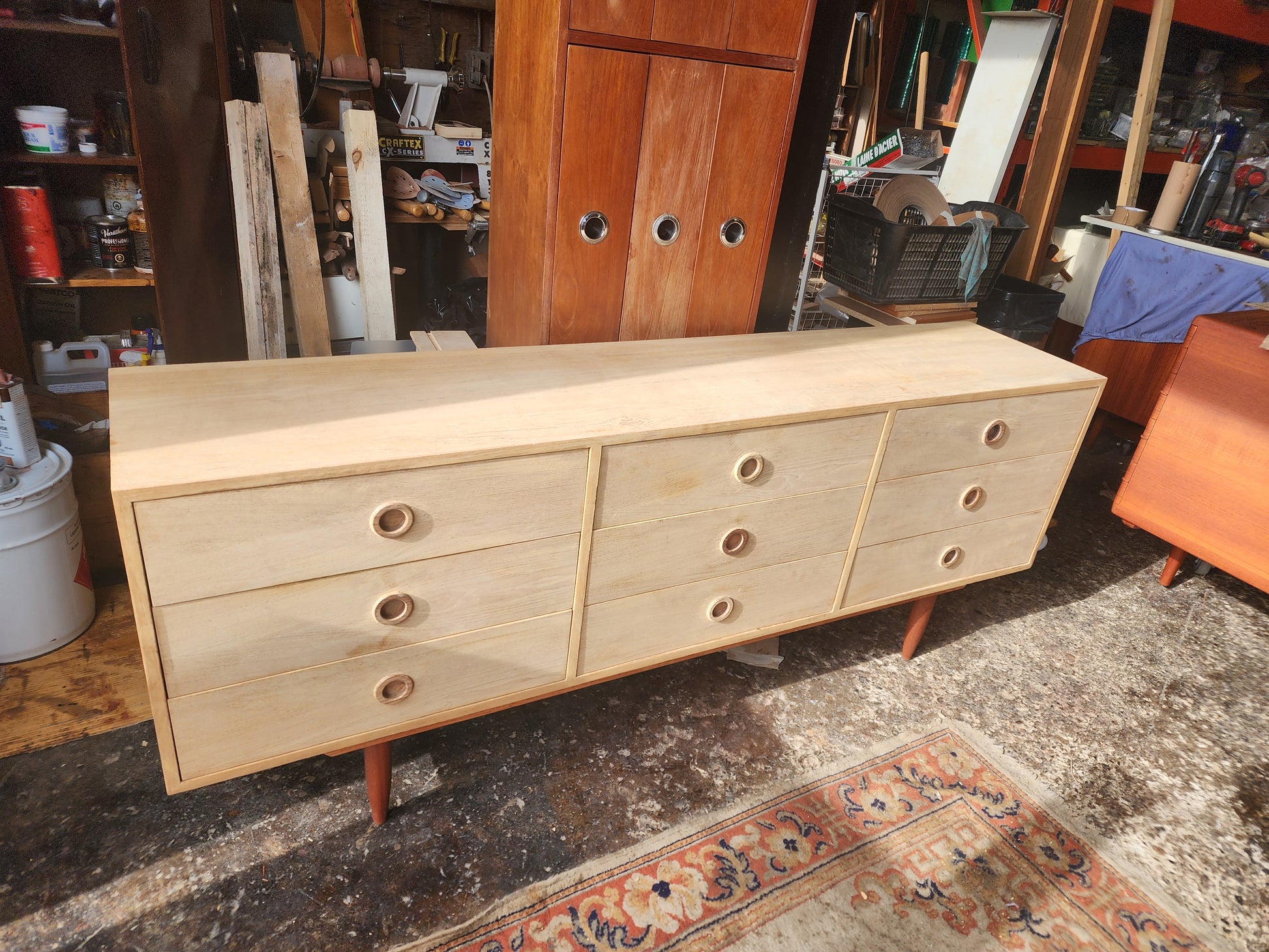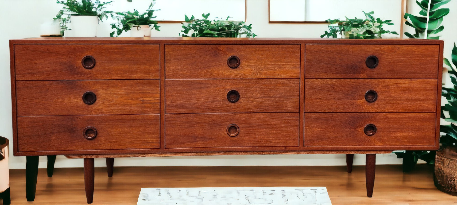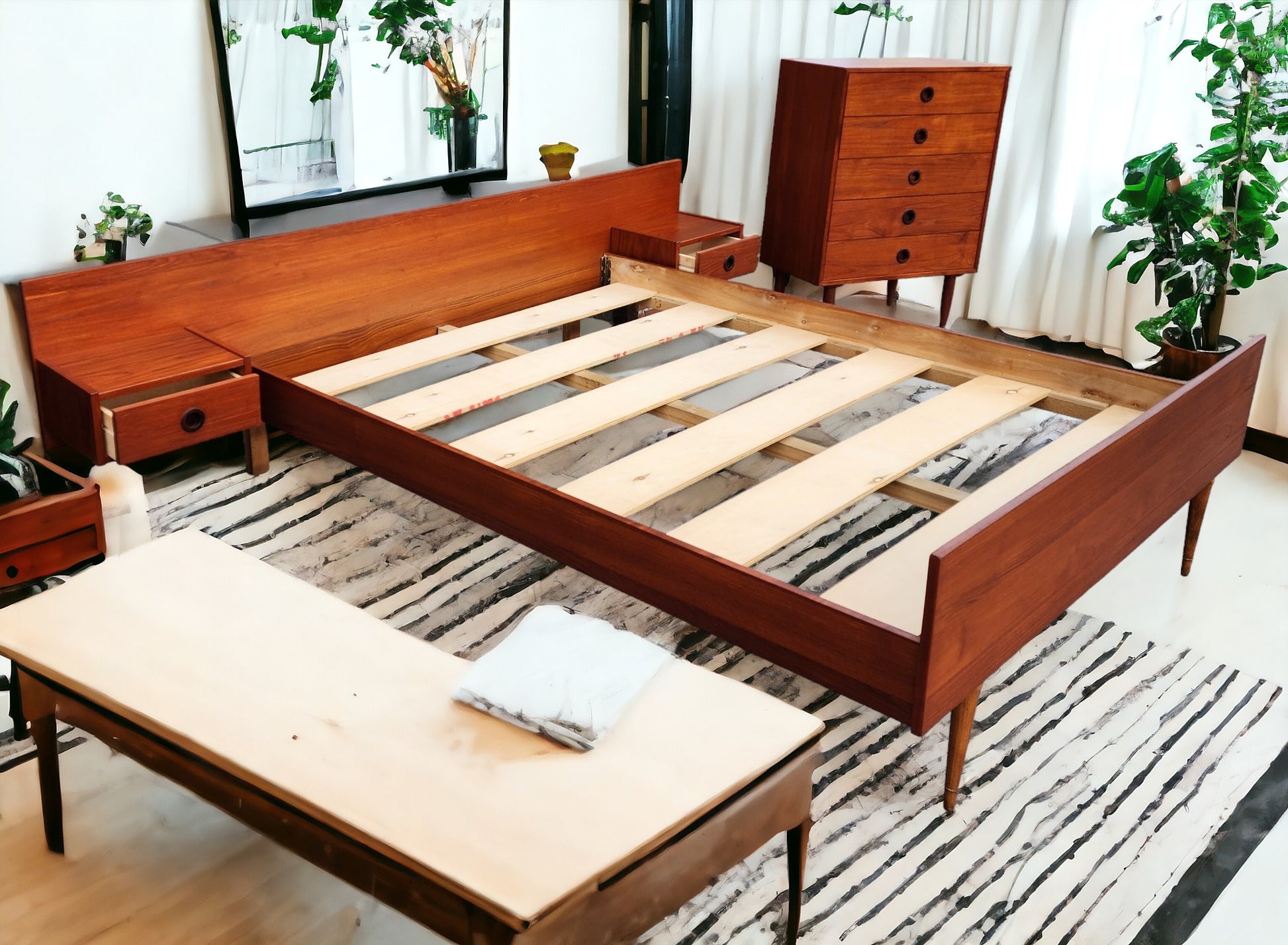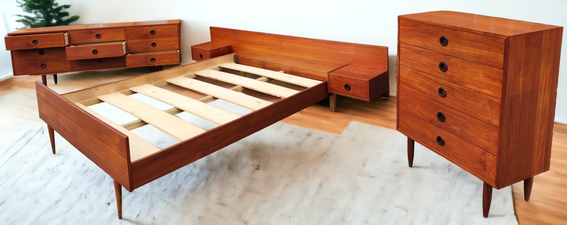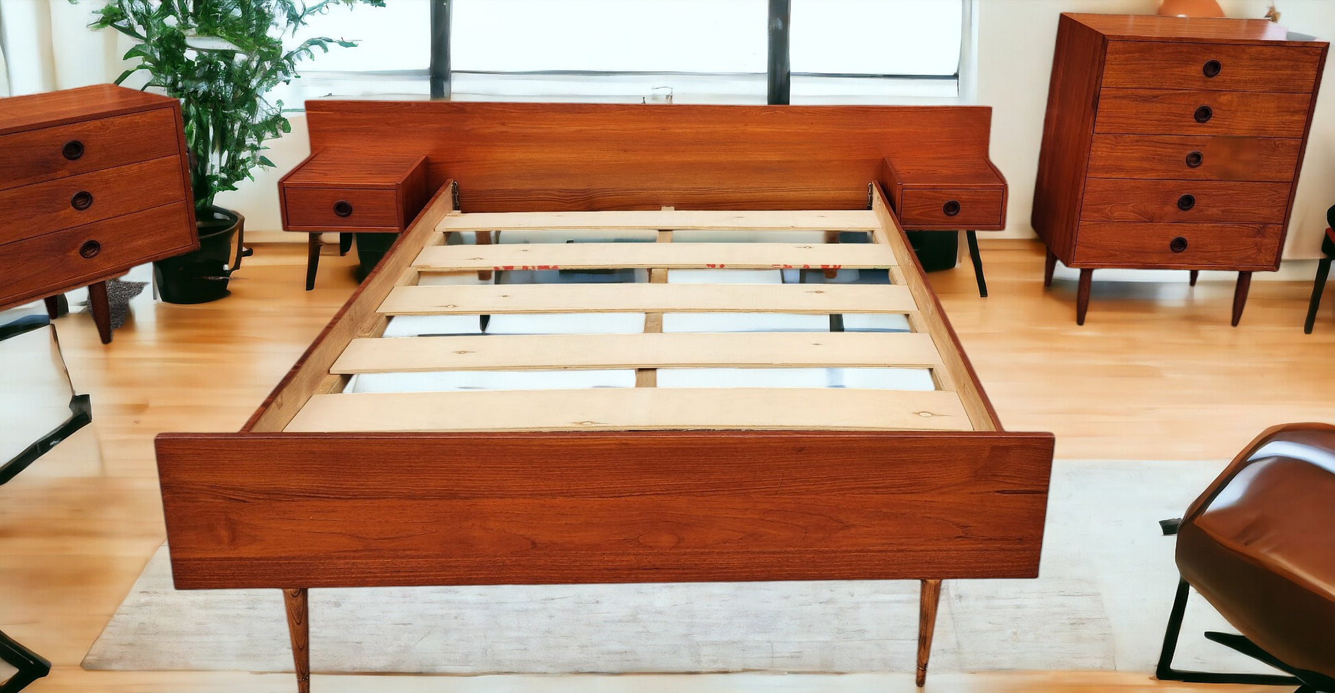 REFINISHED Mid Century Modern Teak Bedroom set (Queen Bed w Nightstands & 2 Dressers)