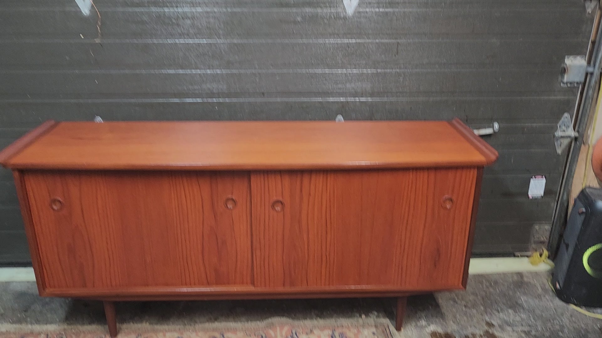 The sideboard has been stripped, sanded, and refinished with Danish oil to like new condition. Photos do not do justice to the piece.