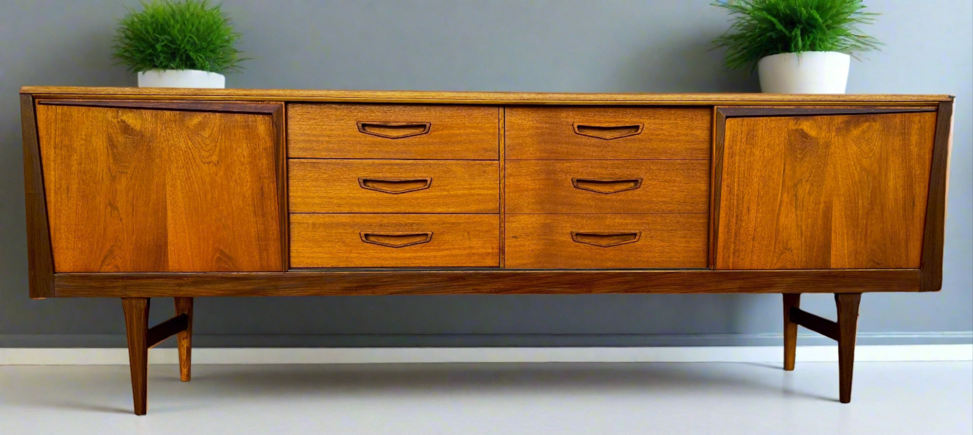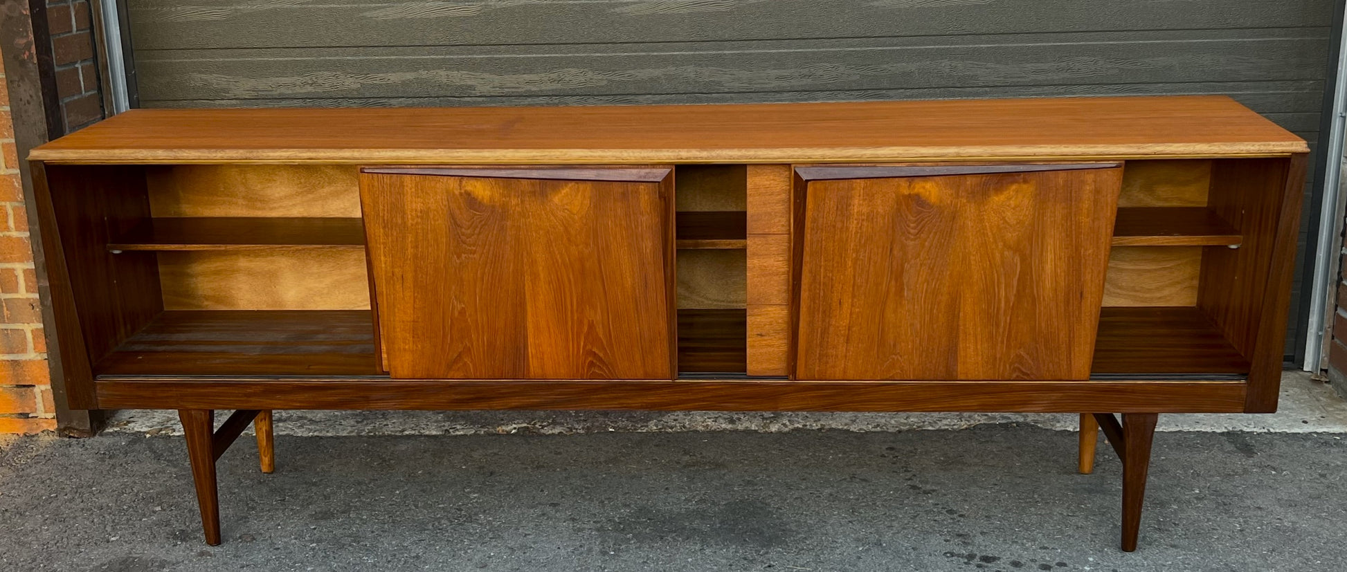 For sale, we have this wonderful Mid Century Modern teak sideboard/ credenza/ buffet manufactured by Royal Heritage Furniture, a British manufacturer of high-quality furniture. It looks even nicer in person.