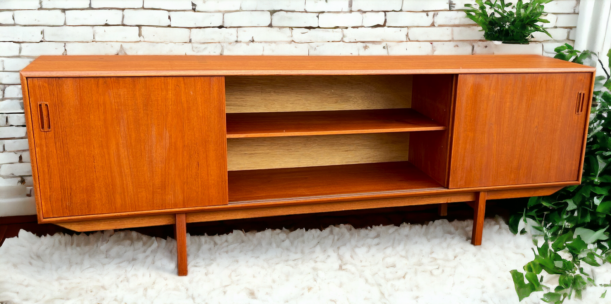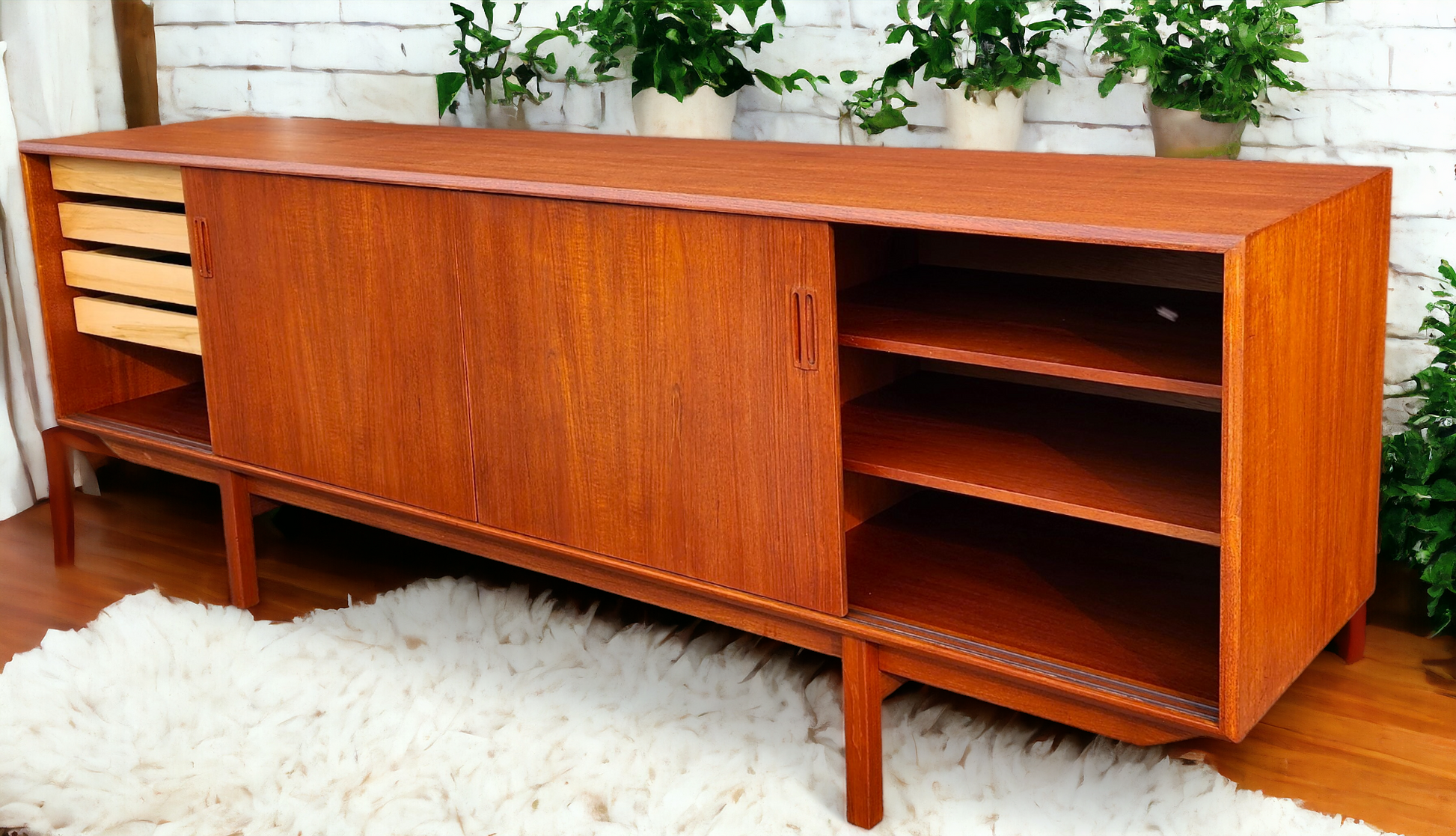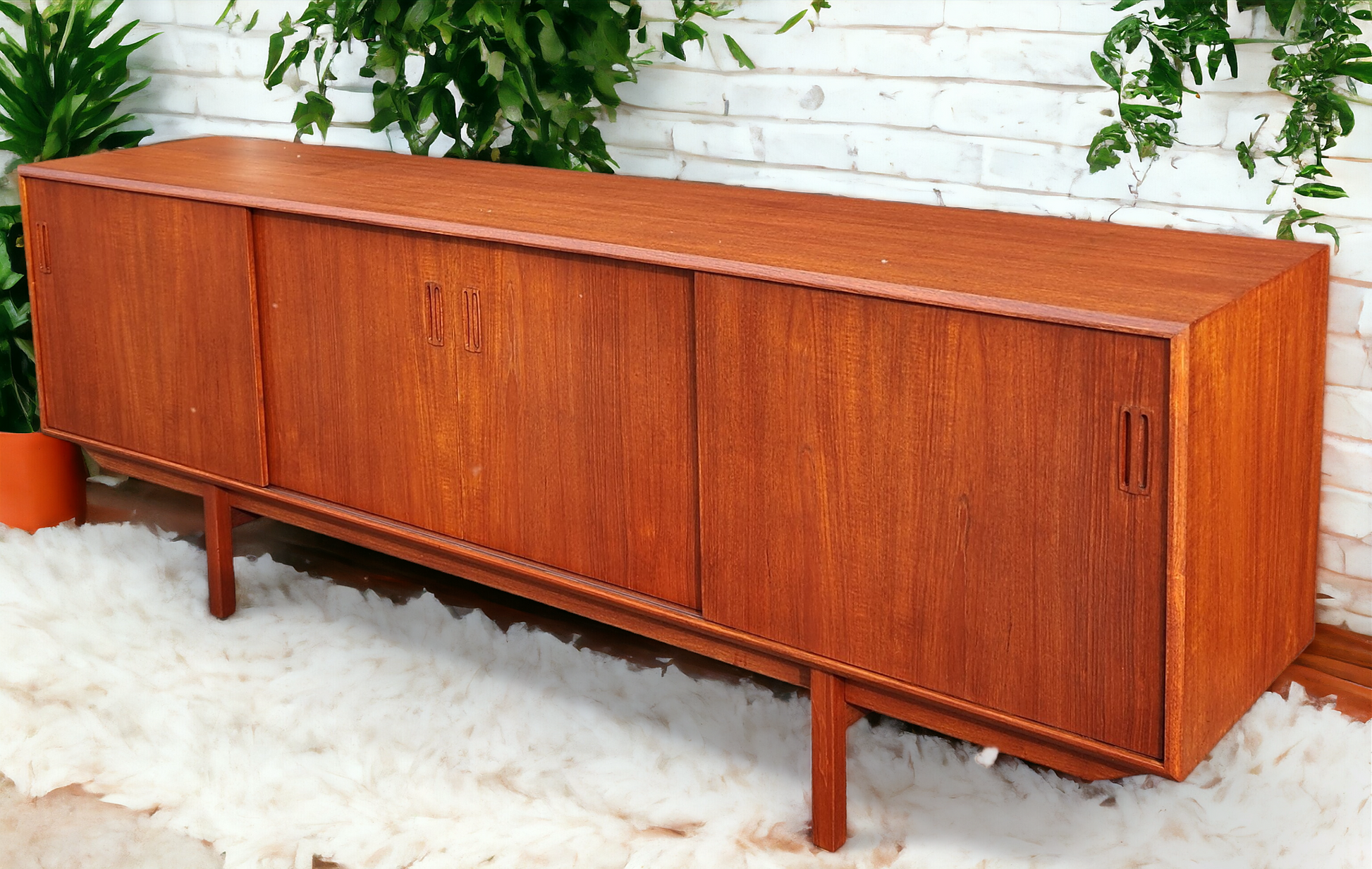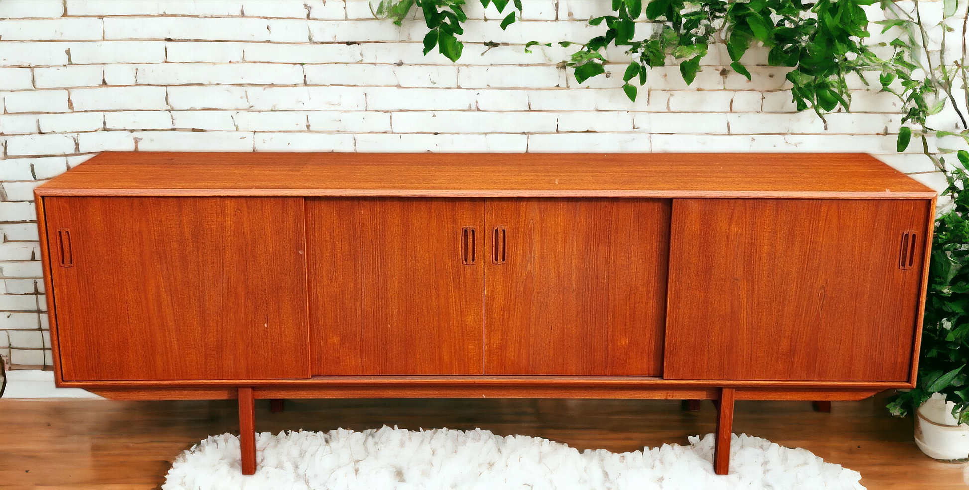 REFINISHED Mid Century Modern Teak Sideboard Credenza 7 ft