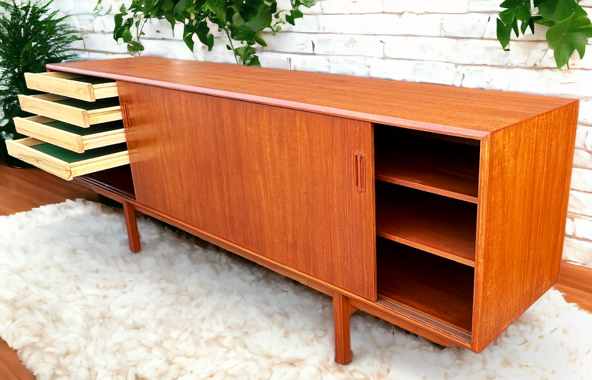 Quality vintage construction paired with fine design. Will be able to hold a large TV, lots of records, or heirloom dinnerware.