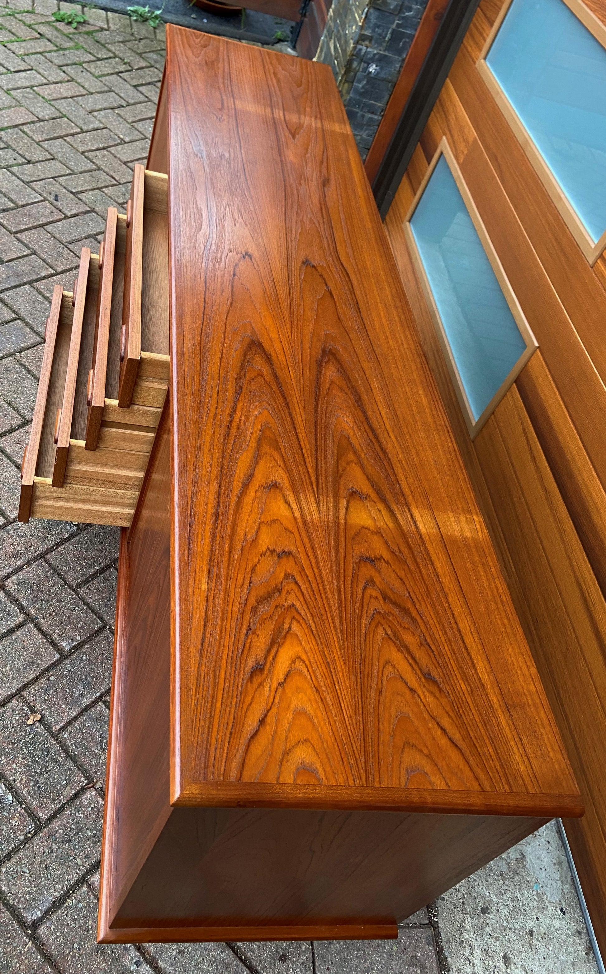 REFINISHED Mid Century Modern Teak Sideboard Credenza Narrow 6 ft
