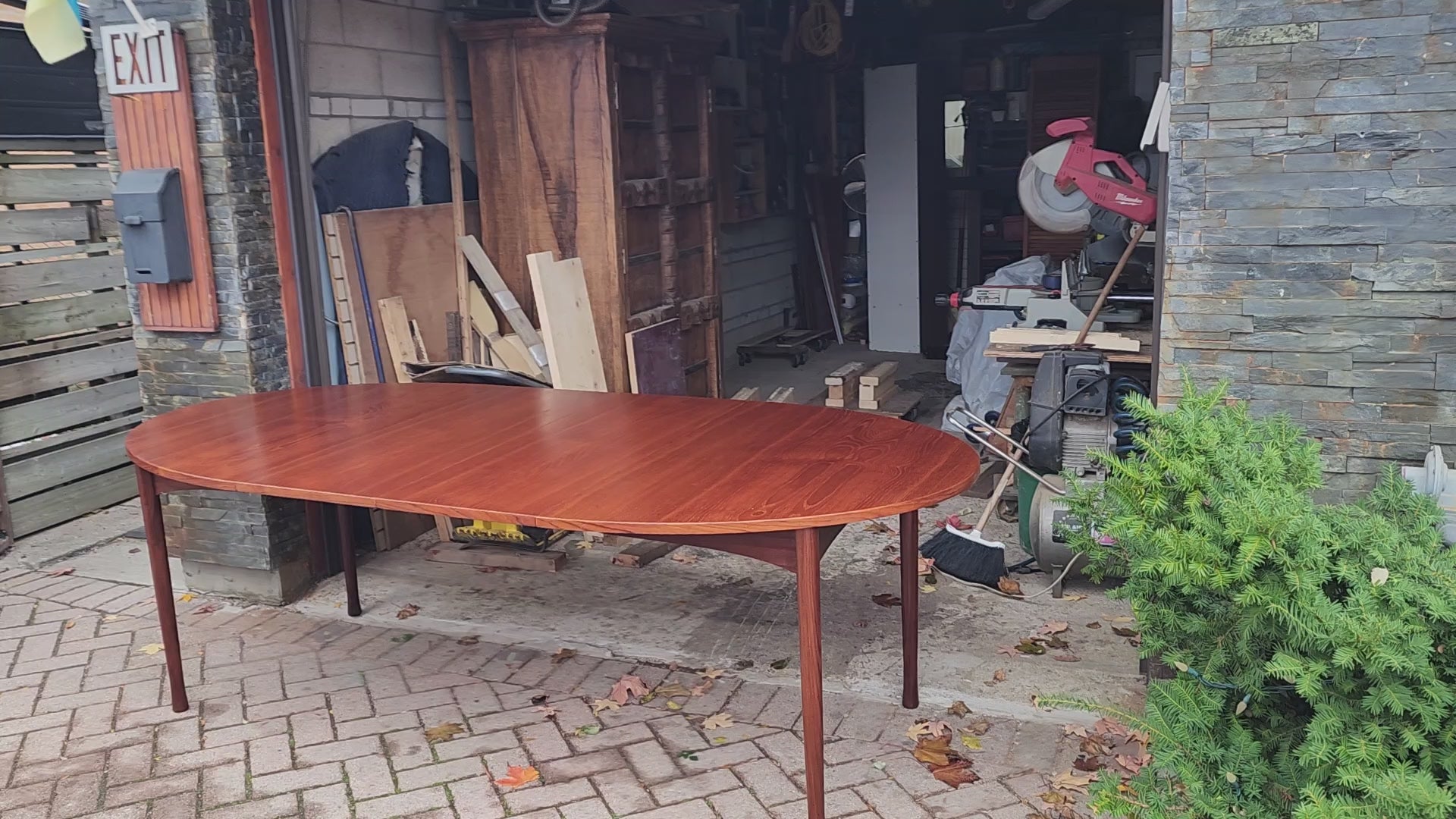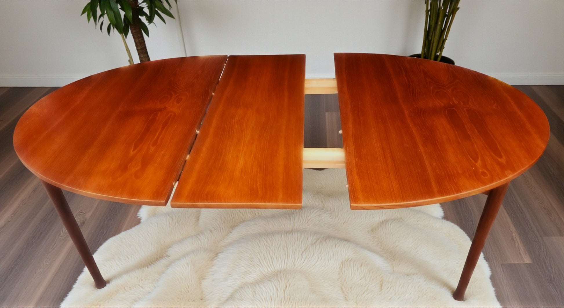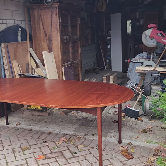 REFINISHED Mid Century Modern Teak Table Oval w 2 Leaves 60"-92"