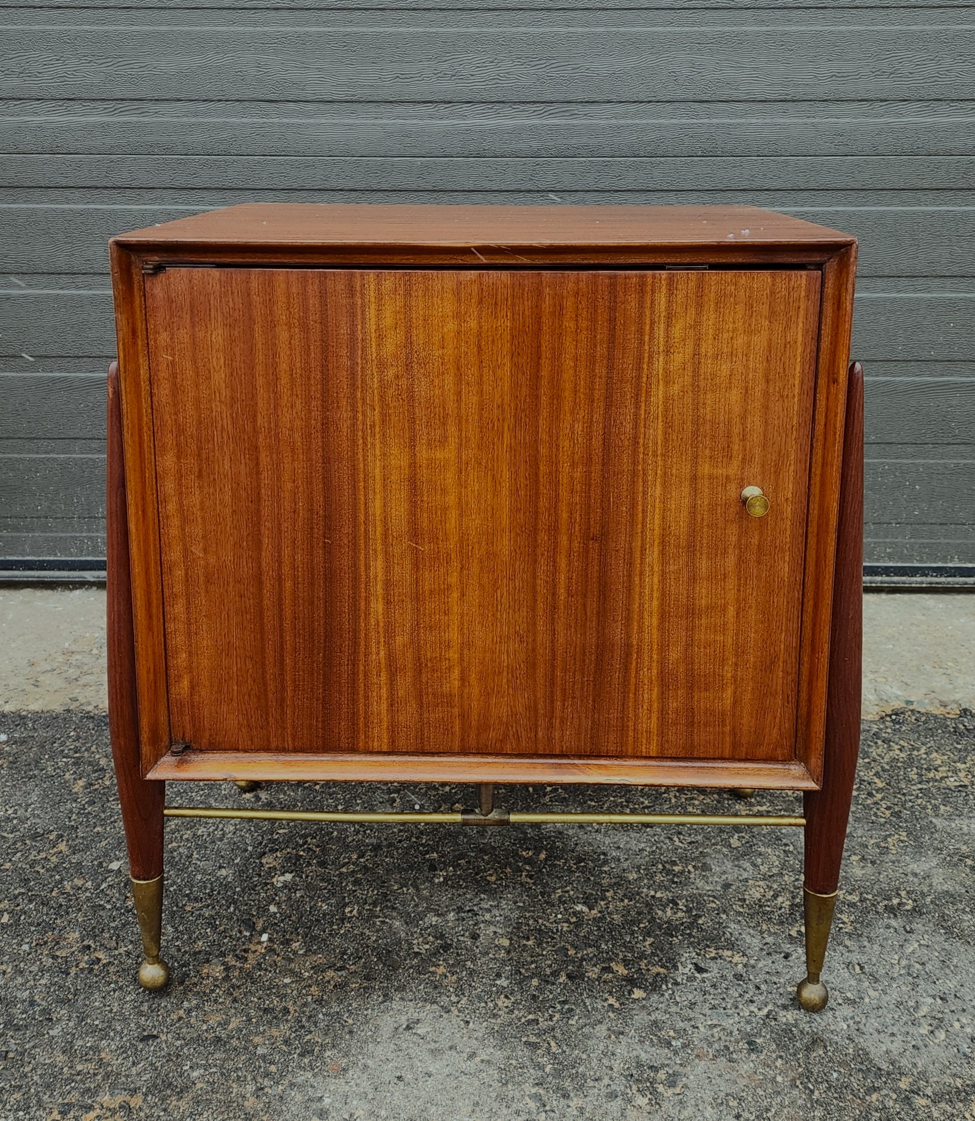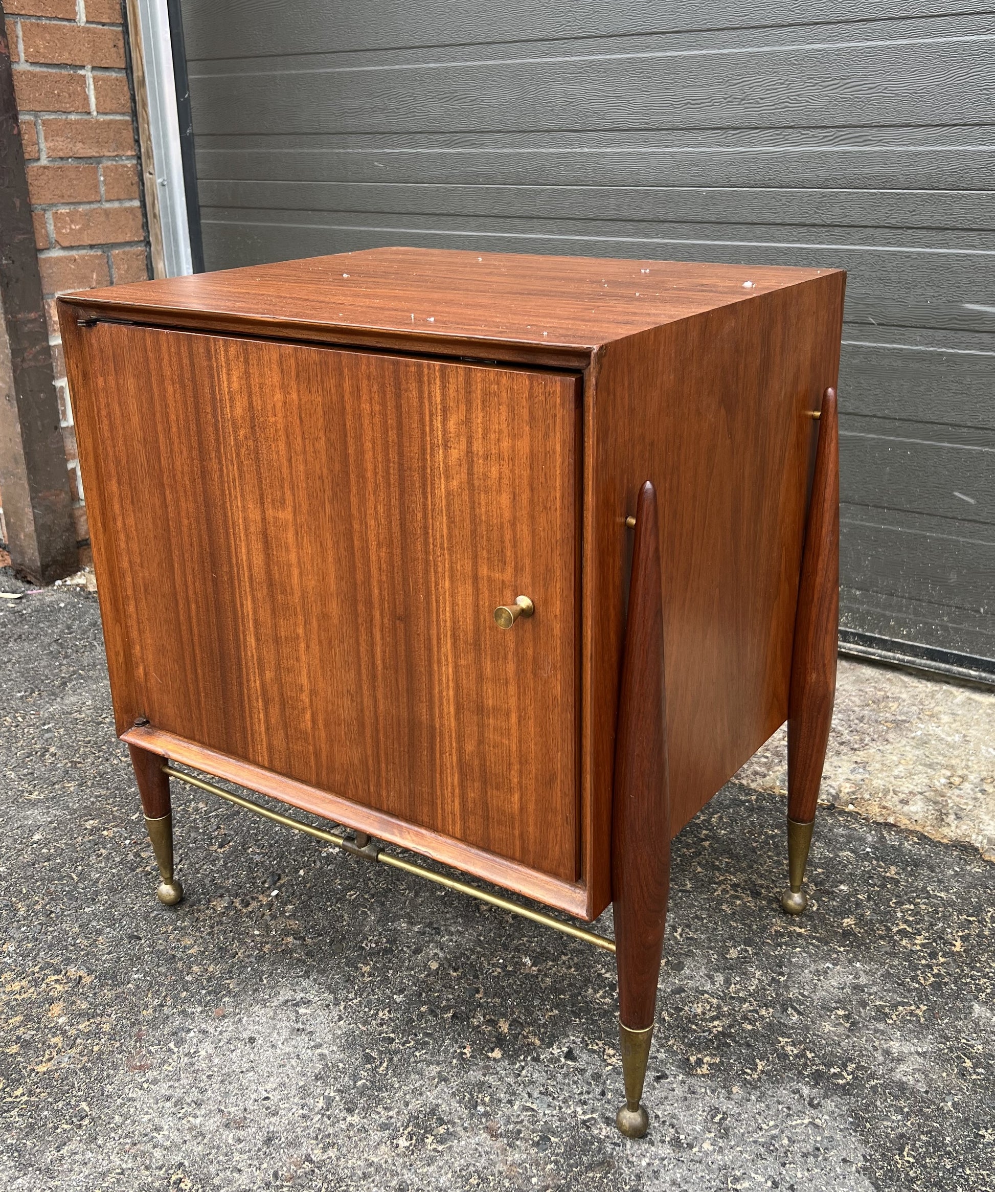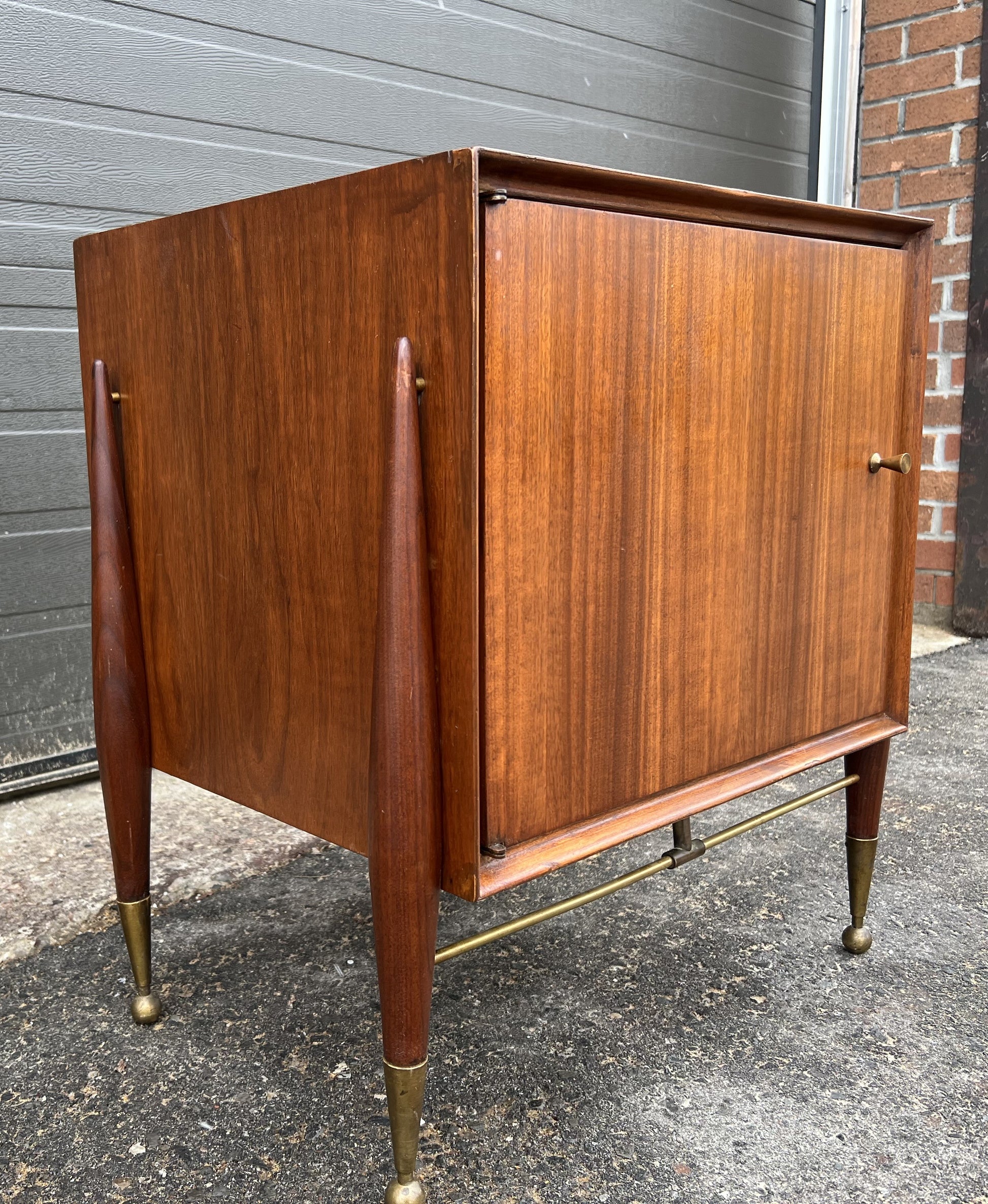 REFINISHED Mid Century Modern walnut accent cabinet w brass hardware, small 20β