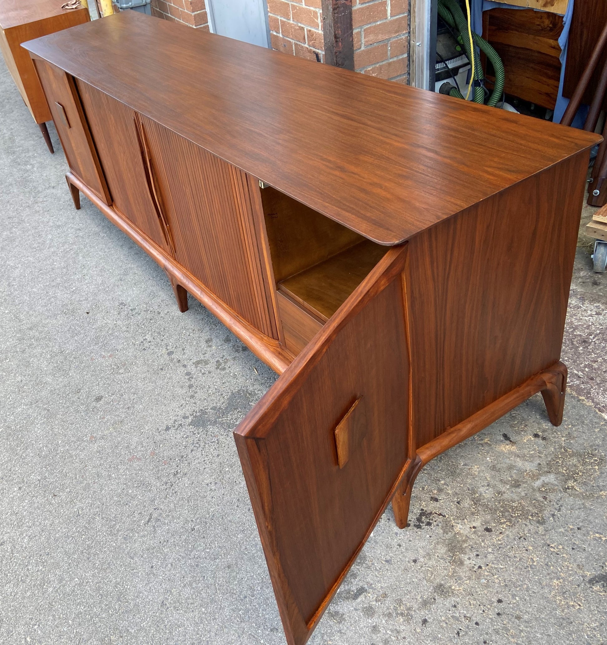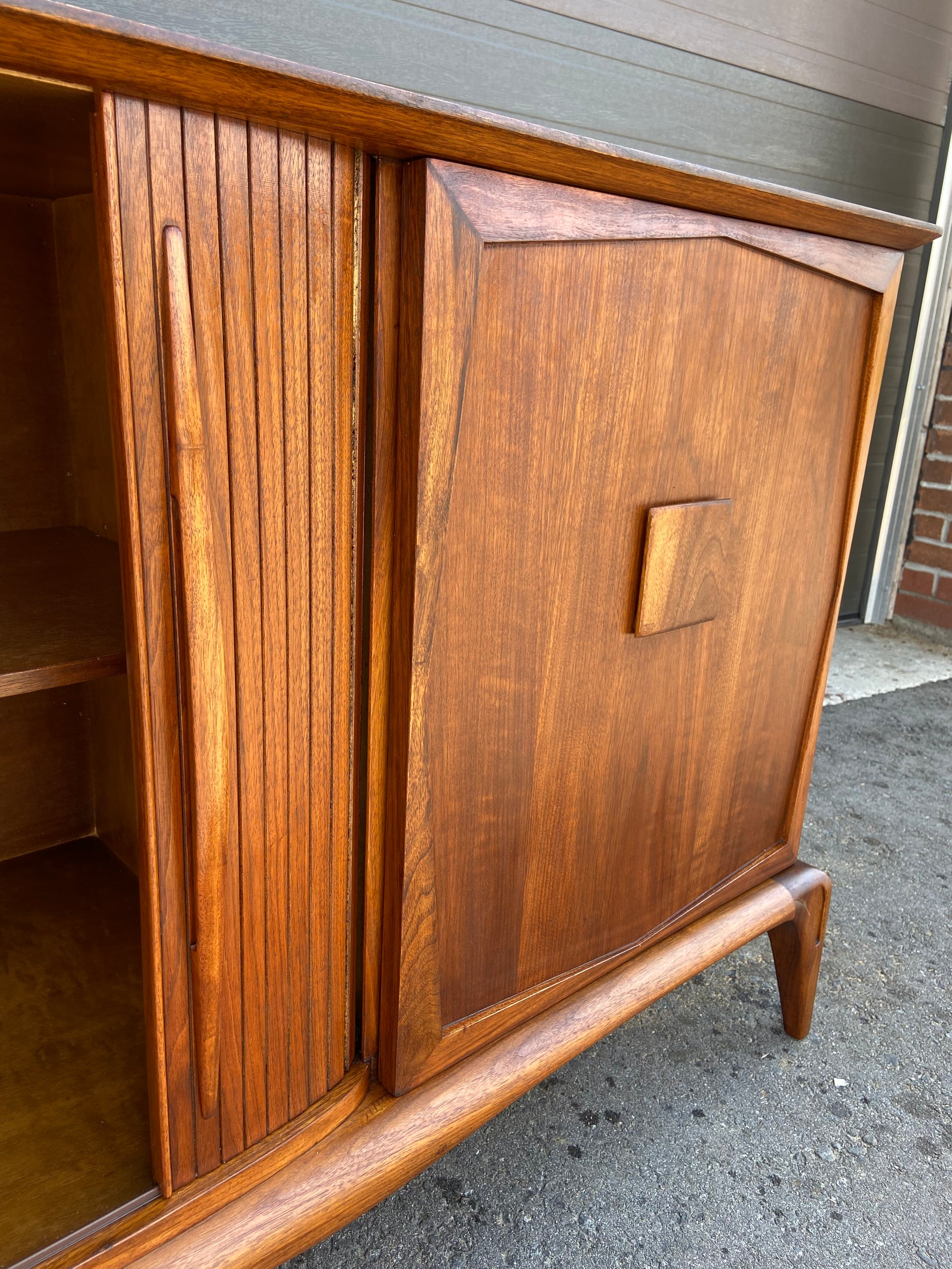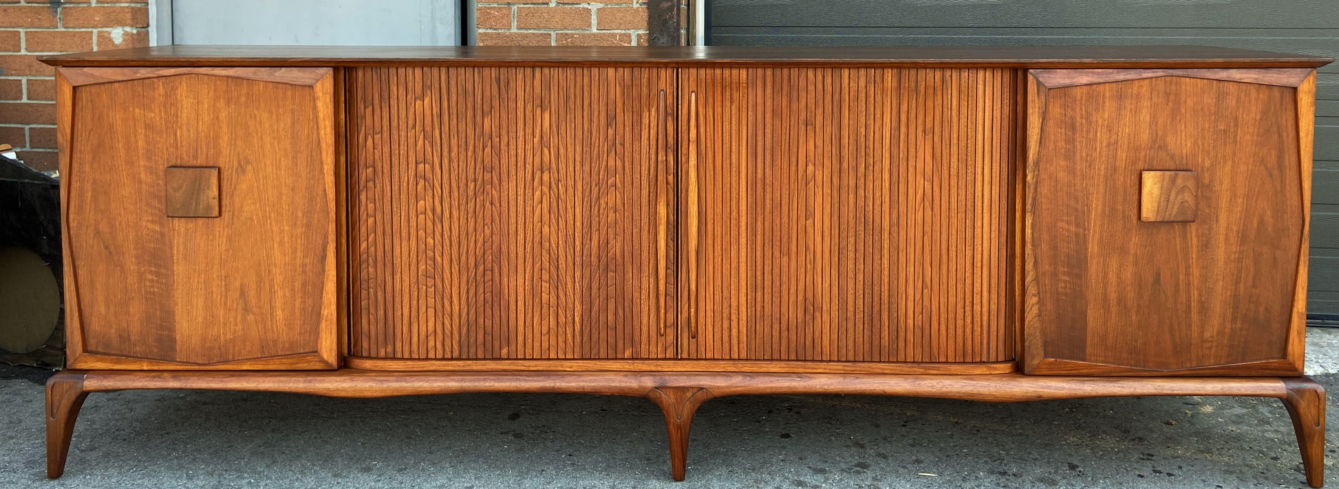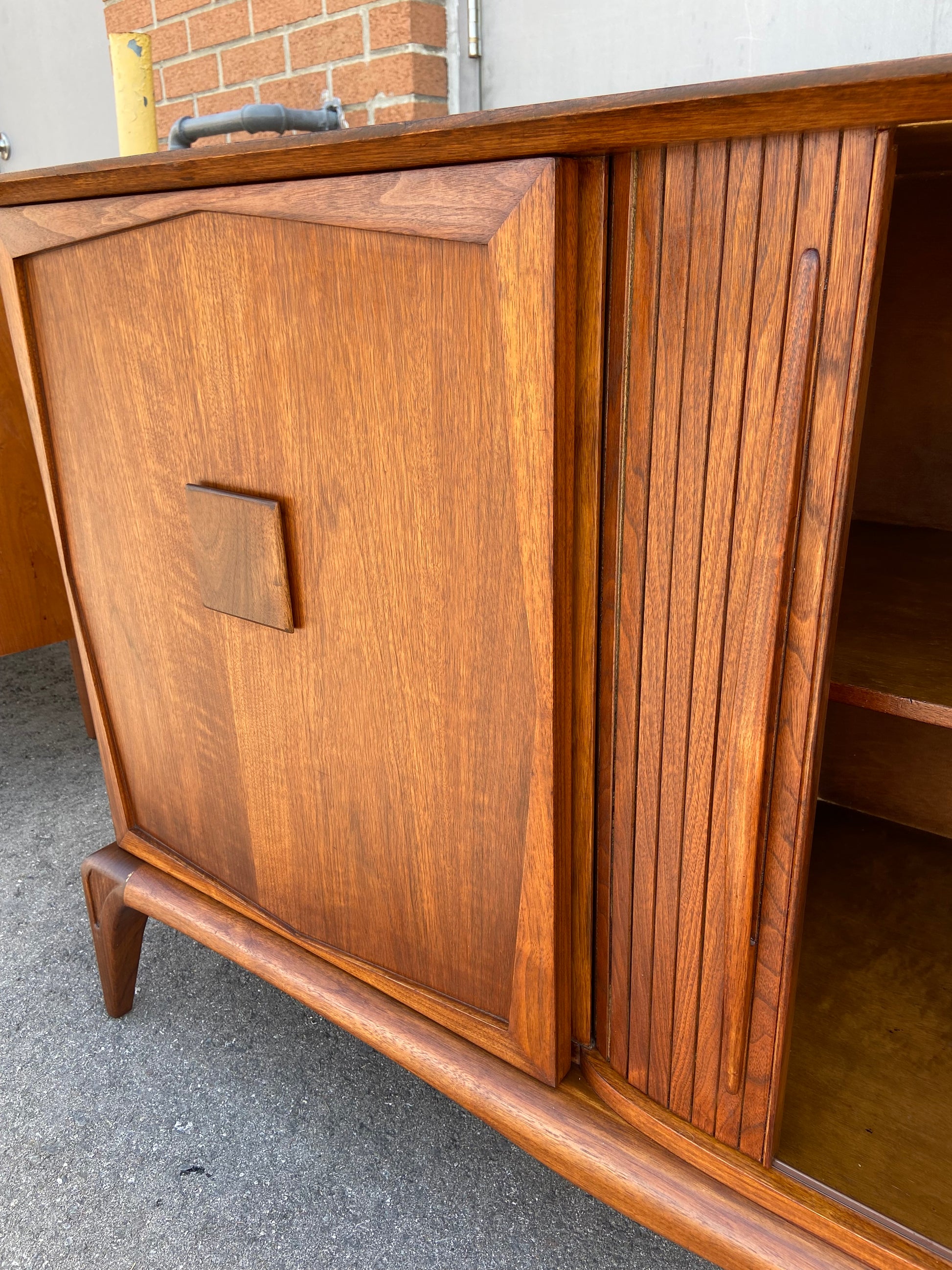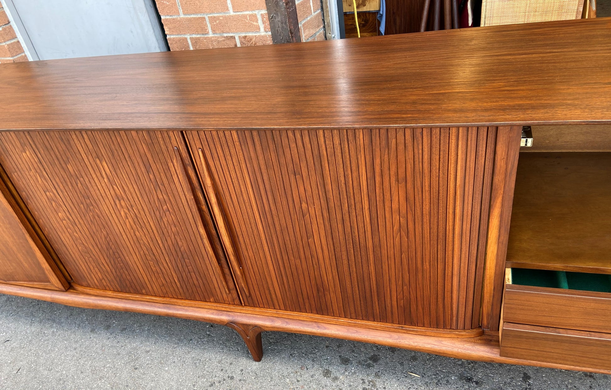 REFINISHED Mid Century Modern Walnut Credenza with Tambour doors, 8 ft