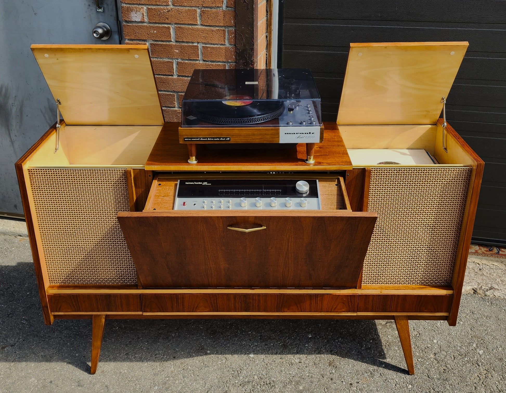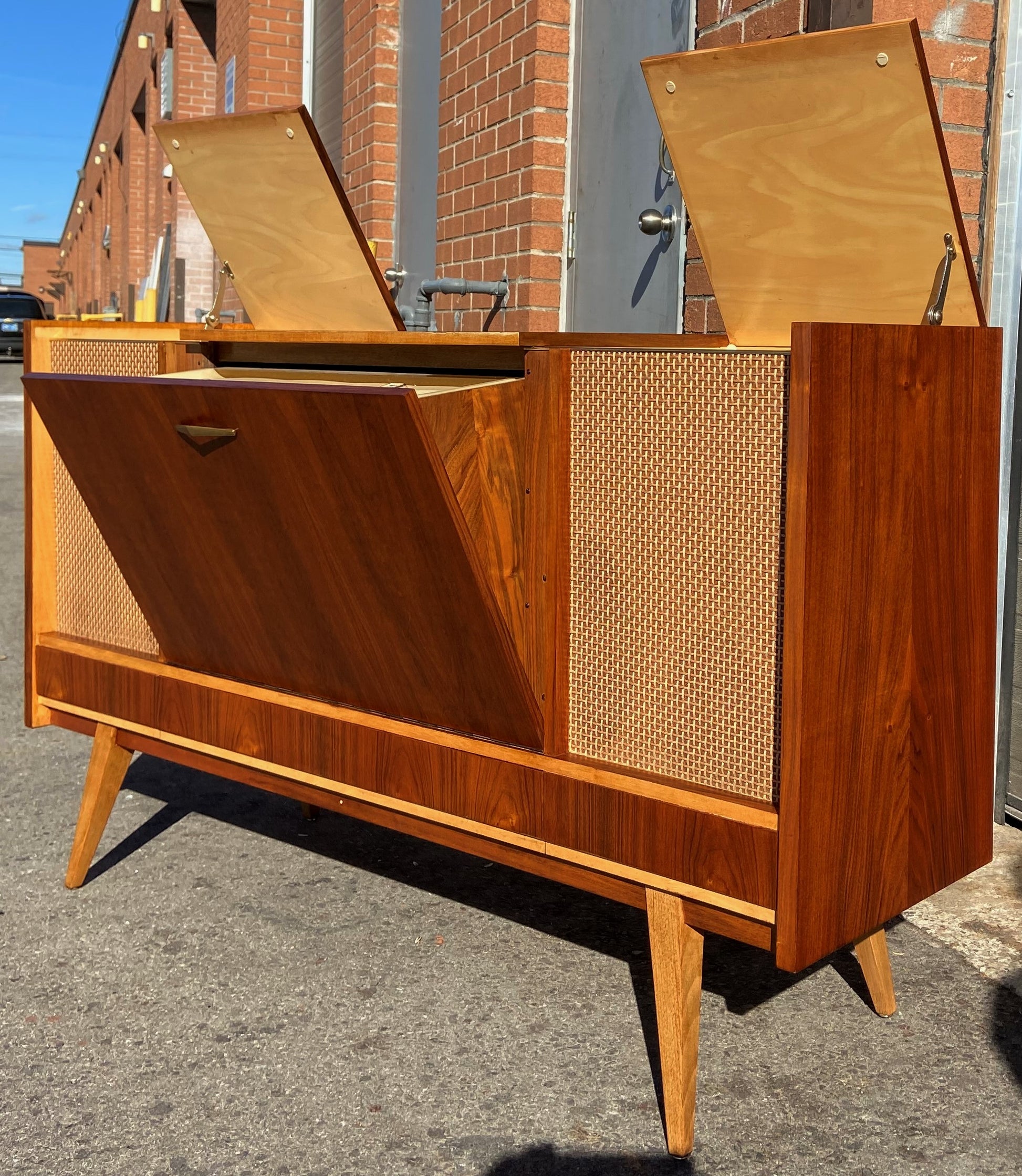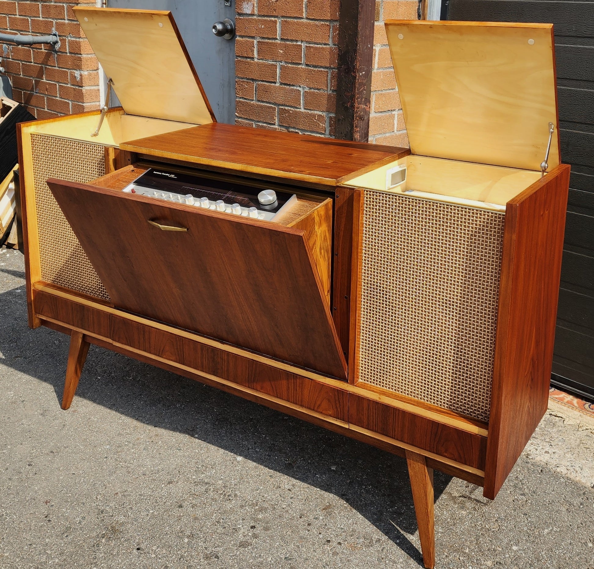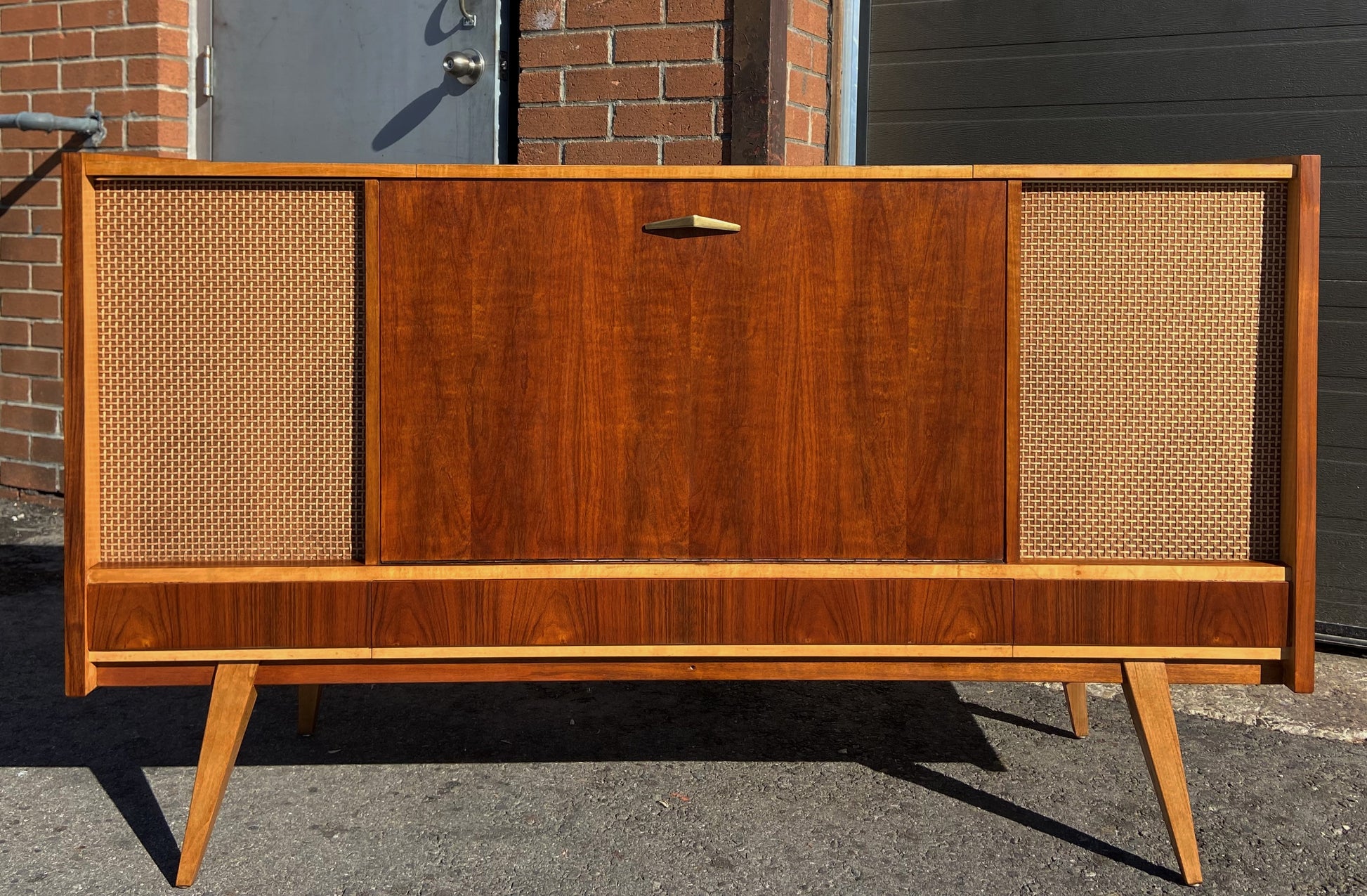 REFINISHED Mid Century Modern Walnut Radio Stereo Record Player Console 56"