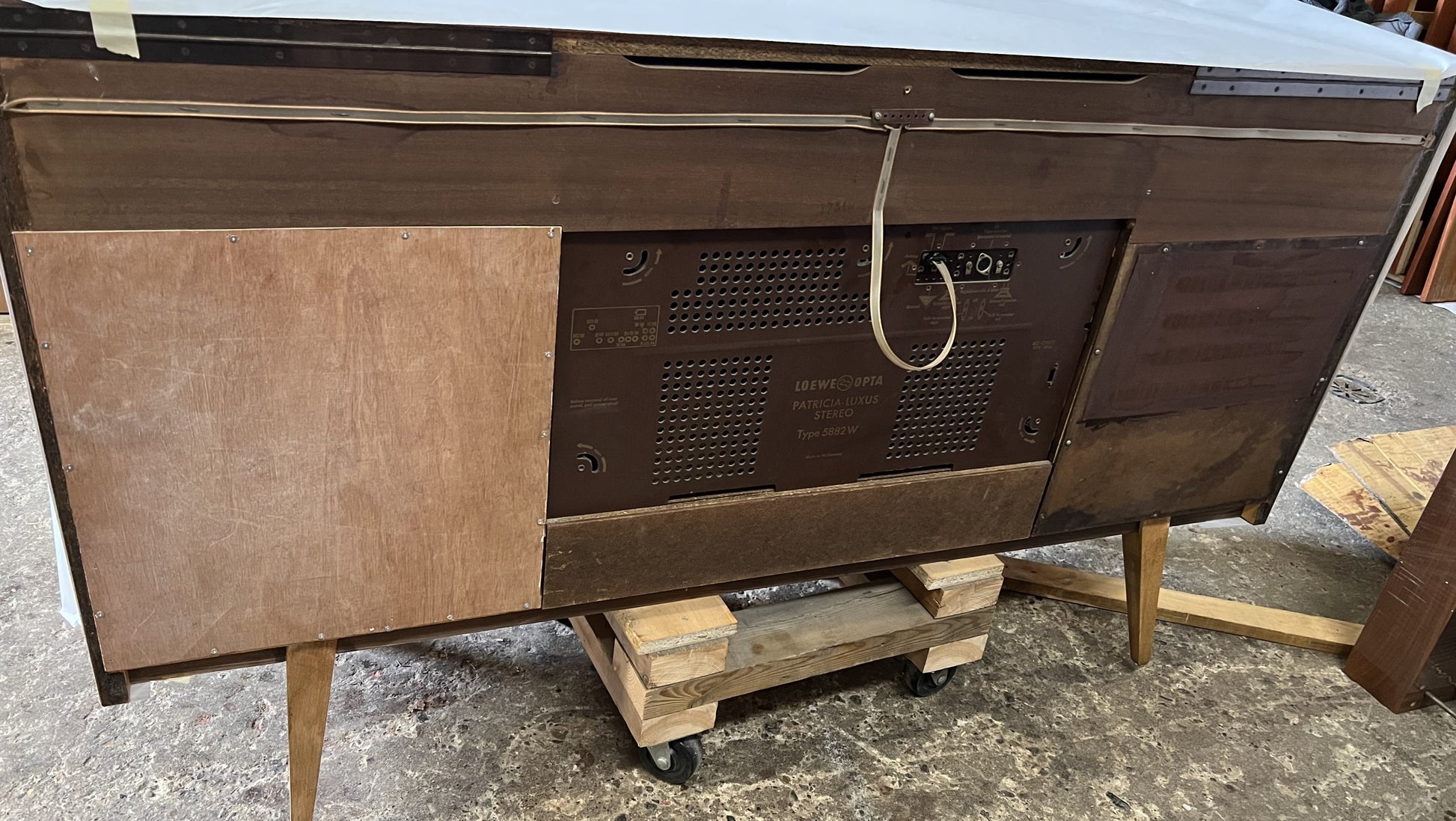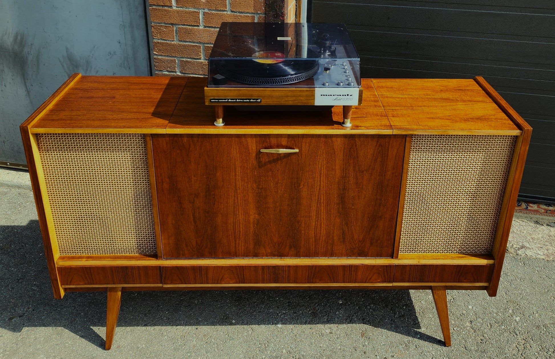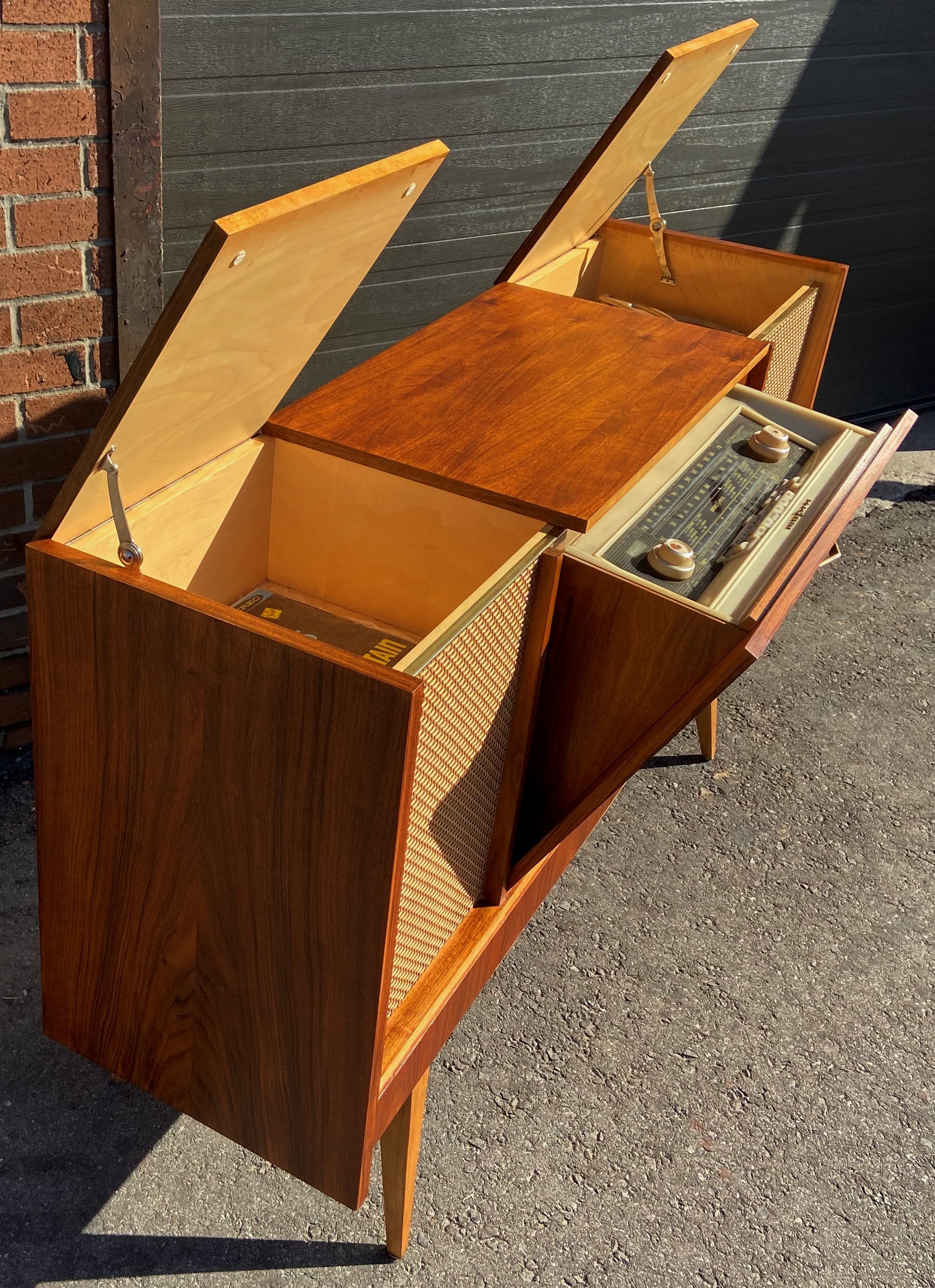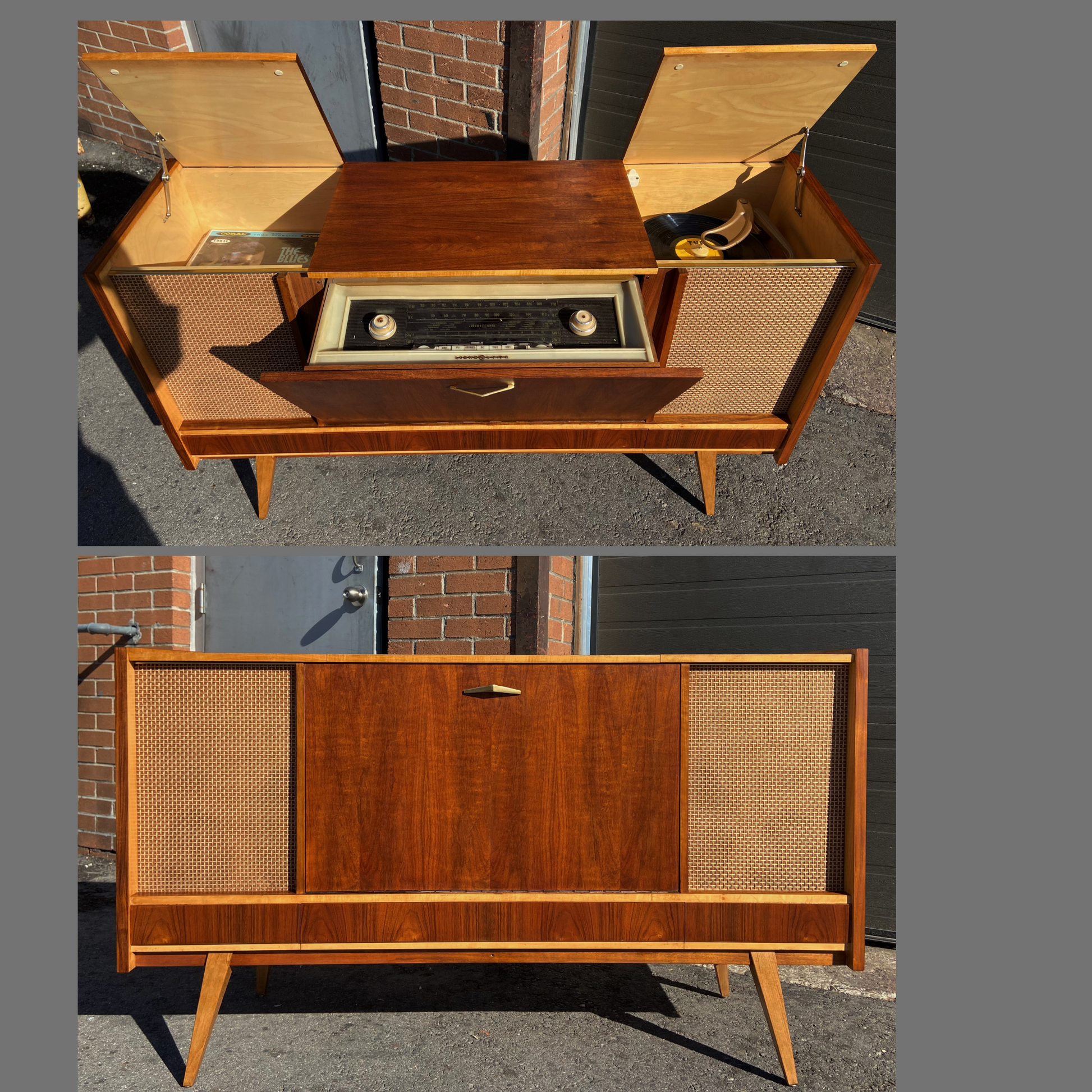 REFINISHED Mid Century Modern Walnut Radio Stereo Record Player Console 56"