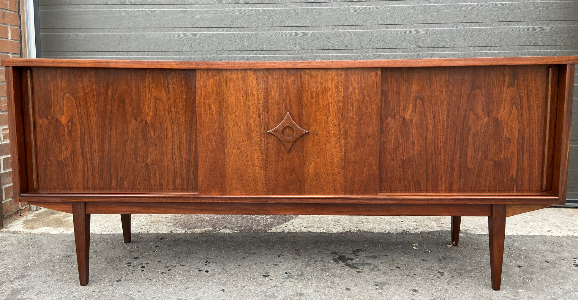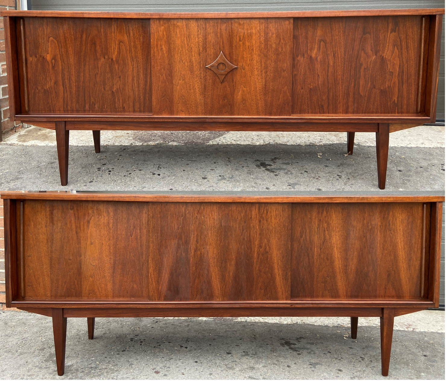 REFINISHED Mid Century Modern Walnut Sideboard Two-Sided/ Divider w 6 doors, 72"