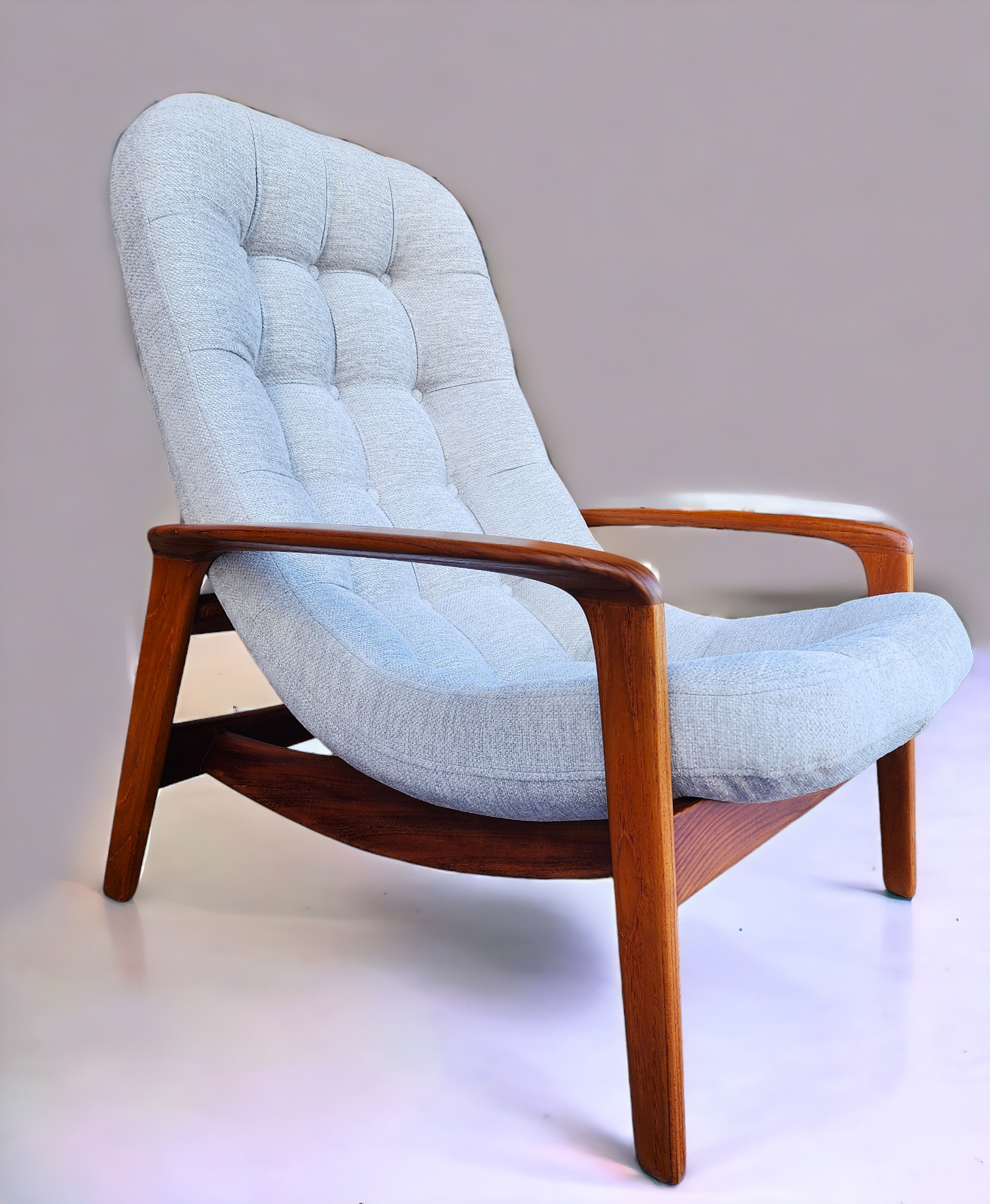 REFINISHED REUPHOLSTERED MCM Teak Scoop Lounge Chair by R. Huber