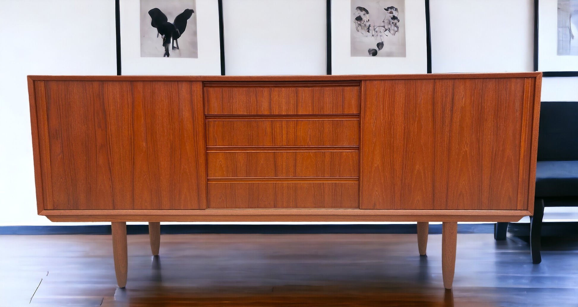 REFINISHED Swedish Mid Century Modern Teak Sideboard 68.5" Narrow