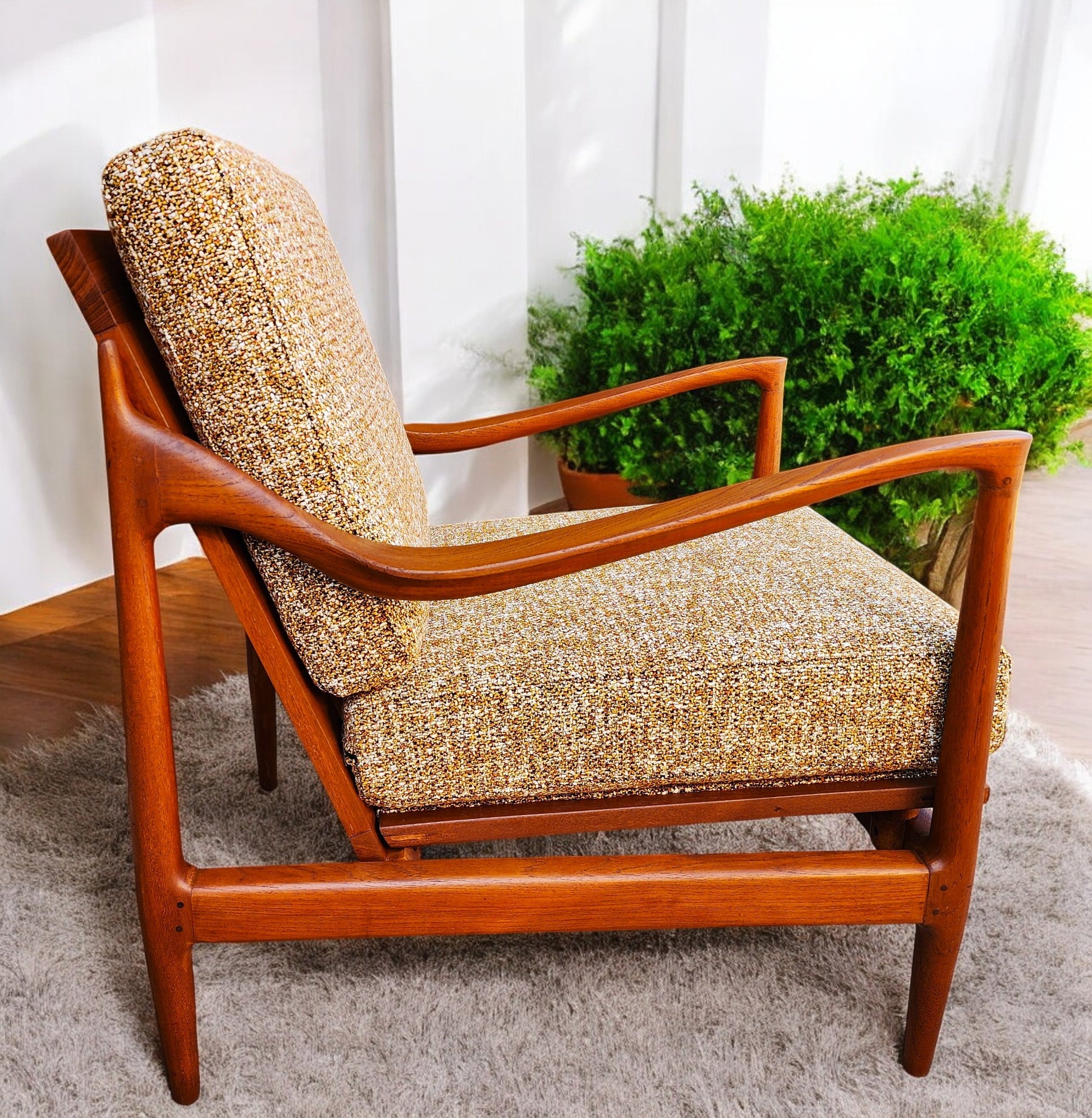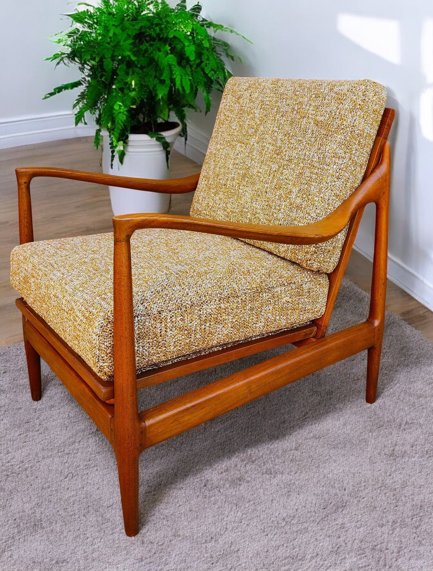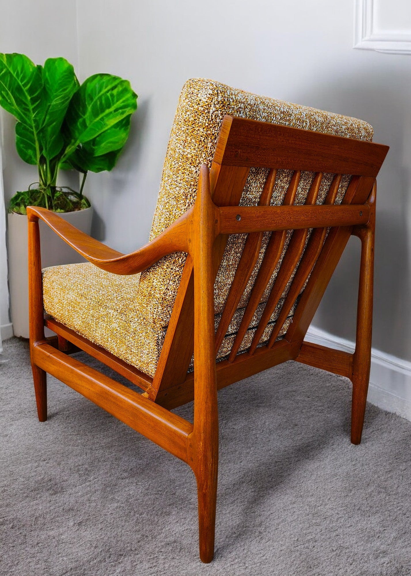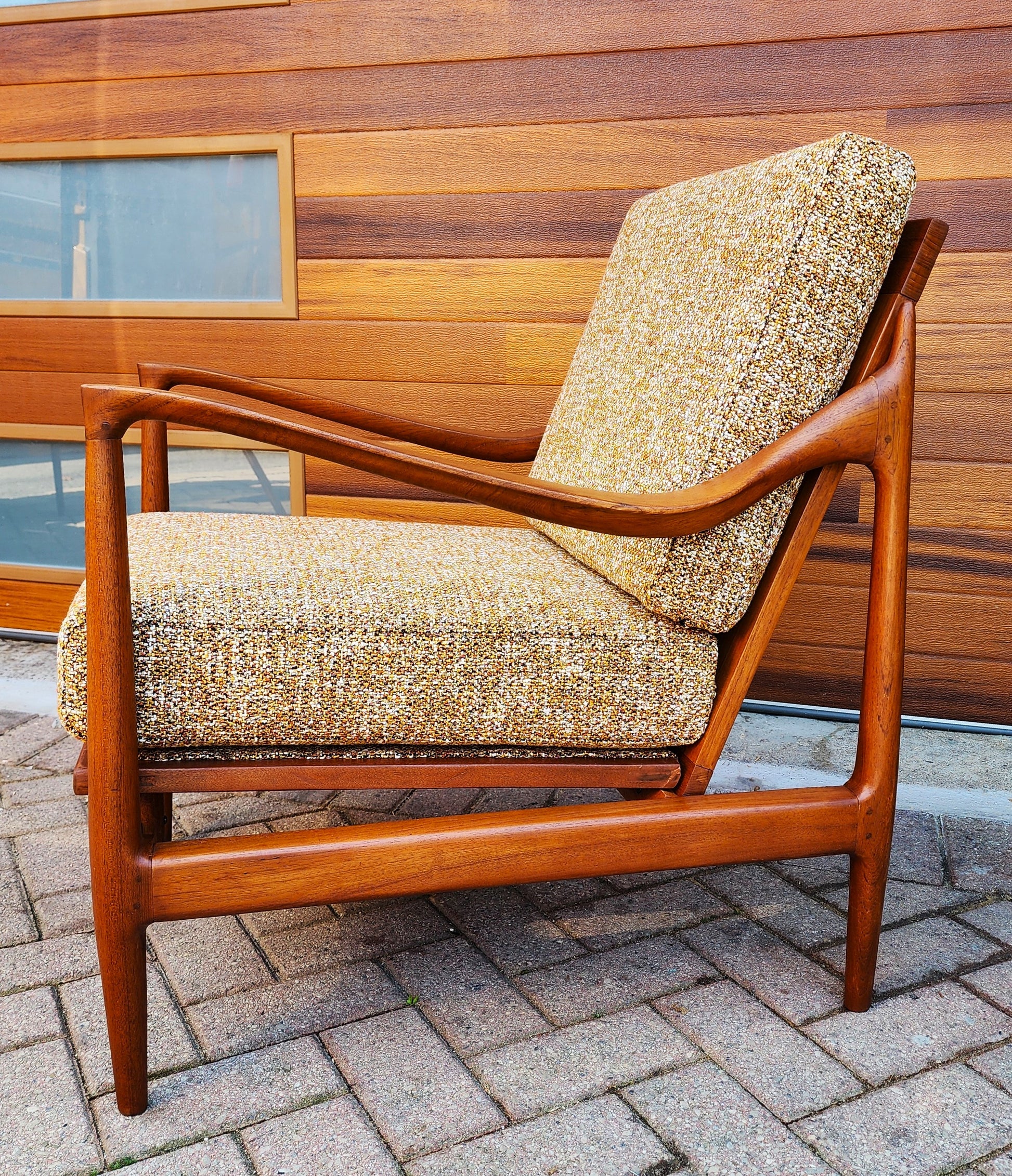 REFINISHED REUPHOLSTERED Danish MCM Teak Lounge Chair w Performance Fabric