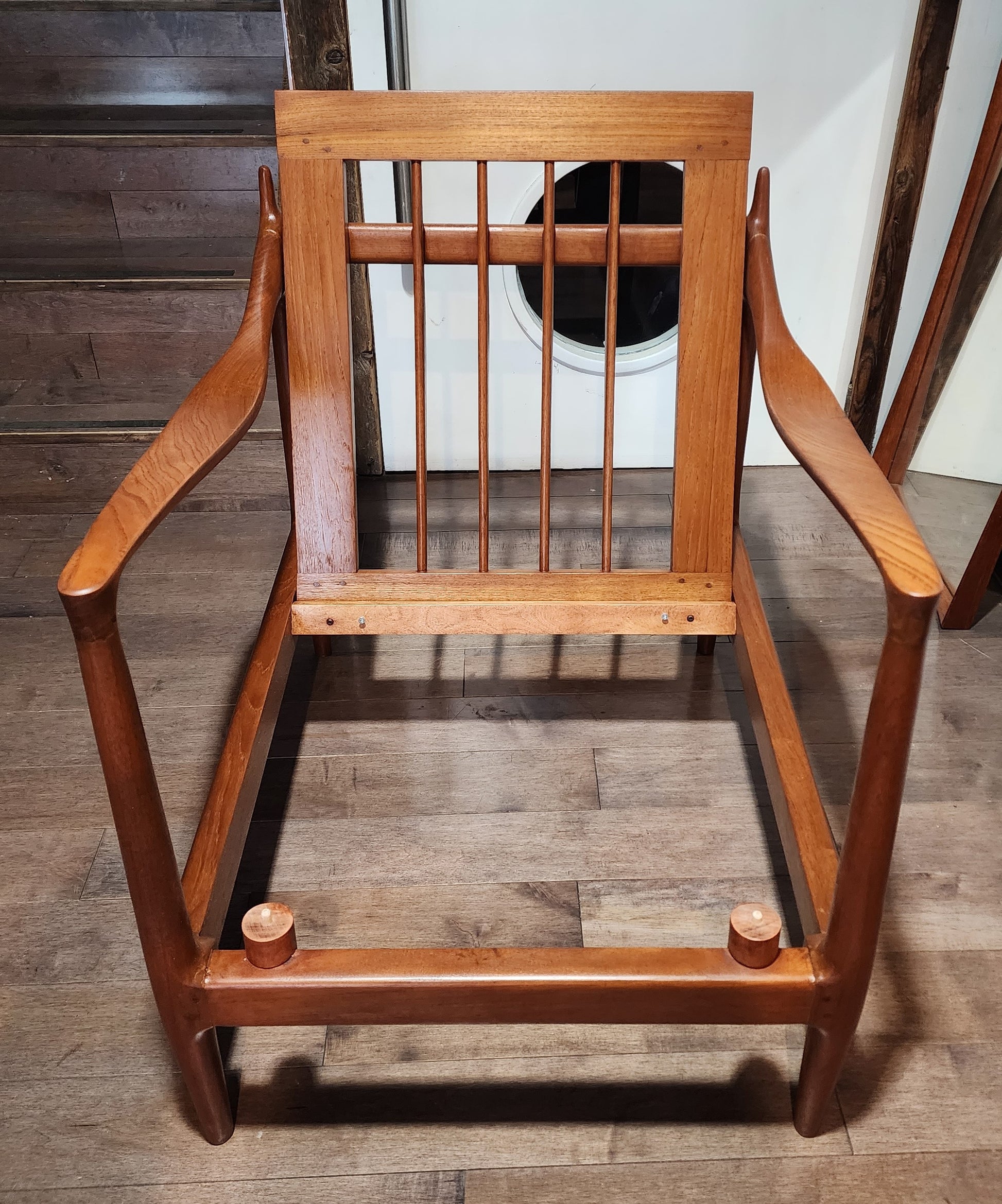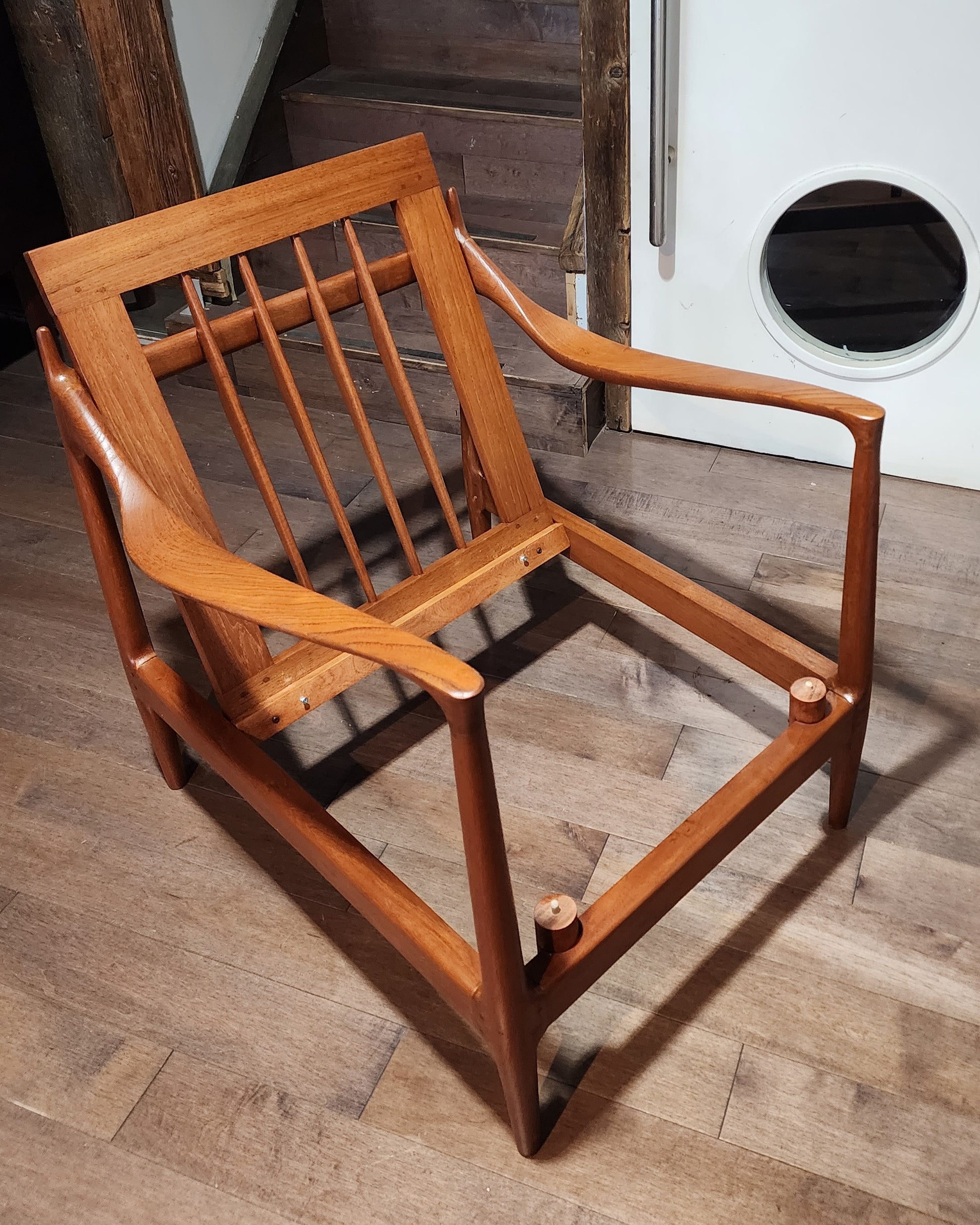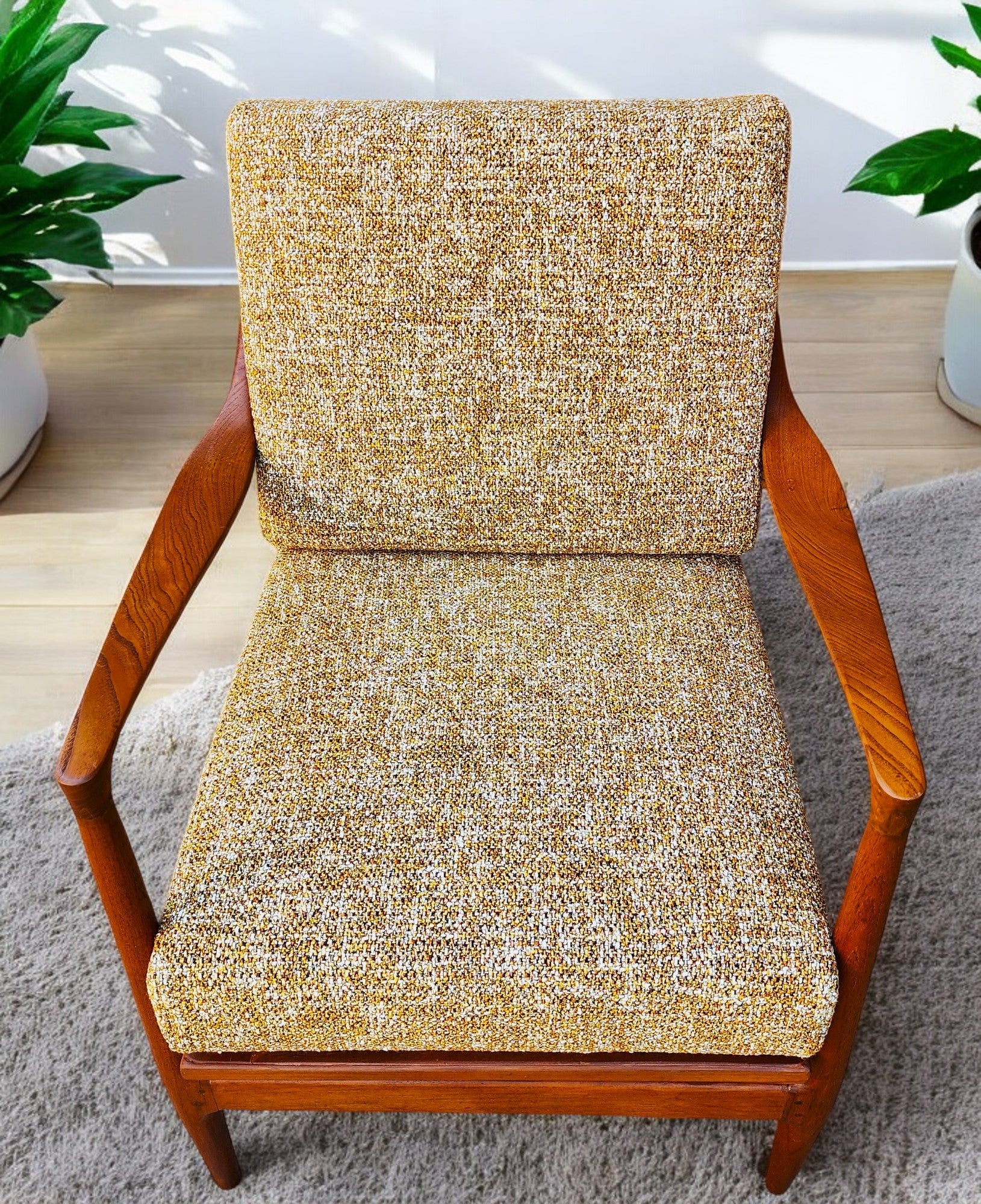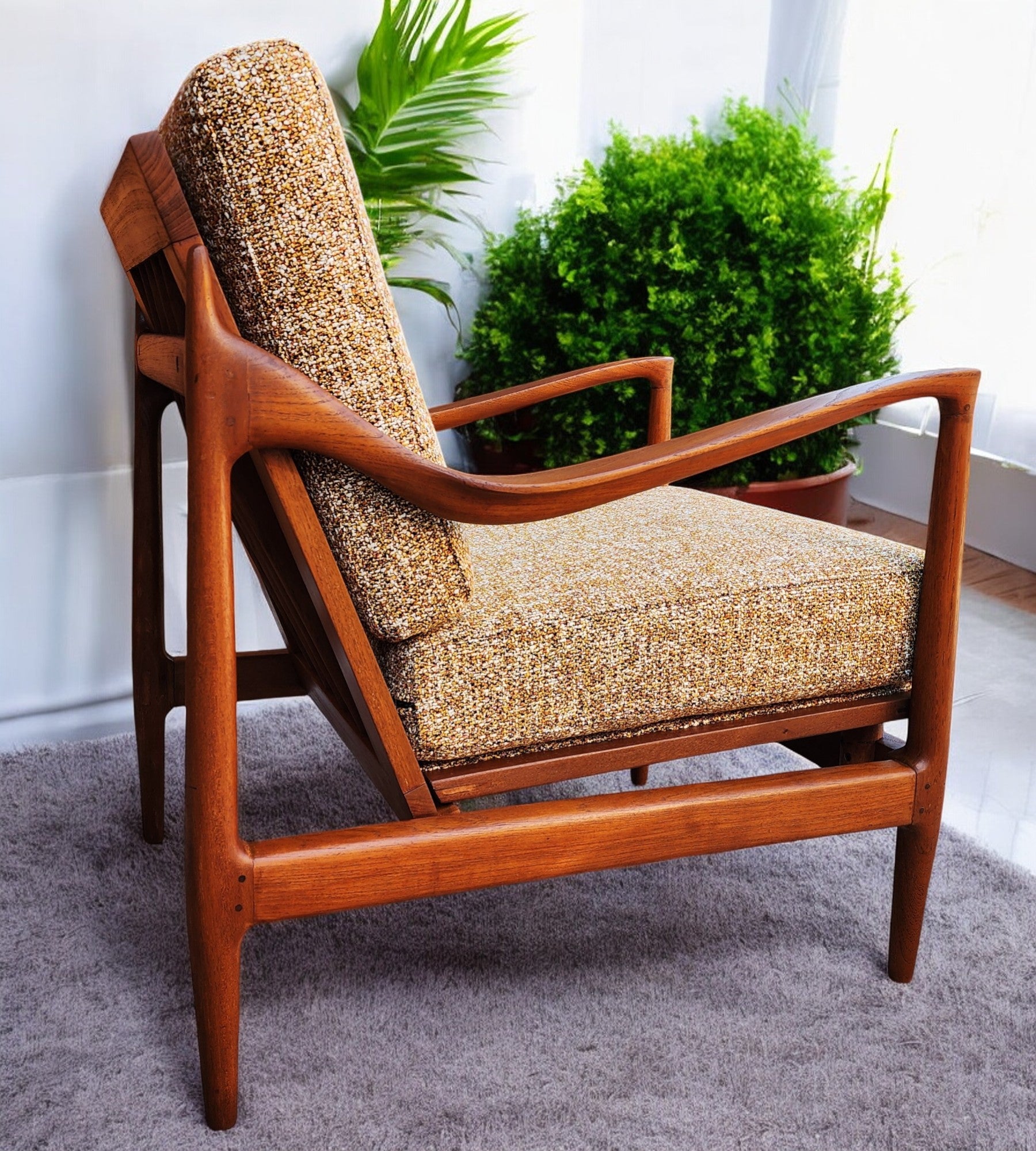 REFINISHED REUPHOLSTERED Danish MCM Teak Lounge Chair w Performance Fabric