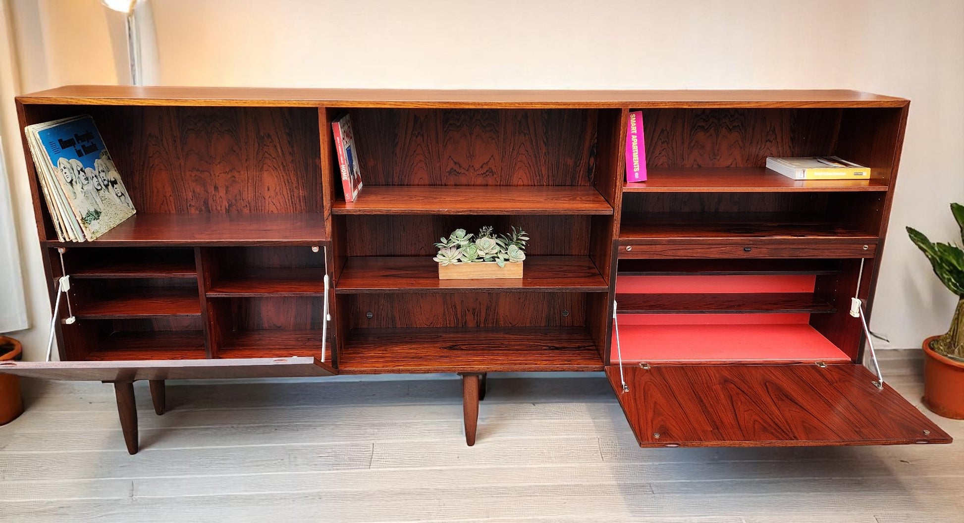 RESTORED Danish Mid Century Modern Rosewood Cabinet 94"