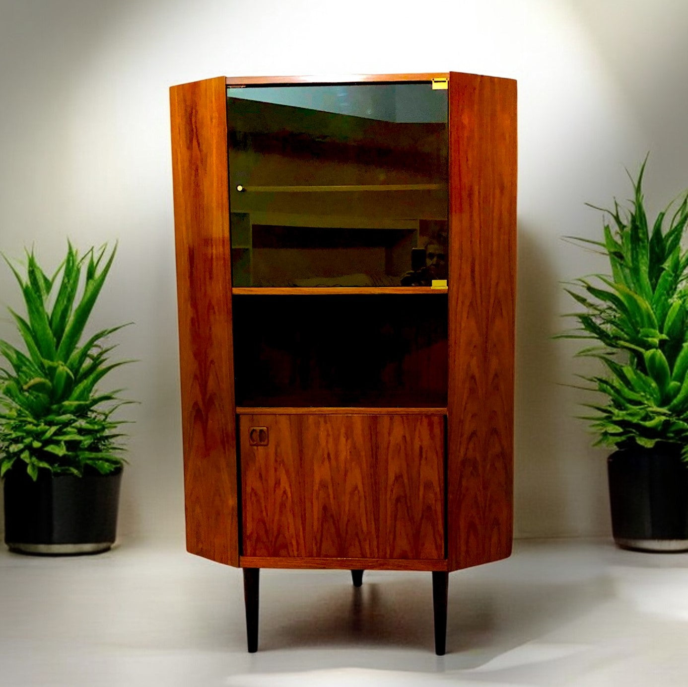 RESTORED Danish Mid Century Modern Rosewood Corner Cabinet