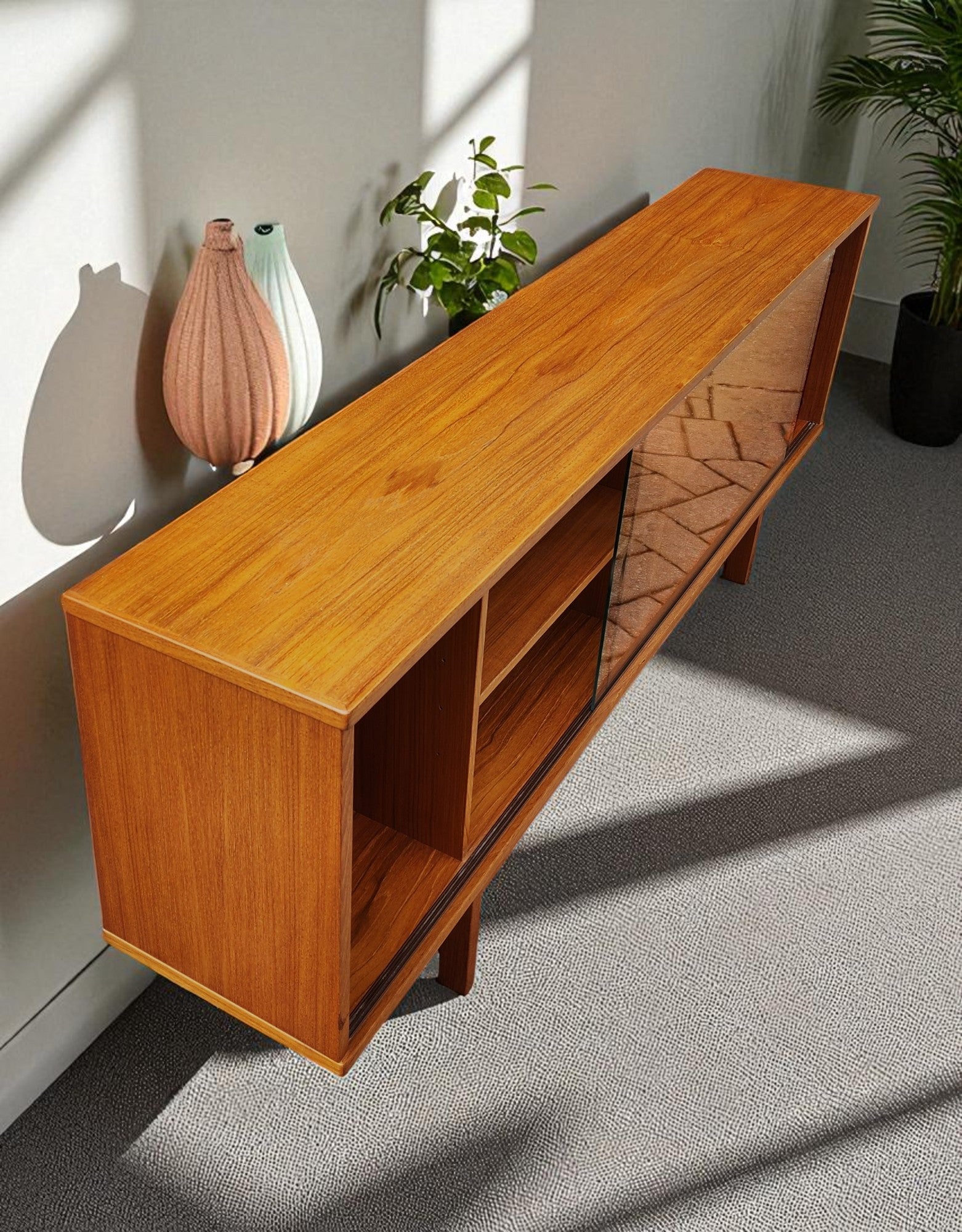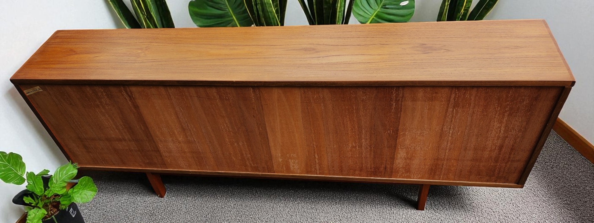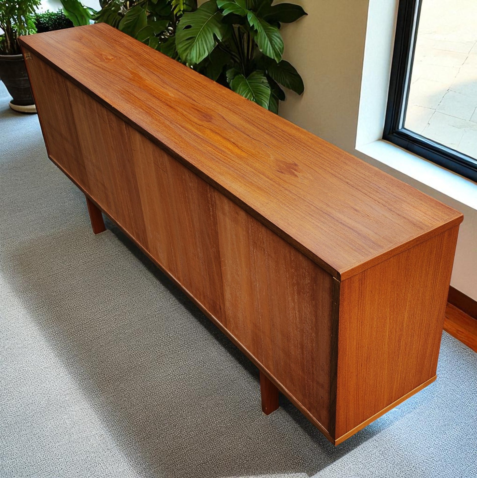 RESTORED Danish MCM Teak Console by Svend Aage Larsen 65"w finished back