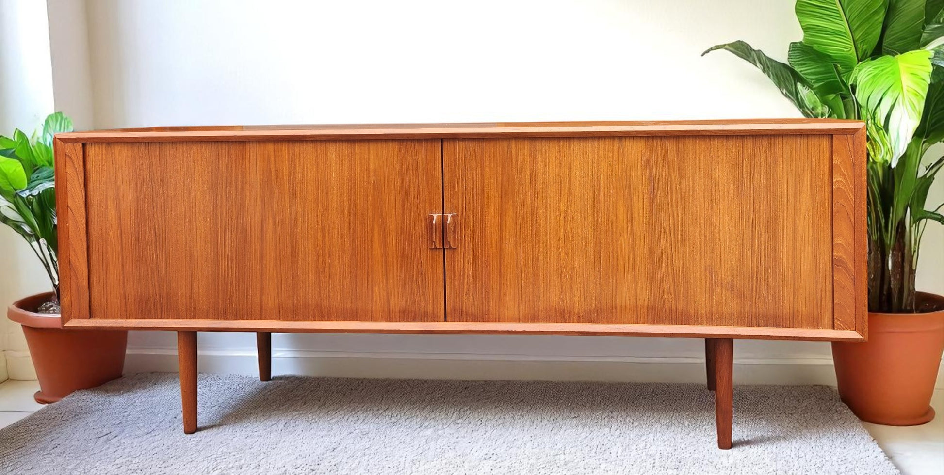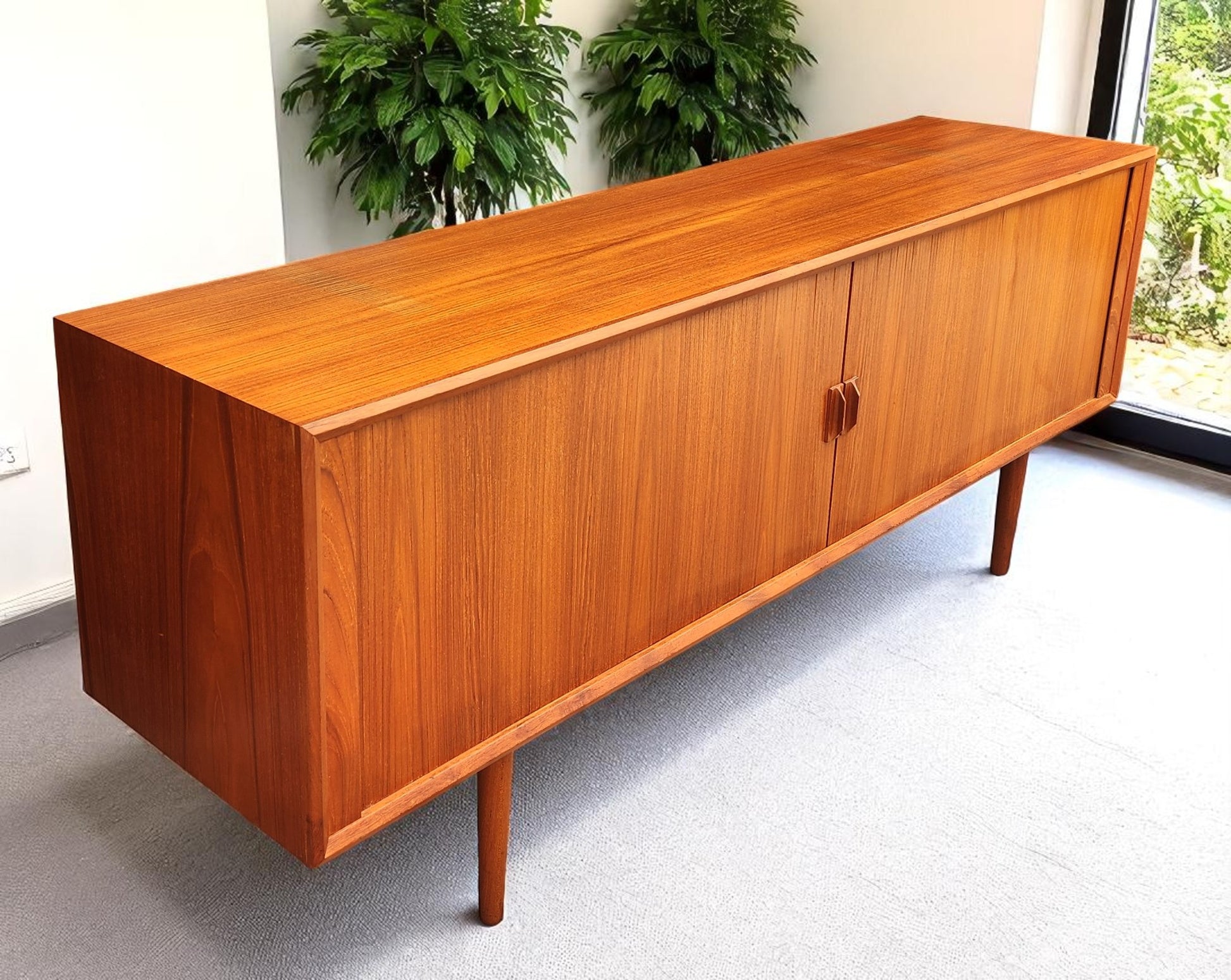 RESTORED Danish MCM Teak Tambour Credenza by Svend A. Larsen for Faarup 80"