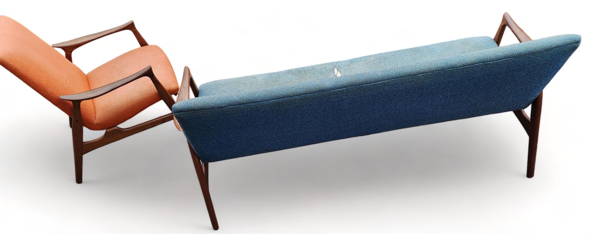 Will be REFINISHED REUPHOLSTERED Danish MCM Teak Sofa & Lounge Chair by Arne Hovmand-Olsen